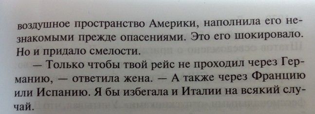 7 апреля 2020 Девочки, а помните, в прошлые годы у нас была мини-игра "Угадай, что я читаю"? Захотелось разместить фото странички, точнее - маленький кусочек диалога. Даже не для того, чтобы кто-то угадал (хотя книга новая, может ее кто-то недавно читал), сколько из-за такого узнаваемого момента: что сейчас куда-либо лучше не летать. Но автор очень в тему перечисляет именно те страны, куда сейчас лететь особенно не надо! wHiTe raBBit, anna5659, tamara.34 и 17 других сказали спасибо Поделиться сообщением Ссылка на сообщение