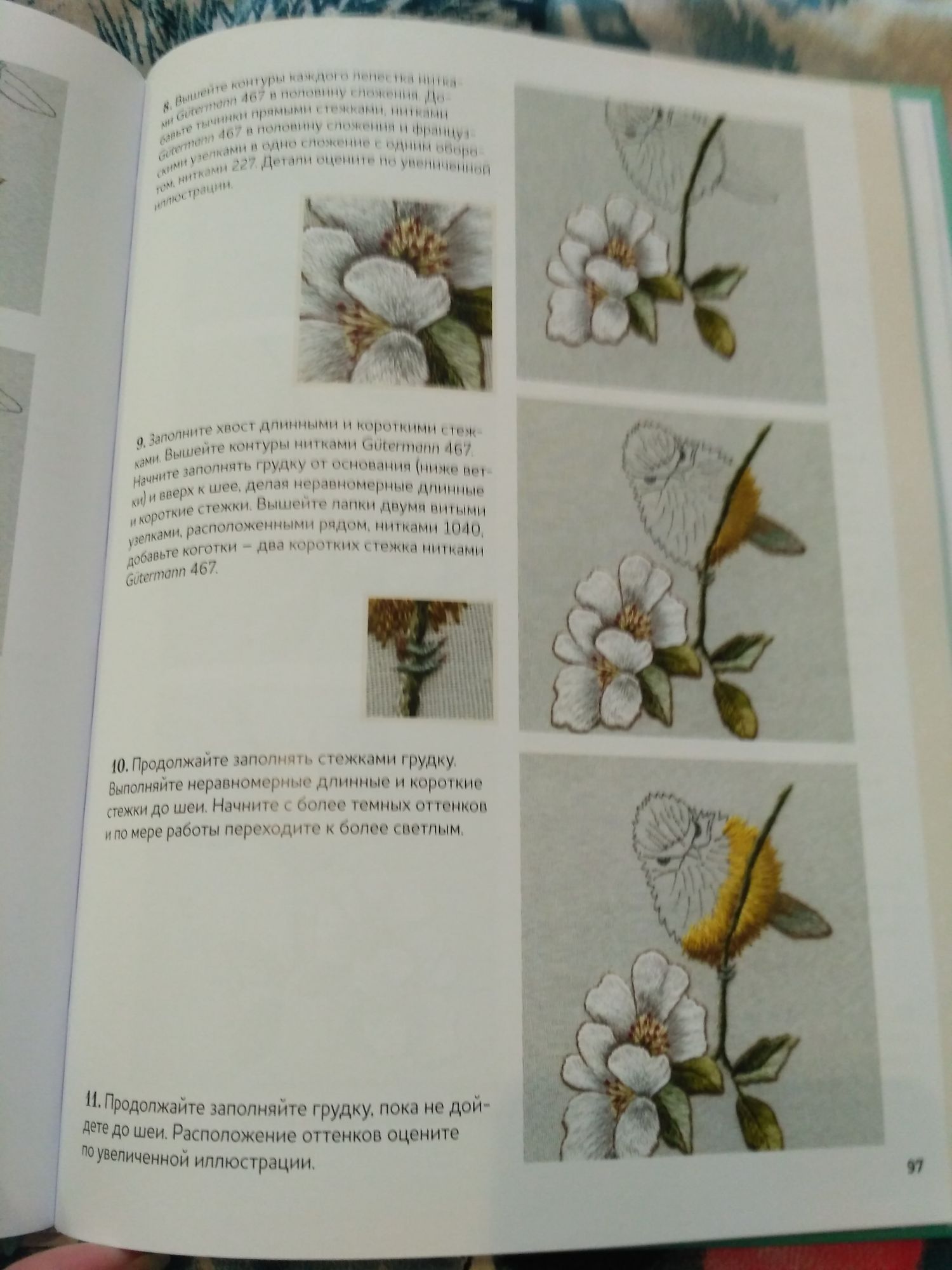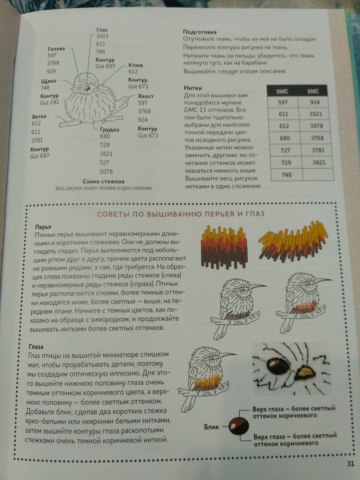 11 июня 2020 Тоже расскажу про книгу Триш Бурр. Вышивка гладью Изысканные миниатюры. Совершенно великолепная книга! Купила в надежде научиться вышивать гладью, но до сих пор ничего не попробовала. В книге большой раздел по материалам и технике вышивки. Милые маленькие дизайны - птицы, цветы, портреты. Последний раздел мне нравится меньше всего, т.к. лица людей гладью выглядят весьма странно. А вот птички и цветочки очень даже милые. В книке даны подробные пошаговые инструкции. Жаль нет отдельных листов со схемами для перевода на ткань. Немного картинок Надежда Минск, Женяшшша, tamara.34 и 14 других сказали спасибо Поделиться сообщением Ссылка на сообщение