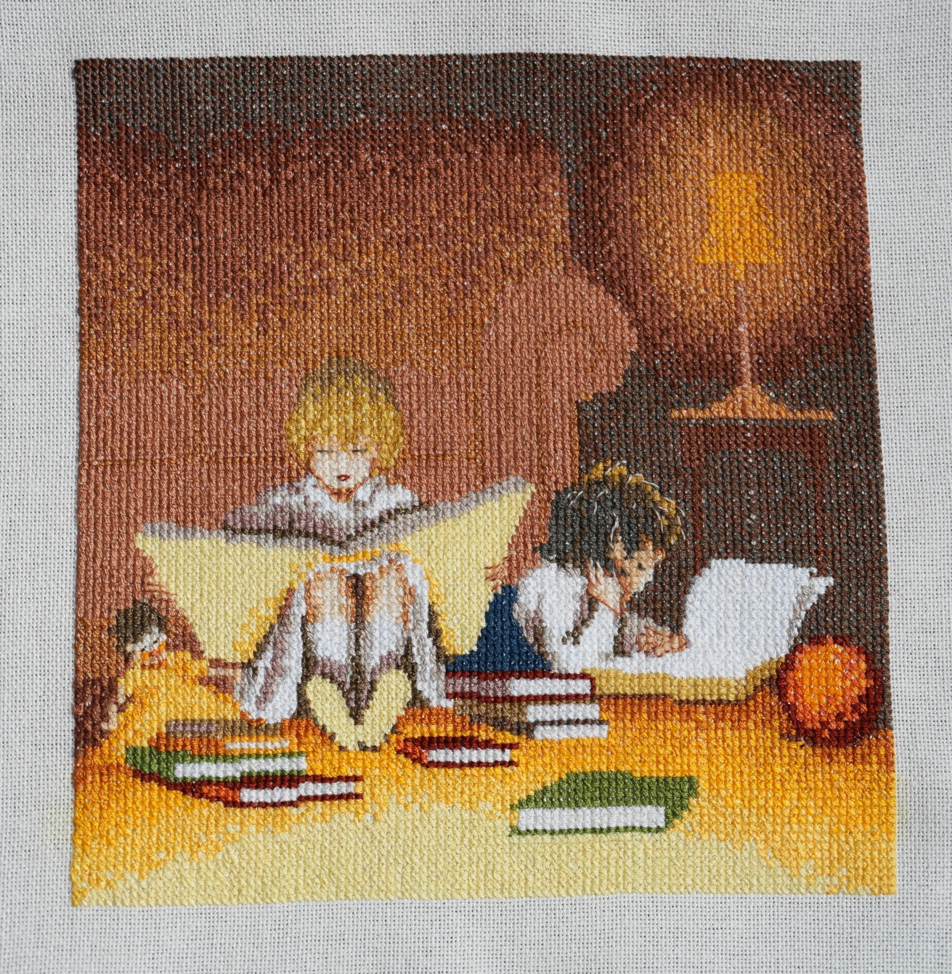 23 мая 2020 Итак, принимайте мой первый финиш апрельских стартов. Спасибо, девочки, что подтолкнули меня все-таки закончить эту работу, а не переключиться на другую. Дело в том, что шахматка из близких оттенков начала меня нервировать и дело пошло медленно. Но после ваших слов я подумала, а почему бы эту шахматку не раскрашивать разными маркерами? Я все равно зачеркиваю отшитое, а тут просто стала перед тем как шить отмечать отличным от предыдущего цветом следующую группу крестиков, и дело пошло! Вот как примерно выглядела схема: Вот результат. Bookworms (Heritage-Clayton-Innocence-JCBW383) - 100*100, 26 цветов, в т.ч. 6 блендов. Нитки - подбор из домашних запасов, схема - перенабор из интернета. Линда 27. Шила ровно 4 недели. Когда шила эти бесконечные оттенки коричневого, несколько раз ловила себя на желании немедленно съесть кусок шоколадного торта Вот так выглядит сейчас моя серия работ. Это лето, осень, зима. Осталась весна и рождество. Видимо, до следующего апреля. svetuek, Avril, katushka90 и 29 других сказали спасибо Поделиться сообщением Ссылка на сообщение