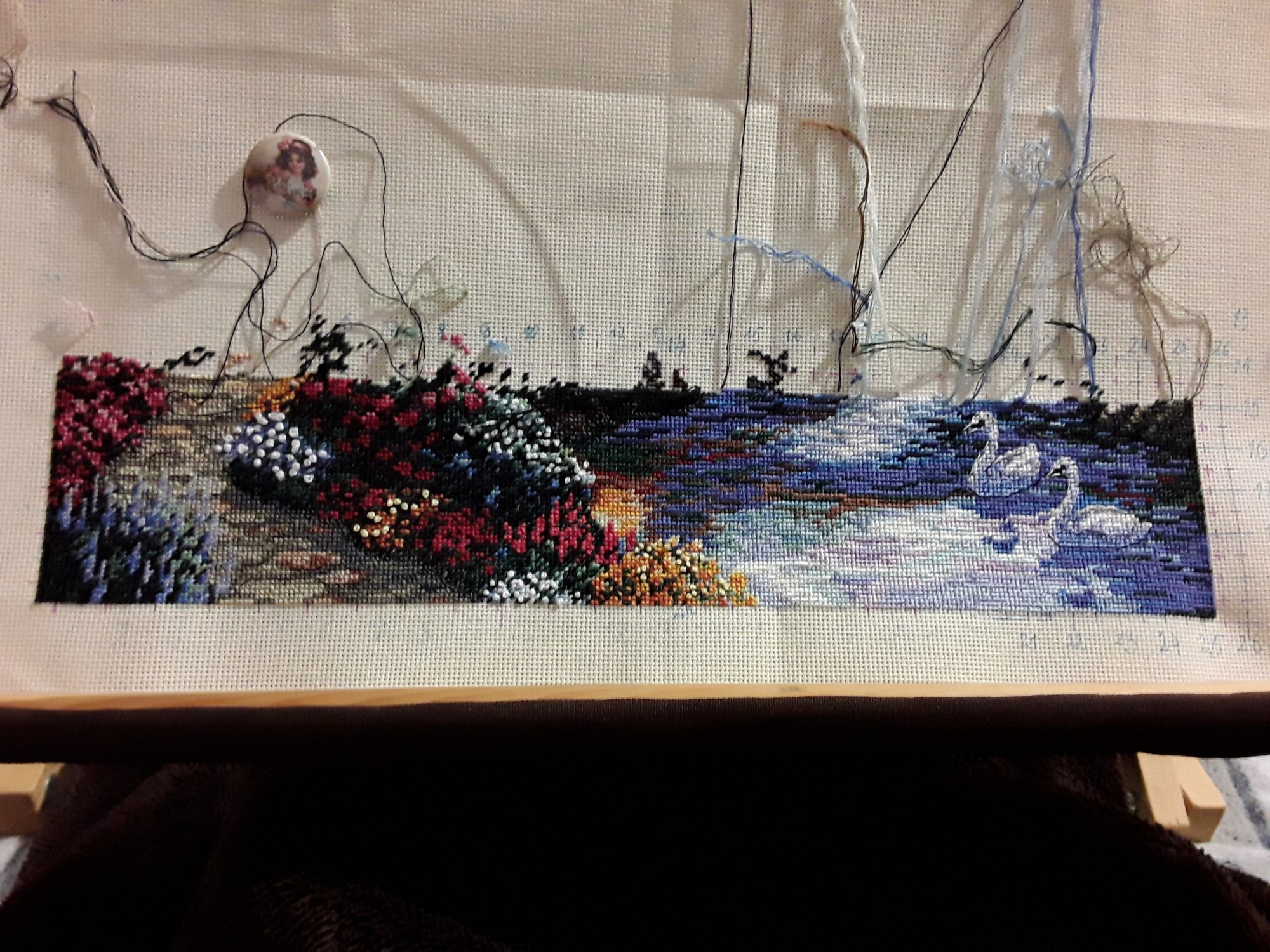 12 сентября 2021 Всем привет! Пришла отметиться со своей большой работой. Как уже говорила, у меня из, работ, осталось две: большая и маленькая. Маленькая, та, которая дачная, наверное, пошла в спячку, потому что, если и буду осенью ездить на дачу, то работы там немеряно, времени в обрез. Впрочем, что объяснять, все в курсе. Поэтому показываю свою красоту, свою давнюю любовь. Дименшнс "Суверенный мостик". (ПОЖАЛУЙСТА В ГАЙКУ) . Четверть готова, перекрутила канву, теперь полюбоваться могу только на фотках. Появились живые персонажи , они единственные живут в этом сказочном пейзаже. Те, у кого детство выпало на 70-е годы, должны помнить гобеленовые коврики с лебедями, охотниками и Красными Шапочками, которые предлагалось вешать на стенку у кровати. Вот и у моей кровати был похожий. Лебеди оттуда)) Сейчас тружусь над главным героем пейзажа-над мостиков. Что успею вышить, покажу в конце следующей недели. Мультифрукт, Сибирская Кошка, Alichka и 17 других сказали спасибо Поделиться сообщением Ссылка на сообщение