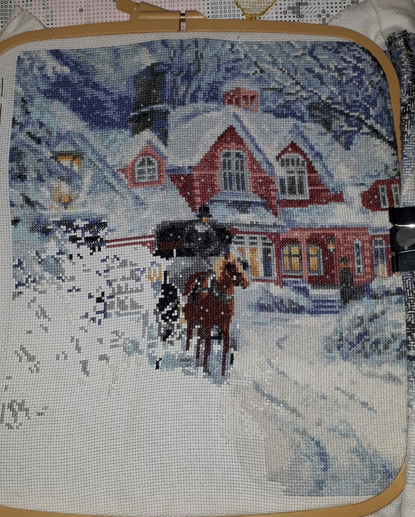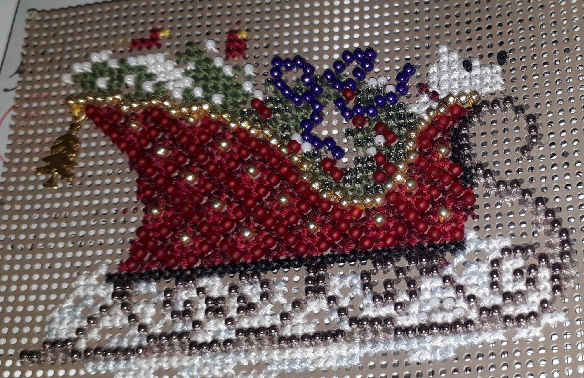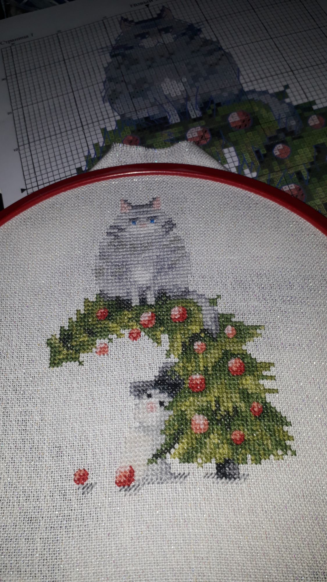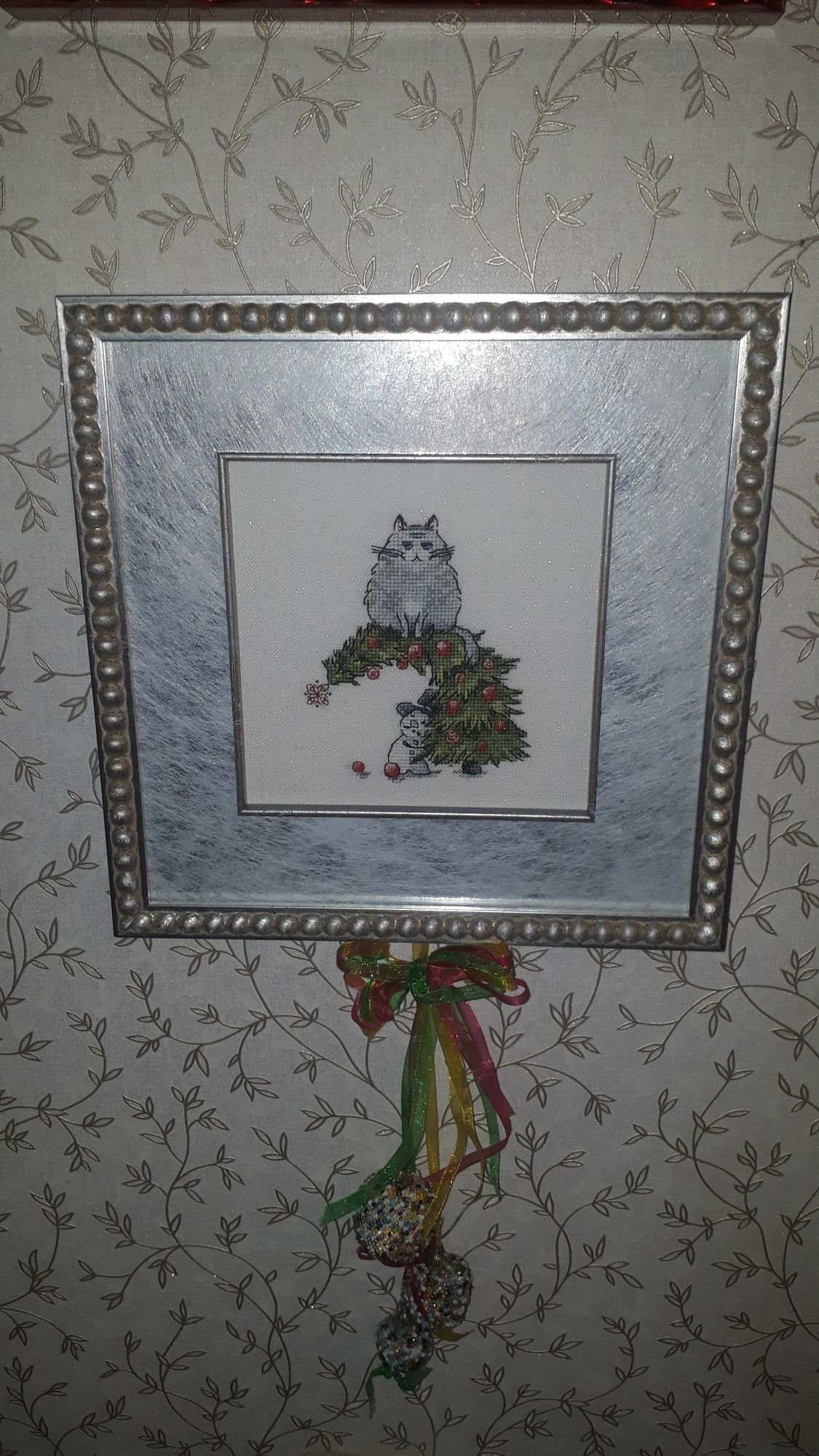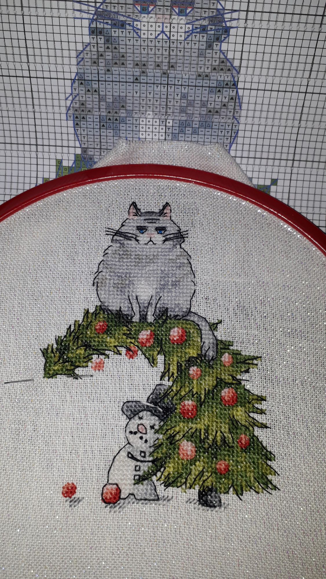 13 января 2022 Всем привет!!! Девчонки, поздравляю всех с наступившим (по всем календарям и стилям) Новым годом и Рождеством!!! Желаю всем побольше времени для любимого хобби, новых наборов, красивых стартов и финишей !!! Прошедшие праздники поспособствовали продвижению моего зимнего пейзажа от Палитры. Осталась примерно 1/6 часть: Можно, конечно, было закончить и до н.г., но мне прям приспичило вышить вот это чудо: Схема Татьяны Шаровой "Новый кот". Основа - белфаст с люрексом для нарядности, 19 цветов мулине, металлик. Размер готовой работы - 11х12 см. У меня прям рекорд- между покупкой схемы и оформлением прошло меньше 2 недель, о как приспичило!!! На этом и закончилась моя подготовка к н.г., если не считать саночек от Mill hill, законченных на работе. Это не первый мой набор от них, поэтому сложностей не возникло. Ну и после саночек начала еще 1 милл хилл : Осталось только обе готовые работы прилично сфотографировать. В багетку я и дракона своего взяла. Нашла чудесный багет к нему, но как назло, его с производства сняли, как всегда... пичалька. Приемщики предложили мне другой, резной, но я пока морально не готова отдать за оформление 13 штук.. хотя он тоже очень хорош... Маша тоже оформляла работы. Покажу так, а то когда еще у нее руки дойдут. У нее уже фактически сложилась традиция - к н.г. оформлять зверюгу будущего года. Так что в этот раз она была с тигром. Ну и напоследок похвастаюсь первым финишем в этом году. Звезда о Zengana: Встречалась со своей старой подругой, нужен был срочный подарок. Выбрала из своих запасов эту игрушку. Всего 2 цвета мулине и бисер. Вышила и сшила часов за 6. Этого мне хватило, чтобы понять, что блэкворк - это не мое, вот совсем!!! Но потом посмотрела на нее внимательнее и решила, что надо себе такое тоже повторить, но вместо мулине взять металлик, чтоб уж совсем хорошо стало.. Опять многабукофф получилось. Спасибо за внимание!!! Marusya1978, Betta, Хозяйка смешных зверей и 9 других сказали спасибо Поделиться сообщением Ссылка на сообщение