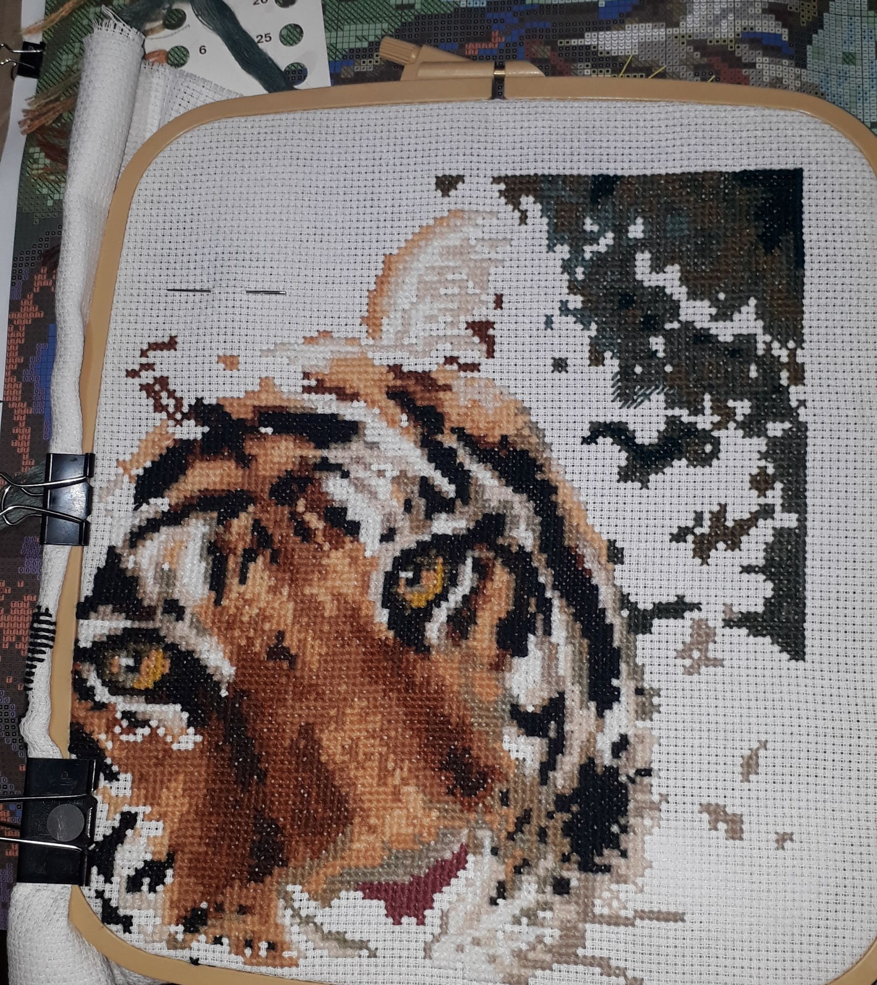 21 марта 2022 Дброго вечера всем. Маруся, спасибо за волшебный пендель. С одной стороны, каждую неделю писать особо не о чем, а сдругой - пропустил пару-тройку раз, потом еще и еще, и вот уже не знаешь, с чего начать. Раз уж сегодня мой личный новый год, подведем итоги прошедшего. Судя по галерее, хвалиться особо нечем, но много нашлось невыставленного по разным причинам. Итак, за год навышивалось 14 работ, большинство из маленькие, но удаленькие. Из большого - дракон и гобелен с букетом. Усадьбу от Палитры я закончилаи даже оформила: Дракон оформился тоже. Надо только сфотографировать его получше. Милл хилл я еще немного поковыряла и отложила. Видимо до следующей зимы. Сейчас на повестке дня у меня тигры. Обоих начала вышивать 1 февраля. Дома шью Риолисовского красавца: а на работе милашку от Овна: Уф, вроде немного разгреблась. Спасибо. Путешественница, Elenana, Marusya1978 и 9 других сказали спасибо Поделиться сообщением Ссылка на сообщение