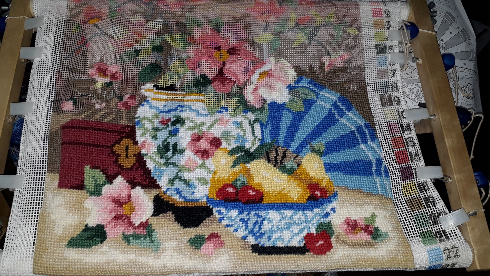 8 мая 2022 Всем привет! Если по законченным процессам я отчиталась, то по текущему еще нет. Процесс внезапный, я его не планировала. Начала только потому, что упаковка оказалась большой и тупо не влезла в коробку с наборами. Итак, старинный гобелен о DIMENSIONS "Оriental still life" Куплен на распродаже в рукодельном магазине чисто по картинке, я даже описание не прочитала. Когда пришел, упаковка оказалась значительно больше и пухлее стандартной. Открыла, а там.... страмин с напечатанной картинкой, пятнистая схема, 2 комка шерстяных ниток и инструкция на английском. В закрома влезать он отказался, пришлось начать. Нитки 3 видов- шерсть, акрил и мулине. На страмине напечатан год выпуска- 1992! 30 лет меня ждал.... Рисунок смещен относительно страмина. Поэтому при вышивке больше ориентируюсь на обложку набора, чем на схему. Один плюс- клеточки крупные. На сегодня половина уже вышита. Стежки пухлые, неровные и похожи на бисеринки, особенно белые. Ну и предьявлю тигра с усами, чтоб окончательно завершить процесс: Хоть их и не видно почти. Но какой тигра без усов!!! Спасибо. Всех с прошедшими и наступающими! kreolka, Marusya1978, Путешественница и 4 других сказали спасибо Поделиться сообщением Ссылка на сообщение
