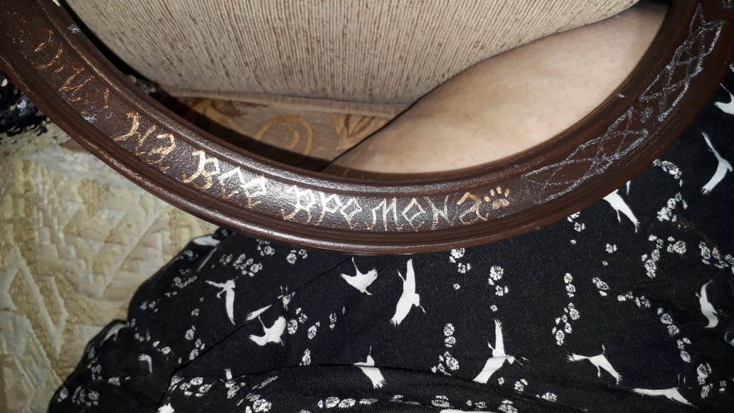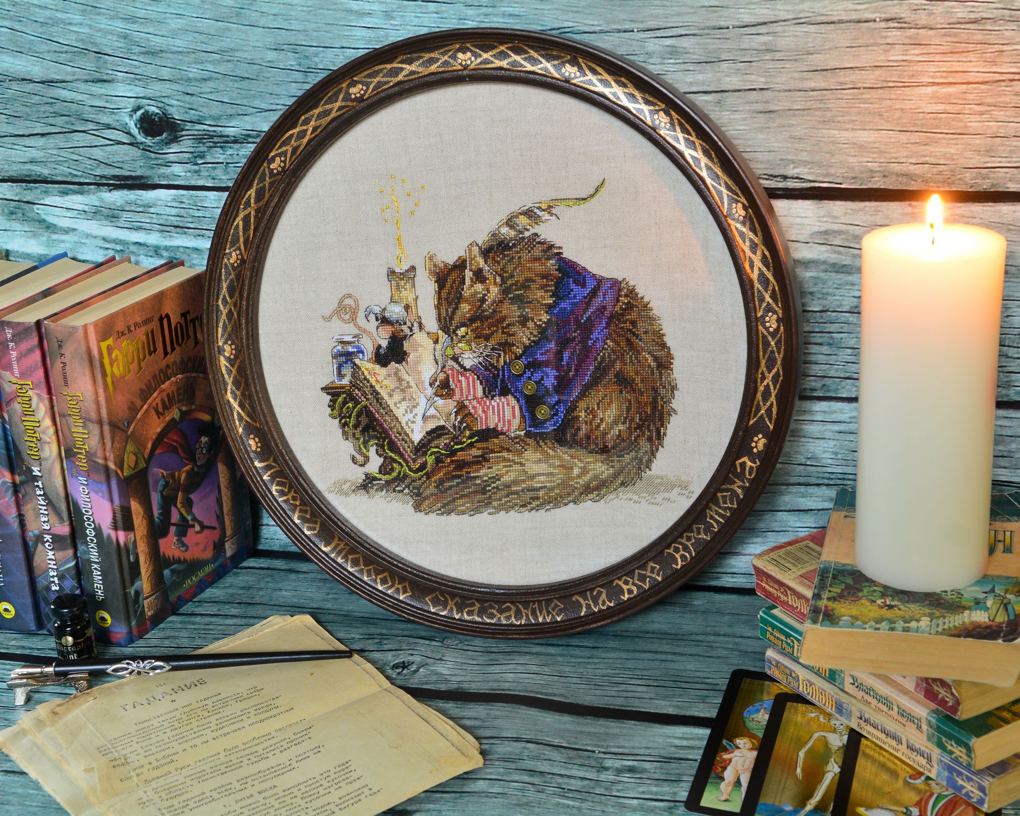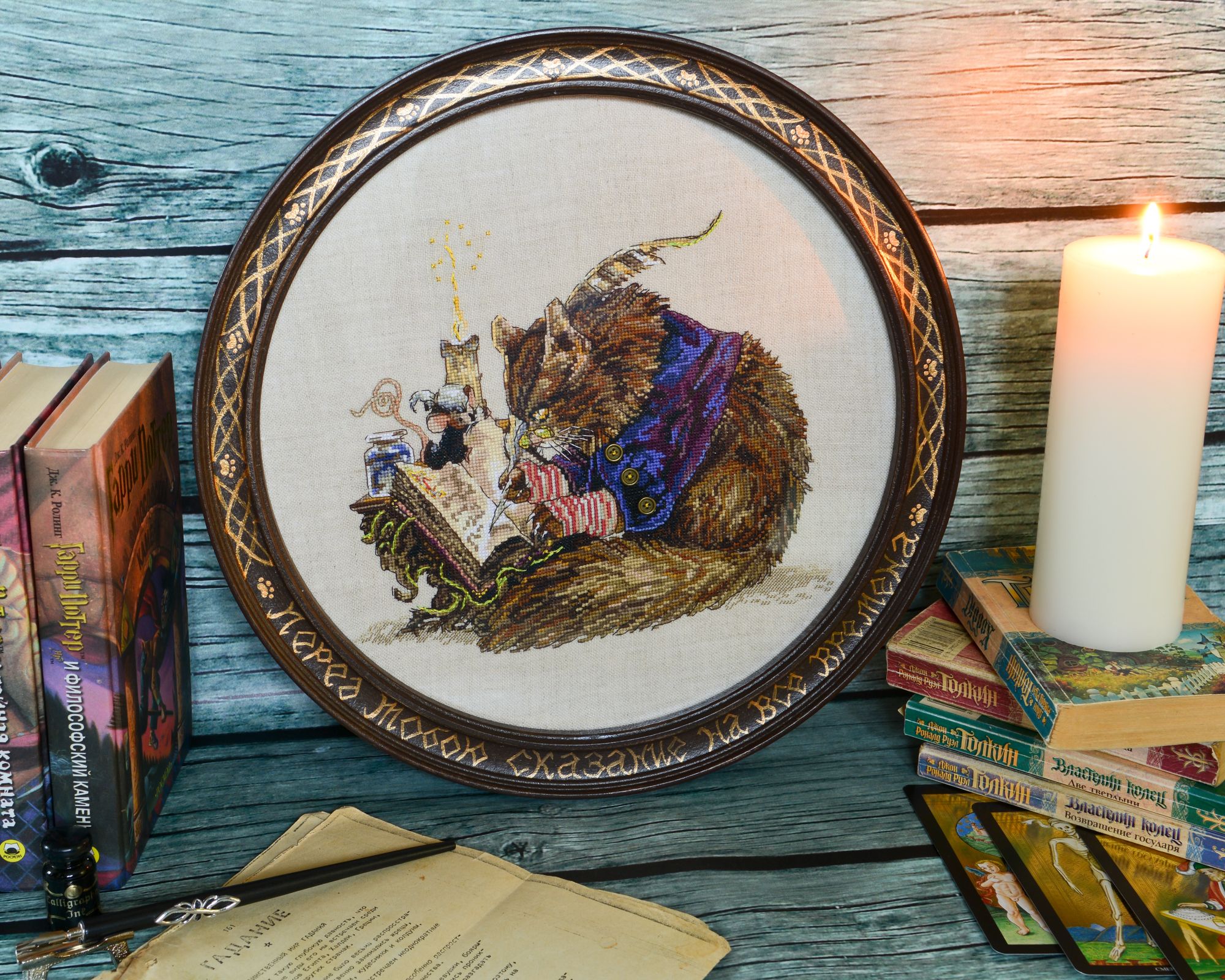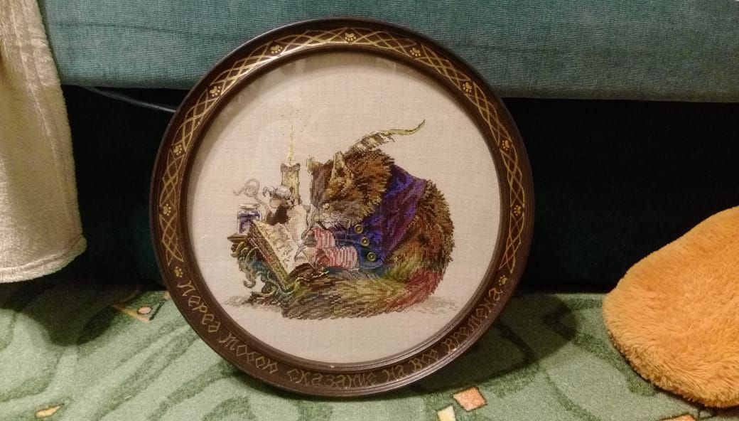 21 октября 2020 12.10.2020 в 10:51, Миссис Мыштон сказал(а): Тока не пойму, а где фотка кота в оформлении? Что ж, настала пора показать и оформление котика) Чтобы сестра получила заслуженную похвалу Итак, его Котейшество в оформлении: и детальки - как всегда - отдельно: Оформление самостоятельное, в готовую круглую раму. Рама была куплена на весенней Формуле Рукоделия 2020 года, потому что туда я потащила своего котейку, чтобы показать Аннаик. Тогда же думала отдать его на дистанционное оформление, но не знала, чего хочу точно, а для дистанционки это (как мы с сестрой выяснили) очень большая проблема. А в итоге увидели готовые рамы от мастерской "Дело в раме", некоторые были с росписью: И вот тогда у нас и появилась идея его оформления! Тогда я подумала про надпись в стиле кольца Всевластия. А сестра щедро предложила свою помощь в росписи. Ну как предложила - на моё замечание, что у меня вряд ли получится, она сказала, что распишет Потому что просто в рамочке ему было скучно: Собственно, в долгий ящик в этот раз ничего не откладывалось, поэтому уже в последний день зимы Кот был готов) Не без трудностей, конечно. С узором было непросто - в итоге он из головы, под кельтский. Для букв думали найти трафарет, но тоже не срослось; в итоге надпись сестра сделала, как видела. Однако сама надпись её немного удивила - больно длинная) Сама я больше всего тащусь от отпечатков меленьких лапок... Так что ещё раз спасибо сестре) Хозяйка смешных зверей, Касси, Catopuma и 14 других сказали спасибо Поделиться сообщением Ссылка на сообщение