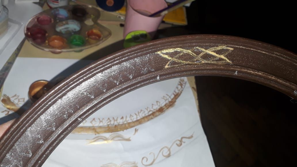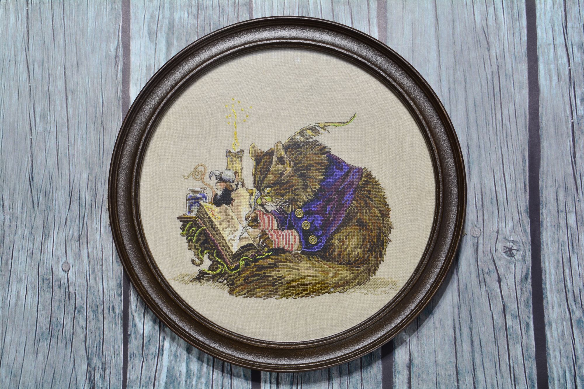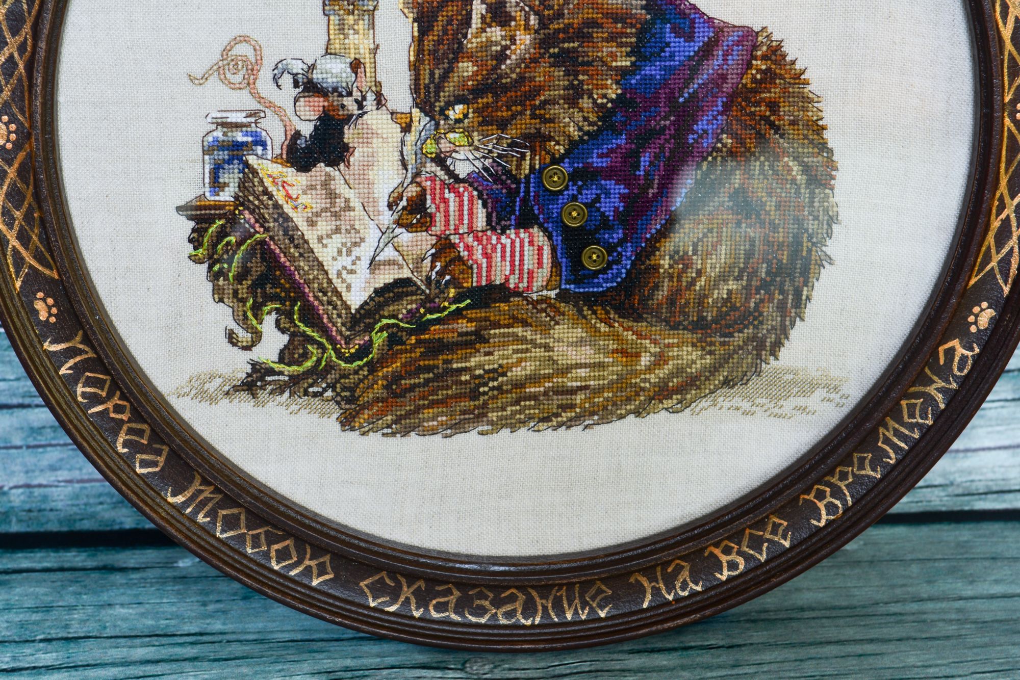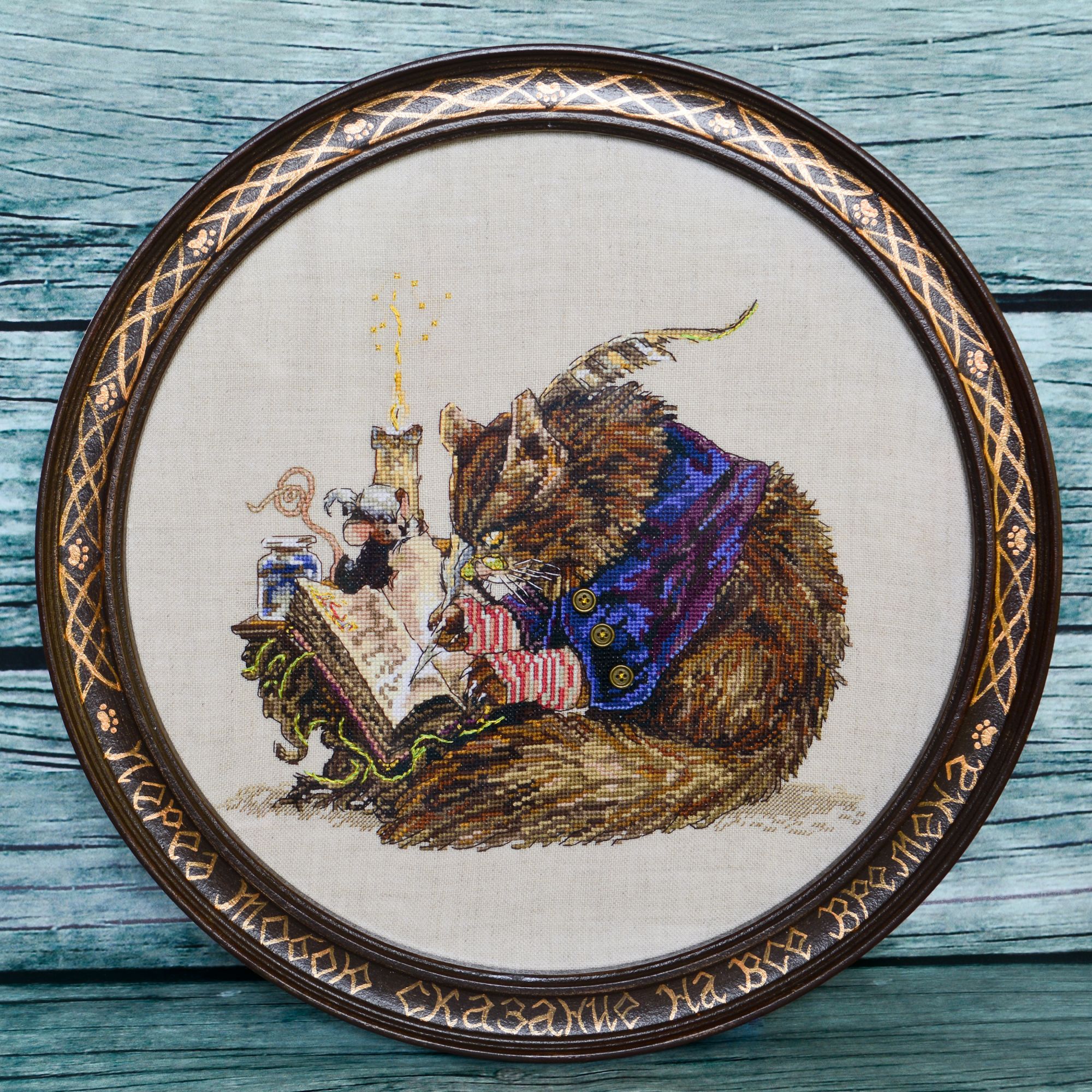 21 октября 2020 12.10.2020 в 10:51, Миссис Мыштон сказал(а): Тока не пойму, а где фотка кота в оформлении? Что ж, настала пора показать и оформление котика) Чтобы сестра получила заслуженную похвалу Итак, его Котейшество в оформлении: и детальки - как всегда - отдельно: Оформление самостоятельное, в готовую круглую раму. Рама была куплена на весенней Формуле Рукоделия 2020 года, потому что туда я потащила своего котейку, чтобы показать Аннаик. Тогда же думала отдать его на дистанционное оформление, но не знала, чего хочу точно, а для дистанционки это (как мы с сестрой выяснили) очень большая проблема. А в итоге увидели готовые рамы от мастерской "Дело в раме", некоторые были с росписью: И вот тогда у нас и появилась идея его оформления! Тогда я подумала про надпись в стиле кольца Всевластия. А сестра щедро предложила свою помощь в росписи. Ну как предложила - на моё замечание, что у меня вряд ли получится, она сказала, что распишет Потому что просто в рамочке ему было скучно: Собственно, в долгий ящик в этот раз ничего не откладывалось, поэтому уже в последний день зимы Кот был готов) Не без трудностей, конечно. С узором было непросто - в итоге он из головы, под кельтский. Для букв думали найти трафарет, но тоже не срослось; в итоге надпись сестра сделала, как видела. Однако сама надпись её немного удивила - больно длинная) Сама я больше всего тащусь от отпечатков меленьких лапок... Так что ещё раз спасибо сестре) Хозяйка смешных зверей, Касси, Catopuma и 14 других сказали спасибо Поделиться сообщением Ссылка на сообщение