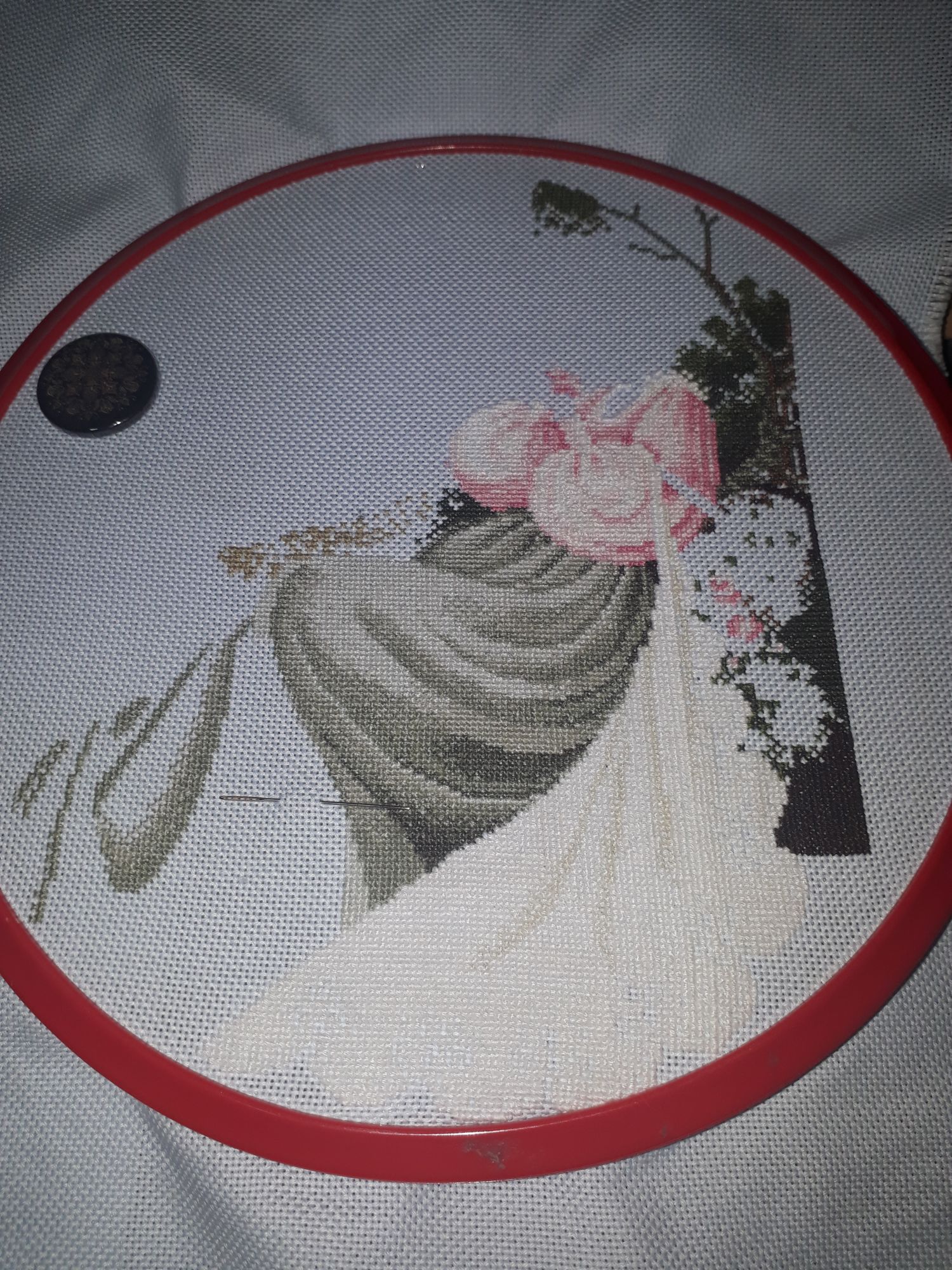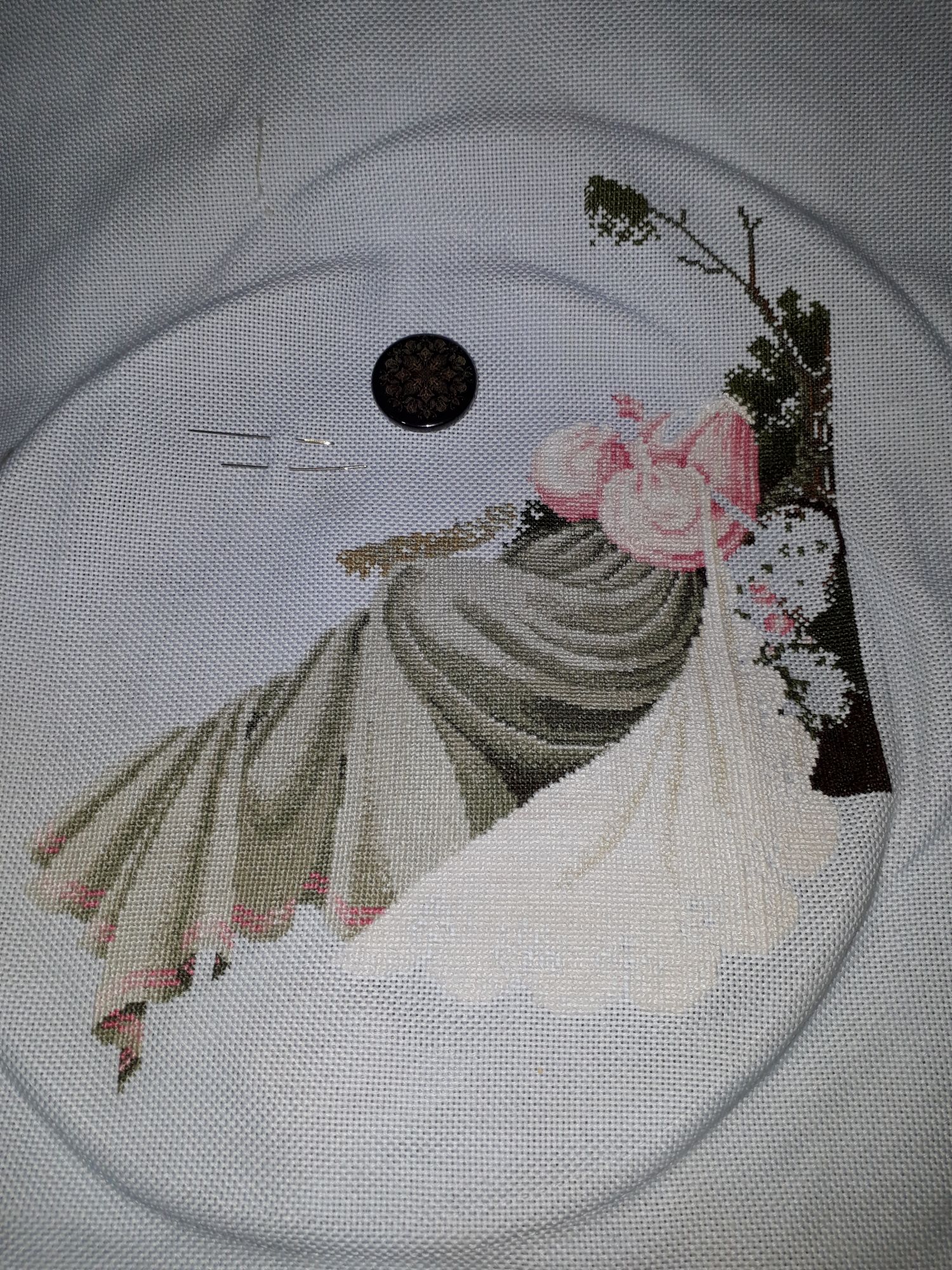 18 октября 2020 Ну что? нигого? Никого. Будем исправлять. Давненько не писала-не отчитывалась. Хотела еще на позатой неделе написать, как все замечательно- и процесс-то один закончен, и второй-то идет, и работу в багетку отдала и жду... а тут обломс... Багет не нашелся, к законченному процессу купленная рамочка не подошла, да и дама зависла.... так что настроению писать настал капут. Но отчитаюсь по порядку. Сначала про домик. На работе подкинули деньжат и я решила не тянуть с оформлением своего гобеленчика. Рядом с работой находится приснопамятный "Багетчик" и в пятницу пару недель назад я поскакала туда с вышивкой и денежками. На лестнице удивила разметка на полу, отмечающая каждые 1,5метра. Попыталась представить себе эту очередь аж от входа за оформлением и не смогла.... но не суть. За час подобрала оформление, (тот багет, что внизу) оплатила аванс.. А в понелельник меня обрадовали, что 10 метров данного багета не нашли на складе... Не везет мне с Багетчиком, хоть и рядом. Так что на этой неделе, прихватив на растрату маму и сестру, я направилась в багетку на Кропоткинскую. Там вроде все сложилось удачно. Но показывать не буду. Вдруг что... Ждемс... Теперь пункт 2. На работе закончила аж 2 набора. Бутерброд от Ч.И. и бабочку от Риолиса. вышивать в бабочке особо нечего. Процесс быстрый и незатейливый. Но канву я бы все же поизящнее в набор положила. Ну и бутер: Закончен, выстиран, поглажен но рамочка от Щепки оказалась для него большевата. Жду, когда появится размер поменьше... Напоследок дама от L&L. Первый затык с ней случился, когда я добралась до рукавов. Одного цвета нигде не было в наличии. Оказалось, что его сняли с производства и рекомендовали заменить другим. Все бы ничего, да замена тоже значится в легенде вышивки.. вот они оба, голубчики. Разница между ними мизерная , поэтому волевым решением, я распотрошила остатки набора от Милл хилла и взяла розовый оттуда. Потемнее немного, но вроде некритично. Далее настал черед юбки: Сейчас потихоньку ковыряю розочки вокруг. Вот такие продвижения. Betta, Marusya1978, lamina-65 и 10 других сказали спасибо Поделиться сообщением Ссылка на сообщение