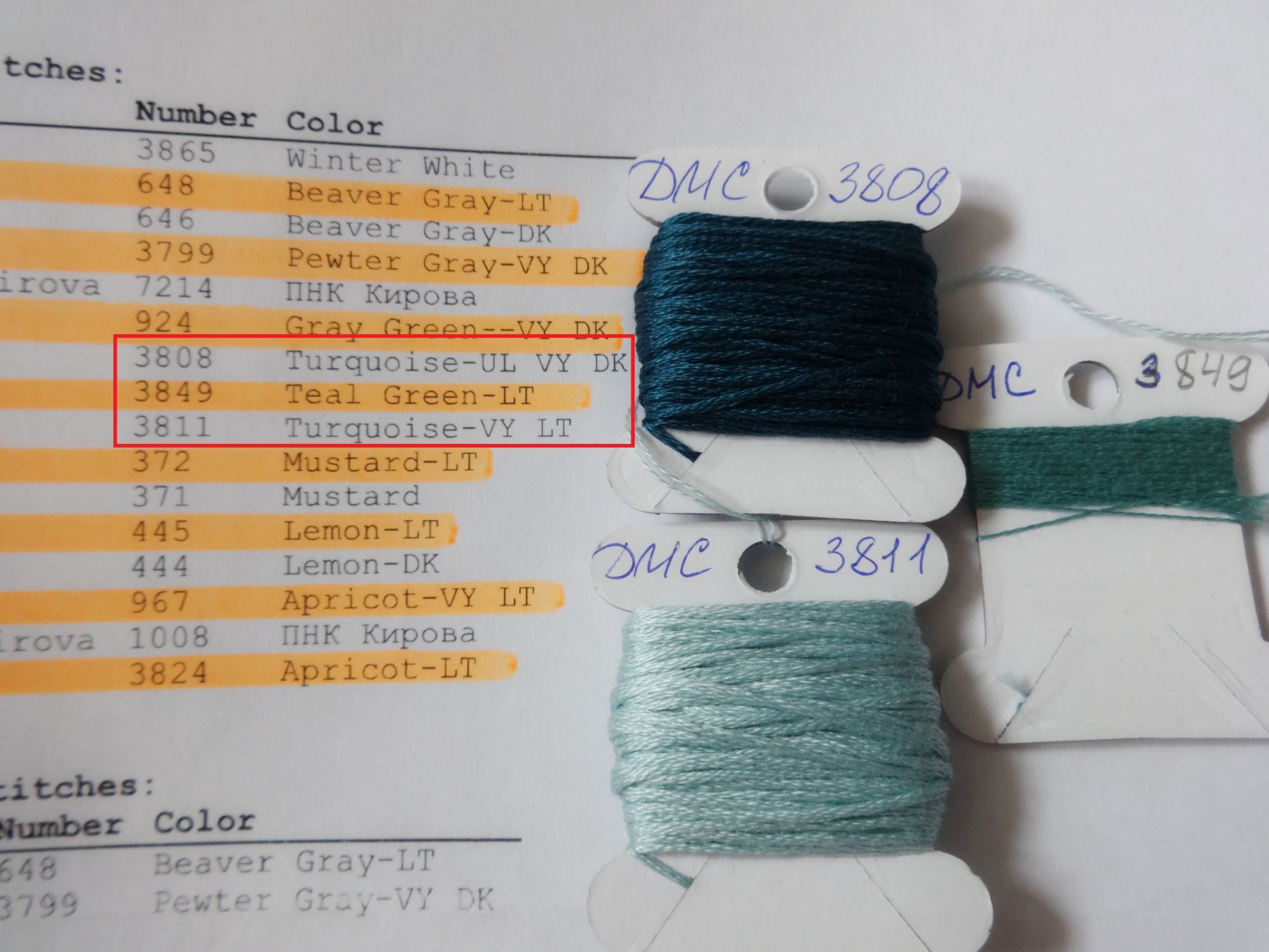 22 сентября 2020 21 минуту назад, korund сказал(а): Лично у меня нет проблем с голубым... а с бирюзовым как раз проблемы... Наталья, в смысле опознания или наличия в наборах? 8 минут назад, TheSunniestDay сказал(а): Боюсь, что будут)) Я точно знаю, что цвет редкий. У меня, кажется, в текущих процессах его вообще нет. Для опознания. В карте цветов DMC название такое Turquoise = Бирюзовый. Номера цветов: 597, 598, 3808, 3809, 3810, 3811 Не знаю, верна ли цветопередача (мне на вид они все тут - голубые ), взяла цвета именно по названию. Но мне кажется, что более бирюзовые - это три цвета справа. Кстати, вот их номера и названия: Bright Turquoise (Ярко-бирюзовый) 3844, 3845, 3846 Teal Green 3847, 3848, 3849 Наверное, будете смеяться, но его перевели, как "Цвет рабочего стола Windows". Ладно, копья ломать не будем, все цвета, что есть на этом фото и в списке номеров - подходят. Mangusta, t_elen, Catopuma и 14 других сказали спасибо Поделиться сообщением Ссылка на сообщение