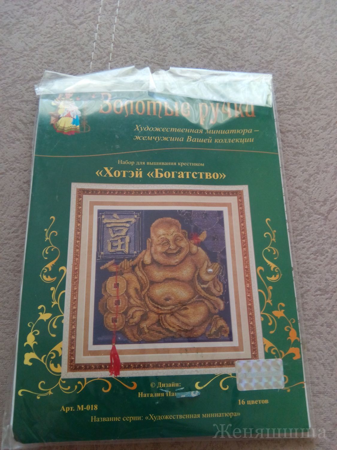 9 февраля 2021 Япония в крестиках Не думала, что в закромах у себя найду что-то связанное с Японией. А Нашла!!!! Это два набора от фирмы "Золотые Ручки" - "Здоровье" и "Богатство" с изображением хотэя. Хотэй, Будай (яп. 布袋 — «холщовый мешок», «полотняный мешок») в японской мифологии один из «семи богов счастья», бог общения, веселья и благополучия. Один из самых популярных персонажей нэцкэ. Хотэя часто называют «Буддой», ошибочно принимая его изображения за изображения Будды Шакьямуни. В народе считается, что для исполнения желаний нужно потереть фигурку по животу триста раз, держа в голове мысль о том, исполнения чего вы желаете. Хотэй изображается держащим: слитки золота, монеты, посох, жемчужину, персик, веер, отгоняющий горе, мешок с богатством, ведущим в поводу дарственного коня. Иногда его изображают окруженным детьми или держащего детей на руках — такие изображения считаются талисманами плодовитости. Хотэй предопределяет людские судьбы и помогает в осуществлении желаний. Хотэй — бог богатства. Посмотрела, почитала, пока выполняла это задание и прям ручки зачесались вышить этих двух пузатиков Essenia, lamina-65, tamara.34 и 11 других сказали спасибо Поделиться сообщением Ссылка на сообщение