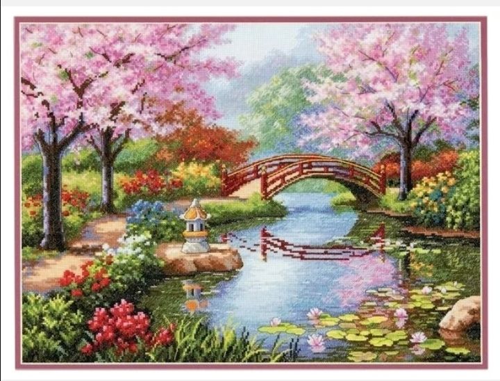 9 февраля 2021 Япония в крестиках Как-то давно я немного увлекалась Японией, аниме, фильмами про Японию. Сейчас в основном смотрю русских блогеров, проживающих в Японии, очень интересно рассказывают про жизнь, традиции, какие-то обычные вещи для них и совершенно необычные для нас. У мужа увлечение ещё не угасло, он активно смотрит аниме (и периодически заманивает меня, из последнего смотрим Атаку титанов ), а также учит японский язык в универе, но это так, хобби, для мозгов полезно)))) Вообще планировали поездку в Японию, но из-за ситуации в мире и некоторых изменений в моей жизни все отложилось на неопределённый срок, ну надеюсь когда-нибудь поедем Дизайнов с Японией не так и много, у меня в закромах находится один из популярных дизайнов от Dimensions - Японский садик. Привлёк розовым цветом и мостиком, а также тем фактом, что многие называют его сложным для отшива. Это ж явный вызов, надо вышить)))) tessykat, korund, Ксен40 и 12 других сказали спасибо Поделиться сообщением Ссылка на сообщение