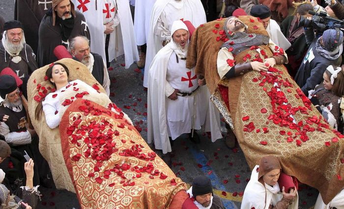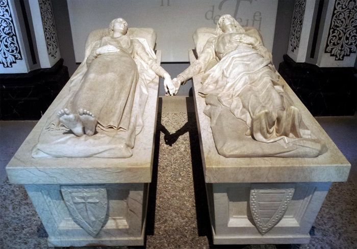 17 февраля 2021 Ну и романтическая пара.. Здесь уже упоминалась история Ромео и Джульетты, всем известная... А ведь Шекспир ее позаимствовал! И, как считают испанцы, именно у них. Потому что в Испании есть похожая история,которая произошла на самом деле. И это история влюбленных из Теруэля. Длинная история, поэтому пусть будет под катом. Скрытый текст Дело происходило в 13 веке. Теруэль, один из городов королевства Арагон в Испании, был родиной для двух благородных семейств – дона Сегуры, у которого росла дочь Исабель, и дона Марсильи, одного из сыновей которого звали Диего. Юноша и девушка с детства были привязаны друг к другу, а став взрослыми, полюбили друг друга, и Диего предложил Исабель стать его женой. Она согласилась - при условии получения родительского благословения.Но жених, который не был старшим из братьев, а потому не мог наследовать фамильное состояние, был в глазах отца невесты невыгодной партией для дочери, а потому разрешения на брак получено не было. По другой версии, семья Диего де Марсильи была сама по себе бедна, несмотря на свою знатность, и породниться с ними дону Сегуре казалось поэтому делом невозможным. Тогда Диего принял решение отправиться в другие земли в поисках славы и богатства, он просил отца девушки лишь дать ему время – пять лет, срок, в течение которого Исабель должна была оставаться его невестой и не выходить замуж за другого. Диего де Марсилья отправился воевать с маврами – еще с VIII века на Пиренейском полуострове шла борьба за возвращение испанских земель – Реконкиста. Юноше удалось добиться и богатства, и славы – однажды он даже спас жизнь самому королю. К концу оговоренного срока Диего возвращался в родной Теруэль к любимой девушке, чтобы наконец соединить с ней свою судьбу. Но то ли юноша ошибся в расчетах, то ли – по одной из трактовок истории – ему помешала некая влюбленная в него роковая красавица из дальних земель, всеми силами старавшаяся удержать Диего возле себя, но в Теруэль он прибыл в день, когда его возлюбленная Исабель выходила замуж. Отец выдал дочь за богатого дона Родриго из соседнего города Альбарассина. Сама же Исабель, не получая от жениха вестей, была уверена, что он мертв, а потому по истечении оговоренного срока уступила отцовской воле и согласилась стать женой богатому соседу. И, увы, Диего прибыл уже после того, как его возлюбленную обвенчали... В ту же ночь Диего пробрался в дом к Исабель и стал просить ее о единственном поцелуе, но получил отказ – ведь отныне она принадлежала другому. Все было разрушено. Сердце юноши не выдержало горя, и он упал замертво у ног любимой. На похороны Диего Исабель пришла в подвенечном платье. Она приблизилась к телу, наклонилась над ним и поцеловала Диего в губы – выполнив его просьбу, но слишком поздно. Спустя мгновение несчастная девушка умерла. Похоронили влюбленных вместе, чтобы дать им возможность воссоединиться в смерти, раз уж в жизни им это не удалось. В 16 веке останки юноши и девушки нашли, именно они считаются этими влюблёнными. Их и перезахоранивали, и выставляли в музее, но в 1955 году при церкви Сан-Педро был сооружен Мавзолей влюбленных, и скульптор Хуан де Авалос построил мраморные саркофаги, в которых останки нашли упокоение. На крышках из белого камня вытесаны лежащие фигуры девушки и юноши, они протягивают друг к другу руки, но не с