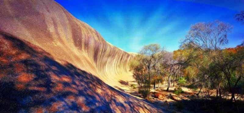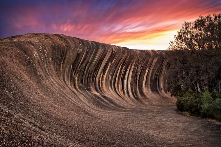 6 марта 2021 ЭКСКУРСИЯ ПО АВСТРАЛИИ N1. Я предлагаю отправится на экскурсию на скалу Каменная волна. Побережье Австралии славится своими волнами. Обычно они зарождаются в океане, их постоянно покоряют серферы. Но есть здесь еще одна интересная волна, которую можно «оседлать», не обладая доской для серфа, и даже не имея навыков серфера. Мало того, даже в воду не придется залезать. В юго-западной части страны в штате Западная Австралия расположен природный феномен, который называется «Каменная Волна» или «Скала Волна». Это естественное образование выглядит так, будто кто-то заколдовал и превратил обычную волну в камень. Волна «играет» на солнце. То есть меняет свой цвет в зависимости от угла падения солнечного света. Вертикальные полосы Скалы становятся то красноватыми, то желтыми, то серыми, тем самым еще больше напоминая самую настоящую волну. В декабре 1928 года на самом гребне Каменной Волны проложили искусственную невысокую стенку, благодаря которой дождевая вода стекает в небольшое водохранилище, расположенное в 150 метрах к западу. Оттуда открываются чудесные виды Кроме Каменной Волны поблизости есть еще подобные интересные образования, например Hippos Yawn в 1 км на восток. Это округлая неглубокая пещера с ровными краями, похожая на открытую пасть гиппопотама (отсюда и название, которое можно перевести как «Гиппопотам зевает»). Высота свода на входе 12,6 метров. lamina-65, Женяшшша, Вега и 8 других сказали спасибо Поделиться сообщением Ссылка на сообщение