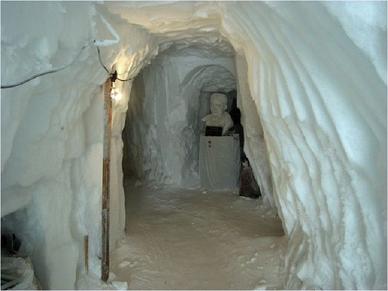 19 марта 2021 Задание клуба путешественников Санин Владимир - Семьдесят два градуса ниже нуля Уникальная станция на геомагнитном полюсе земли «Восток» оказалась под угрозой закрытия из-за недостатка топлива. Спасти положение вызывается отряд добровольцев со станции «Мирный». Доставив санно-гусенечный поезд с топливом зимовщикам станции «Восток», отряд Гаврилова, несмотря на неумолимо надвигающуюся долгую полярную ночь, отправляется назад, в «Мирный»… Станция «Восток» В середине прошлого века интерес исследователей разных стран к Антарктиде резко возрос. По соглашению 1955 г. территория Шестого континента была разделена на «сферы влияния» между 12 государствами, которые начали создавать научные станции и проводить глубокие исследования. Советскому Союзу достался восточный сектор, а самую «макушку» земного шара – Южный Полюс заняли американцы. Правда, оговорив при этом, что всегда рады видеть там гостей из СССР. Станция Восток расположена вблизи от Южного геомагнитного полюса Земли и является одним из наиболее подходящих мест для исследования изменений в магнитном поле Земли. Обычно на станции летом находятся 40 человек — учёных и инженеров. Зимой их количество сокращается до 20. Более сорока лет российские специалисты проводят здесь исследования углеводородного и минерального сырья, резервов питьевой воды; осуществляют аэро-метеорологические, актинометрические, геофизические и гляциологические наблюдения, а также специальные медицинские исследования; занимаются изучением изменения климата, исследованием «озоновой дыры», проблем повышения уровня воды в Мировом океане и др. Климатические условия в районе станции — одни из тяжелейших на Земле. Сильнейшие морозы. Район станции отличается очень низкими температурами в течение всего года. Здесь зарегистрирована самая низкая температура на планете из всех метеорологических станций в XX веке: −89,2 °C (21 июля 1983 года). Самым тёплым летним днём на станции за всё время её существования остаётся день 16 декабря 1957 года, тогда термометр зафиксировал −13,6 °C. Среднегодовая скорость ветра 5,4 м/сек, его направление — запад-юго-запад, максимальная скорость ветра 27 м/с (почти 100 км/ч). Жилое здание станции полностью заметено и находится под двухметровым слоем снега. Дневного света внутри не бывает. А наружу можно выйти через два выхода — основной и запасный. Основной выход — это дверь, сразу за которой в снегу прорыт 50-метровый тоннель. (Это памятник Алексею Трешникову, основателю станции Восток). Запасный выход короткий и представляет собой крутую лестницу на поверх ность снежного покрова над зданием станции. Высота расположения станции — 3488 м над уровнем моря, что вызывает острую нехватку кислорода. Из-за низкой температуры воздуха в районе станции его давление с высотой падает быстрее, чем в средних широтах, и подсчитано, что содержание кислорода в атмосфере в районе станции эквивалентно высоте пяти тысяч метров. Здесь все против человека. Отсутствие влаги в воздухе, на что первое время не обращаешь внимания, со временем превращается в основной дискомфортный фактор. Сочетание низких температур и высокой сухости приводит к растрескиванию кожи, постоянному насморку, воспалению дыхательных путей. Вода на «Востоке» не просто пресная, а дистиллированная. Пить такую воду очень вредн