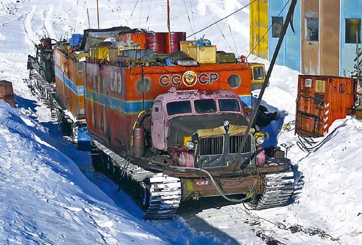 19 марта 2021 Только что, Сибирская Кошка сказал(а): Задание клуба путешественников Санин Владимир - Семьдесят два градуса ниже нуля Продолжение. Про доставку на "Восток" До Антарктиды все грузы доставляются на кораблях. Ледокол "Обь", про который говорится в книге. Разгрузка санно-тракторный поезд готов в дорогу В пути Дозаправка Ремонт трещины подстерегают Пришли на "Восток" Сейчас ничего не изменилось, только фотографии стали красочней В книге часто упоминается удобная и уютная "Харьковчанка", посмотрите, какая это машина. Уже в мае 1958 года на Харьковском заводе транспортного машиностроения было собрано «Изделие 404С». Машина имела шасси АТ-Т, удлиненное на два катка. Гусеницы снабдили специальными грунтозацепами и уширителями, в результате чего их ширина достигла 1 м. Форсированный дизель, снабженный приводным нагнетателем, развивал мощность 995 л. с. на высоте 3000 м. Двигатель, как и на тягаче, располагался в передней части. А вот компоновка, в отличие от капотника АТ-Т, была выбрана вагонная, что позволило получить полезную внутреннюю площадь кузова в 28 м кв. Сам же этот кузов с алюминиевой обшивкой и теплоизоляцией из 8 слоев капроновой ваты изготовили на Харьковском авиационном заводе. Стоит ли удивляться, что новый вездеход вскоре получил название «Харьковчанка»? Это монументальное сооружение (длина – 8,5 м, ширина – 3,5 м, высота – 4 м) весом 35 т могло разгоняться до 30 км/ч, преодолевать подъемы до 30° и тащить за собой 70-тонный прицеп. "Харьковчанка" могла и плавать, правда, погружаясь только на пол кабины. Сама кабина имела площадь в 28 кв. м и высоту 2,1 м. Жилой салон был рассчитан на 6-8 спальных мест. Из этой кабины, подняв люк, можно легко добраться до двигателя. Таким образом, устранять некоторые неисправности двигателя можно, не выходя из машины. "Харьковчанки" служили в Антарктиде без малого 40 лет и ничего лучшего до сих пор не создано. Так утверждать позволяет хотя бы тот факт, что в 1967 году прошлого столетия на этих машинах был достигнут Южный полюс относительной недоступности, с тех пор там не бывал больше никто! легендарная "Харьковчанка", в какой одежде осваивали Антарктику. заводчане осматривают новую машину. митинг на заводе перед отправкой "Харьковчанки-2" в Антарктику. "Харьковчанка" и "Харьковчанка-2", с вагонной компоновки перешли опять на капотную. lefkorosida, soln33, tessykat и 8 других сказали спасибо Поделиться сообщением Ссылка на сообщение