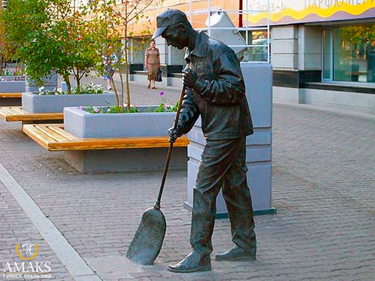 23 мая 2021 Необычные памятники. Хочу показать вам памятник из своего города Уфа - памятник дворнику. Памятник установлен возле ТЦ МИР 12 ноября 2007 г. Его автором выступил скульптор Халит Галиуллин . Памятник сделан из бронзы и весит 300 кг. По словам автора памятника, в своё время подрабатывавшего дворником: "Я не стремился придать своей скульптуре сходство с каким-то конкретным дворником — это собирательный образ. Работу эту я знаю не понаслышке — в студенчестве сам подрабатывал дворником ." Anneti, lamina-65, Loculus и 8 других сказали спасибо Поделиться сообщением Ссылка на сообщение