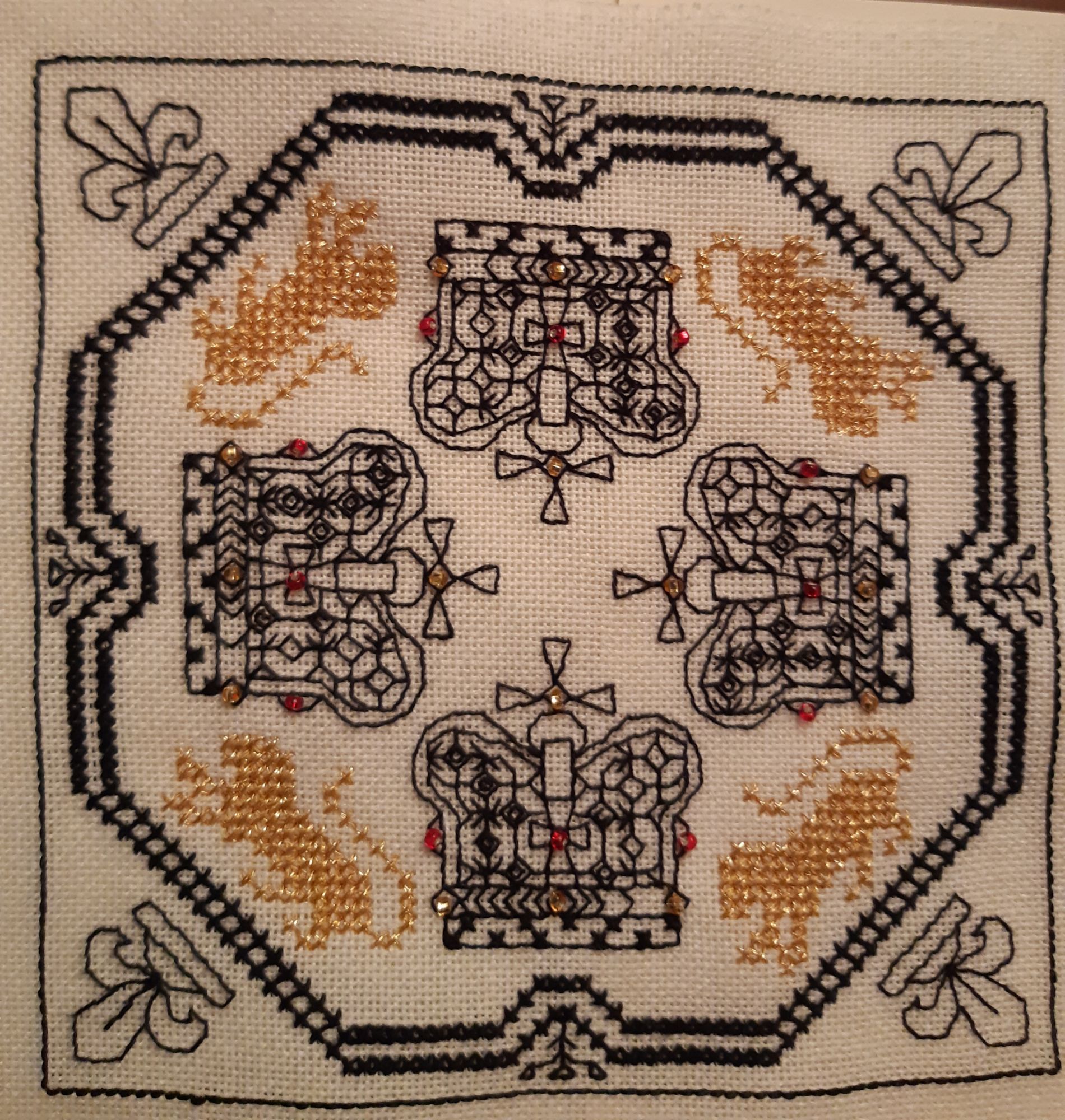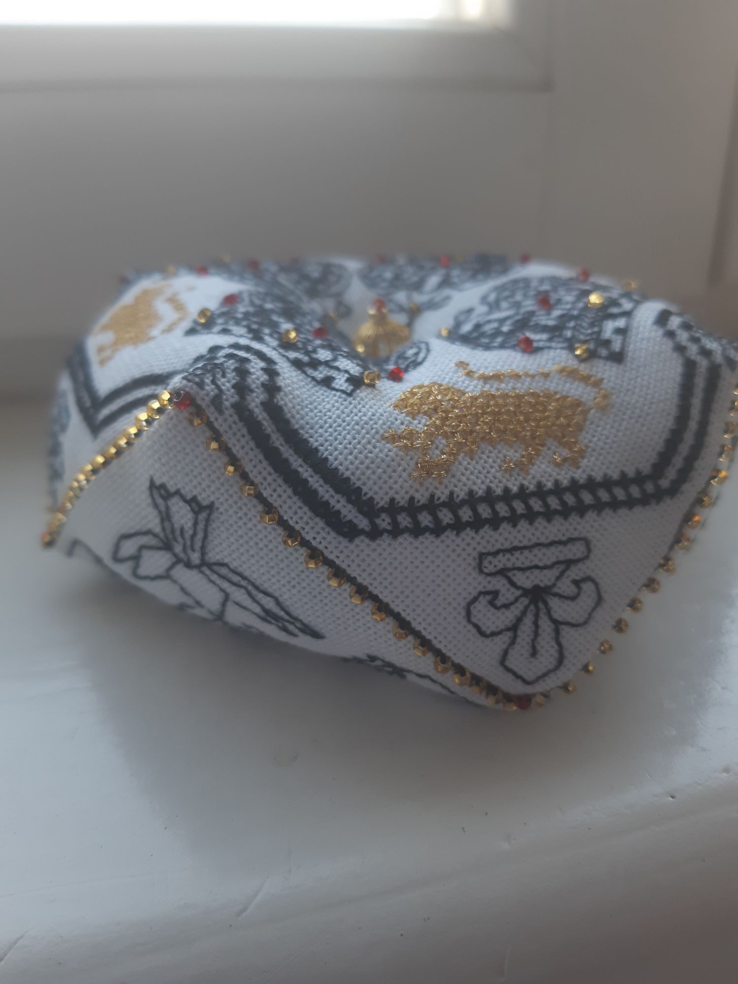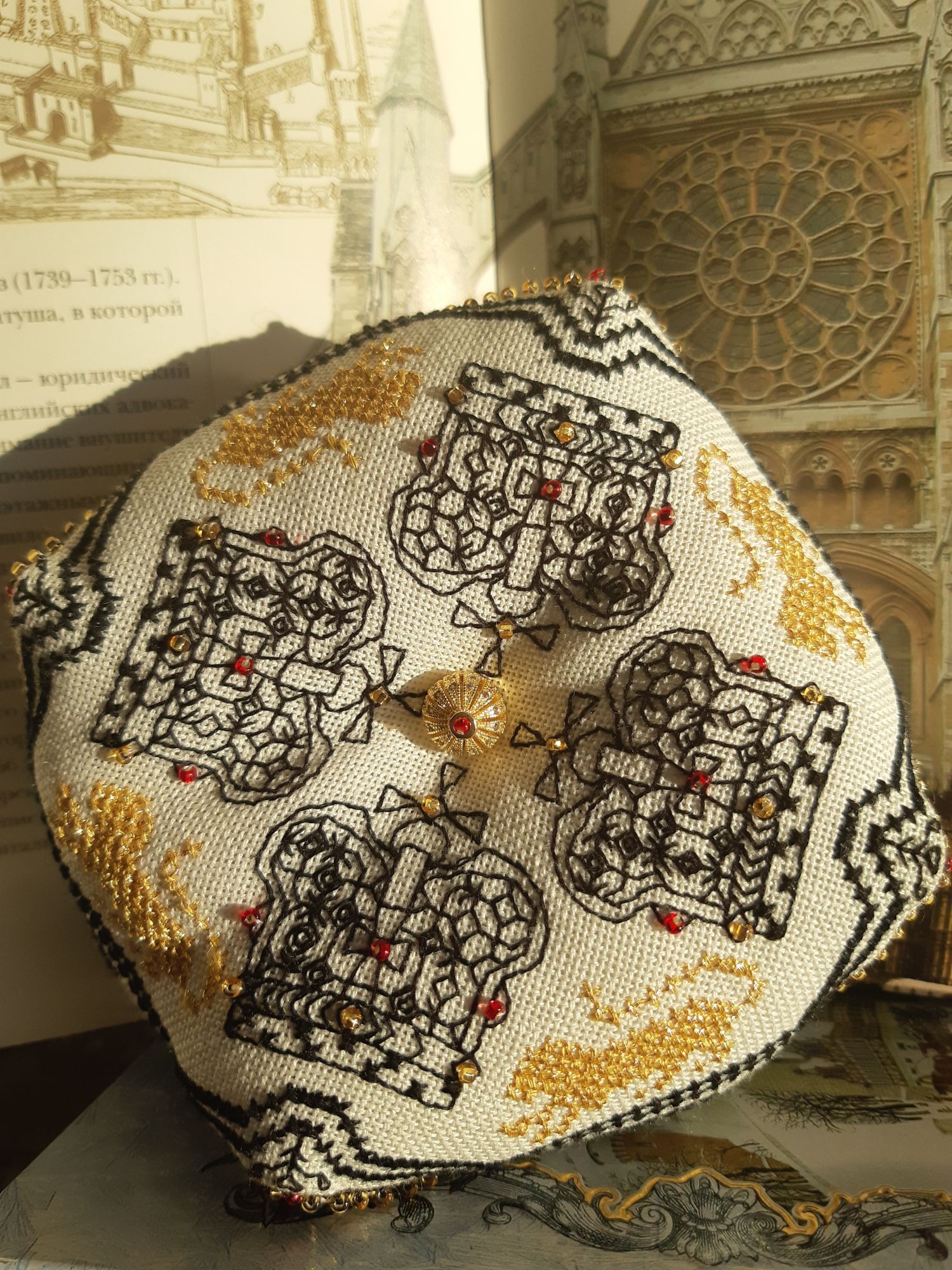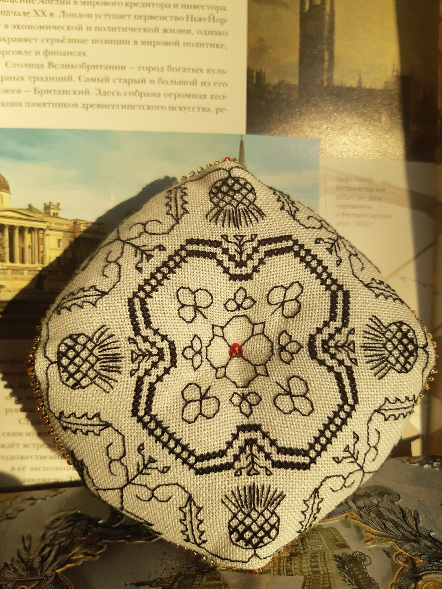 20 июня 2021 10 часов назад, tessykat сказал(а): Необычные вышивальные техники/ Не крестик Италия подарила миру как минимум две очень интересные вышивальные техники - ассизи и барджелло, чем не повод поговорить о необычных вышивках))) Есть ли среди ваших готовых работ или процессов вышивки не крестиком или с применением необычных техник/видов стежков? Если, да - расскажите немного о них, и конечно же покажите их Если нет, поделитесь есть ли подобное в ваших планах или почему не будете вышивать ничего подобного Сроки проведения 20- 30 июня, данное задание приносит 1 балл в копилку У меня есть работы в технике блэкворк и шовчики. Было интересно попробовать. Шовчики - потому что очень понравились разработки. Вышились на удивление несложно, только были проблемы с закреплением нити на равномерке (взяла беломерку), поэтому делала много протяжек, что тоже заставляло думать, чтобы минимизиррвать просветы. И пришлось изобретать способ делать фрузелки (на головке лука) так, чтобы они не проваливались сквозь ткань. Проложила на изнанке вспомогательную нитку и "усаживала" фрузелки на нее. Это схемы из журнала, увиденные, емнип, здесь на форуме. Подробности есть в подписях к работам. На этих фото не очень видны сами шовчики, но все подробно есть в процессах. С блэкворком получилрсь странно: я обычно люблю четкий графический рисунок, бэк делаю с удовольствием, поэтому не сомневалась, что блэкворк понравится. Но что-то пошло не так Мне очень понравился результат, а процесс местами утомлял Это бискорню "Великобритания", подробности тоже в галерее. На двух сторонах - геральдические символы Англии (лев и лилия), Шотландии (чертополох), Уэльса (нарцисс) и Ирландии (клевер). Ну и короны Подарила подруге-коллеге, учителю английского. bridgit, tessykat, Вега и 10 других сказали спасибо Поделиться сообщением Ссылка на сообщение