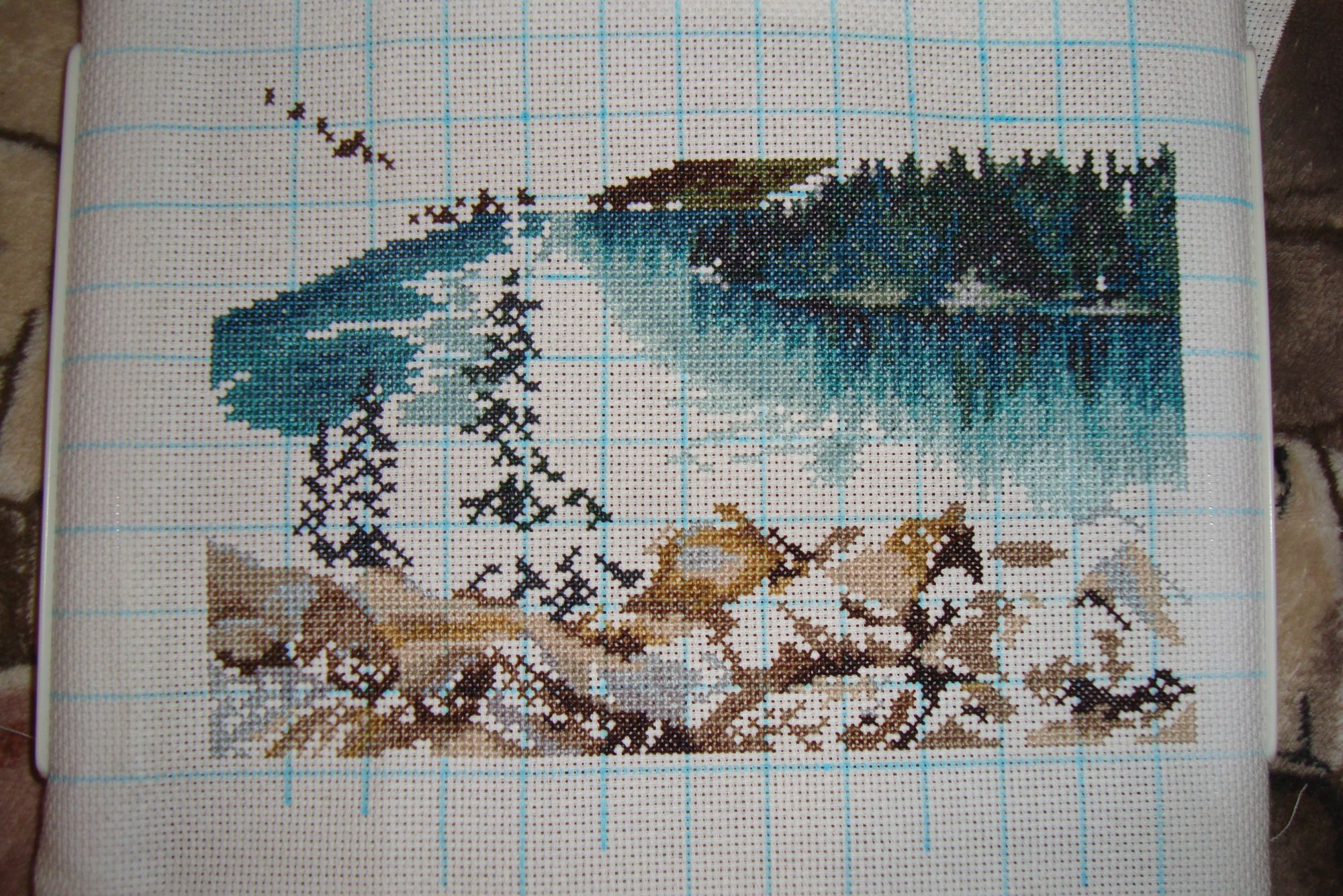19 августа 2021 Вышивальное задание месяца. Вариант 3. Вышивка по фото Вариант для тех, кому по душе подбирать к своему процессу фото в похожей цветовой гамме))) Великобритания ещё и страна, где на протяжении многих веков в жизни общества важную роль играла аристократия. А у каждого аристократического рода есть свой герб. Вам нужно найти фото какого-либо герба, немного рассказать об семействе, которому он принадлежит и вышить 1000 крестиков оттенками приблизительно такими же, какие есть на выбранном фото. Итак, я выбрала герб герцогини Сассекской. она же Меган Маркл. Ну наверное все знают, что в 2018 году младший сын принца Чарльза, наследника (до сих пор!) английского престола и принцессы Дианы Гарри женился. Женился не на аристократке, а на простой девушке, к тому же американке и актрисе - Меган Маркл. Конечно же никаких дворянских корней у нее не было. Но по статусу жены принца ей были положены и титул, и герб. Поэтому она стала герцогиней Сассекской и специально для нее Геральдической палатой Великобритании был разработан вот этот вот герб. Голубой фон щита – это олицетворение Тихого океана у побережья Калифорнии. Два золотых луча, пересекающие щит, символизируют всю ту же солнечную Калифорнию, родной штат Меган. А три пера – это метафорическое изображение коммуникации и силы слова (возможно это намек на каллиграфию, которой Меган зарабатывала себе на жизнь в первые годы после университета, и которую она считает «утраченным искусством»). Левая часть щита цитирует щит принца Гарри и содержит символы правящей королевской семьи: три английских льва, ирландская арфа и шотландский лев. Поле под щитом усеяно золотыми маками (официальный цветок калифорнийского штата) и зимневеллом, произрастающем в Кенсингтонских садах. Увенчан же щит короной, украшением которой стали четыре геральдические лилии, стилизованные листья клубники и два креста. Такую корону возлагают на детей наследника престола с 1917 года, по Королевскому указу. Мой процесс из плана с этими цветами - "Озеро Морейн" soln33, Anneti, korund и 7 других сказали спасибо Поделиться сообщением Ссылка на сообщение