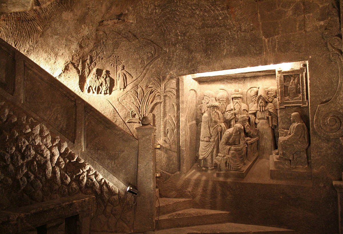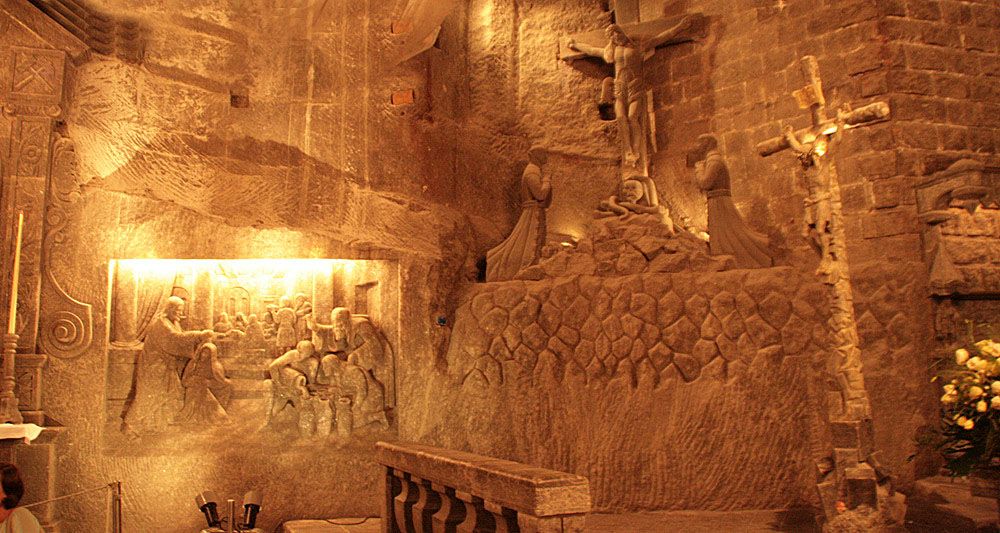 9 ноября 2021 Экскурсия по Польше №1 Шахта Величка. В 30 минутах езды от Кракова находится небольшой городок под названием Величка. Ежегодно сюда приезжают 1,2 млн. человек, чтобы увидеть древние соляные месторождения (копи), признанные ЮНЕСКО объектом всемирного наследия. Уникальность велических копей заключается в том, что добыча соли велась здесь непрерывно, начиная с XIII и вплоть до середины XX века. За 700 лет шахтёры прорыли под землёй 9-ти-этажный город с системой коридоров и камер общей протяжённостью 300 км. Для посещений туристами открыты лишь 3,5 км, но и этот участок даёт исчерпывающее представление о том, как развивались в Европе технологии добычи и переработки соли. О начале деятельности этой шахты и соледобычи я нашла две истории. И связаны они с именем королевы Кинги. Первая. Польский князь Болеслав Стыдливый подарил своей невесте, венгерской принцессе Кинге, обручальное кольцо, но она немедленно выбросила кольцо в соляную шахту в Венгрии. На следующий день после венчания она велела выкопать яму в городке Величка неподалеку от Кракова. В земле обнаружили соляную глыбу, а в ней – о чудо! – то самое кольцо. «Вот мое приданое, – сказала принцесса Кинга, – здесь должна быть соляная шахта». Оказывается, молодая княгиня желала, чтобы ее муж и их общая родина процветали, однако на территории Польши не было месторождений соли, поэтому шахта, полученная в приданое, была перенесена из Венгрии. Каким образом? С помощью высших сил. С этого момента соль в Польше стала доступной для всех, даже для самых бедных граждан, за что принцесса Кинга заслужила любовь и уважение своих подданных. Впоследствии Кингу назвали святой, в ее честь в обычной соляной пещере создали и уникальный дворец из соли, и неповторимый соляной собор. Ну и вторая, более прозаическая - о том, что принцесса просто потеряла кольцо в районе Велички и в поисках его слуги перекопали все вокруг. И наткнулись на месторождения соли. Главную гордость Велички составляют часовни, скульптуры из соли и подземные озёра — вместилища соляного концентрата. Например, вот в этом зале все сделано из соли - начиная от паркета и заканчивая люстрами Горняки были очень набожным народом, поэтому создавали храмы и часовни под землей, чтобы в любой момент можно было преклонить колени перед Святым ликом. До наших времен сохранилась часовня Святого Антония, созданная в конце XVII века в огромной соляной глыбе. Она знаменита своими необычными скульптурами Распятого Христа, Богоматери с младенцем и, конечно же, самого Антония. Особого внимания заслуживает единственный в мире храм, созданный на такой впечатляющей глубине (101 м) в далеком 1895 году в одном из образовывавшихся гротов и названный в честь принцессы Кинги. В этой уникальной церкви все сделано из каменной соли, начиная с паркета и заканчивая уникальными барельефами и скульптурами, алтарем и невероятной красоты соляными люстрами. Этот необыкновенный храм до сих пор проводит праздничные литургии, а молодожены стремятся обвенчаться именно в нем. Костел Кинги действующий. По воскресеньям здесь проводят стандартную имшу, венчаются новобрачные и крестят детей. К слову о бракосочетании, жених и невеста должны преодолеть весь путь рука об руку. Не споткнуться. Не упасть. И это сложно. В шахтах очень скользко. много переходов, озер и соляных наростов в