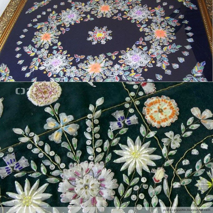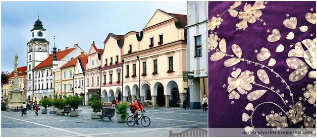 26 декабря 2021 ЧЕХИЯ 2. Вышивка рыбьей чешуёй. Вышивка рыбьей чешуёй традиционна для Южной Чехии. Центром, из которого этот вид вышивки распространился по близлежащим районам, является город Тршебонь. Город Тршебонь и его окрестности, считается местом разведения самого правильного карпа, в 2007 году получившего охранную печать Евросоюза "Защита географических указаний и гарантии традиционных особенностей в Европейском союзе". Самым старыми рыбными прудами в Тршебоньской области являются Бошелицкий пруд (основан в 1355 году) и пруд Дворжиште (основан в 1367 году). Пик развития рыбного хозяйства в Тршебони пришёлся на XVI век, когда под руководством двух замечательных специалистов, Штефана Нетолицкого и Яков Крчина, во владениях могущественной семьи Розенберг строилось множество прудов и каналов. Сам тршебоньский карп был выведен позднее, в XIX веке Йозефом Шустой, администратором Тршебоньского панства у княза Яна Адольфа II Шварценберга. Шуста занимался племенной работой и вывел новую породу рыб, которую он назвал "тршебоньский карп".. Сейчас в Тршебоньском районе функционирует 16 рыбных прудов, а тршебоньский карп явлется обязательным блюдом на Рождественском застолье в Чешской Республике. Считается, что вышивка рыбьей чешуёй возникла в Вене в XIX веке, где экзотическим материалом украшали сумки и наволочки, а потом чуть позднее перебралась в Южную Чехию. В отличие от австрийцев чехи использовали чешую не только для отделки аксессуаров, но и для народной одежды.. Для вышивки используются кроме чешуи карпа, также чешуя щуки, окуня и судака. У каждой из них свои особенности. Например, чешую окуня зазубренная, поэтому из неё обычно ничего не вырезают. По размеру самая крупная - чешуя карпа. Из неё можно вырезать всякие интересные формы, сердечки, рыбки, лепестки и пр. Перед началом работ чешую следует подготовить: промыть, очистить щёткой от слизи, высушить. При мытье нельзя использовать химические средства. Только мыло и крахмал. В противном случае чешуя потеряет свою эластичность и станет хрупкой. Потом в чешуйках проделывают дырки и приступают к вышивке. Нитки следует выбирать крепкие, которые легко не порвутся от трения с краями чешуек. Особенностью техники вышивки является использование бусин, которые предохраняют нитку от перетирания об острые края чешуек.. В качестве основы для вышивки обычно берут тёмную или яркую ткань, на которой хорошо будут видны белые чешуйки. MiraMargarita, Ксен40, tessykat и 12 других сказали спасибо Поделиться сообщением Ссылка на сообщение