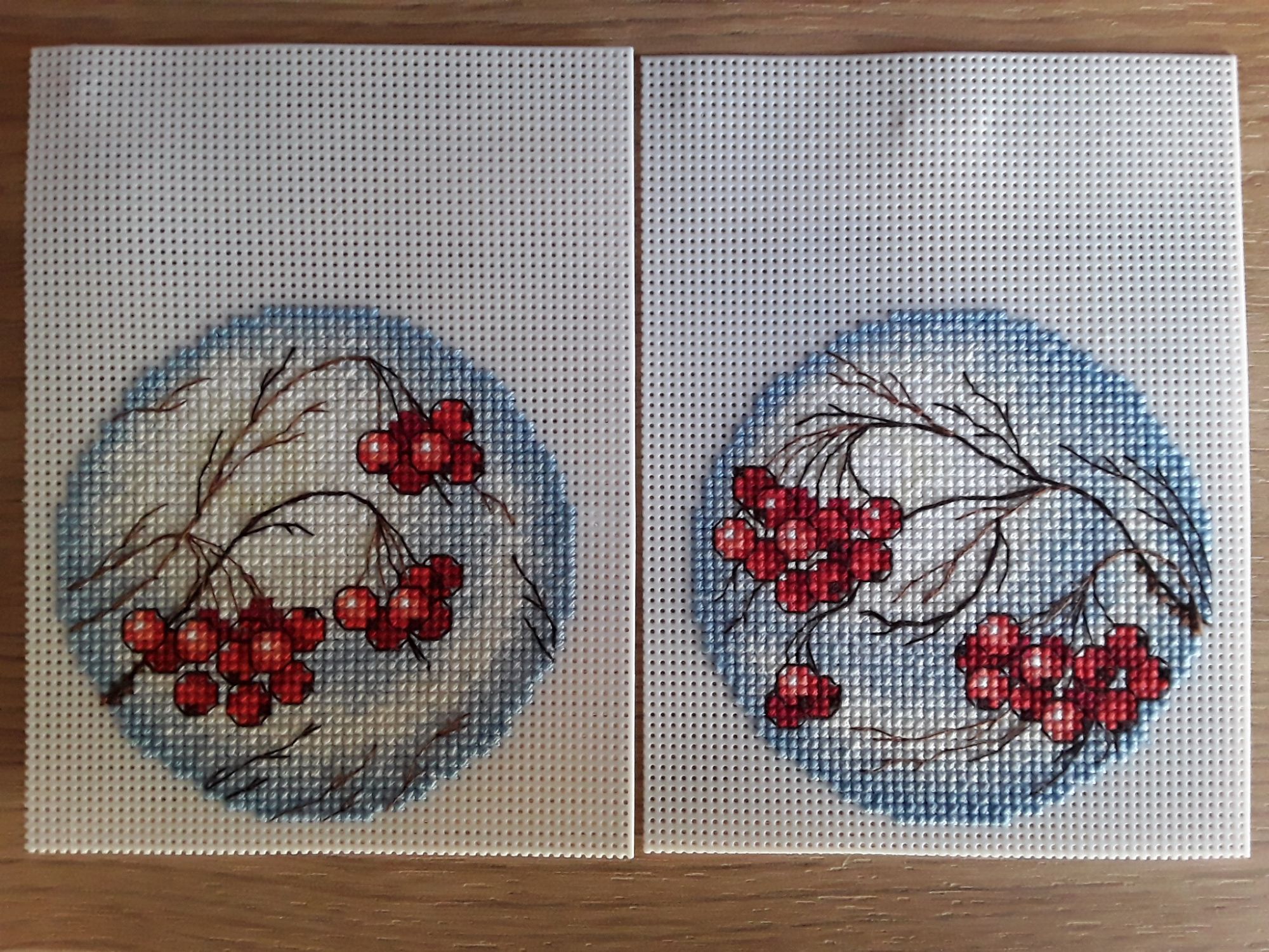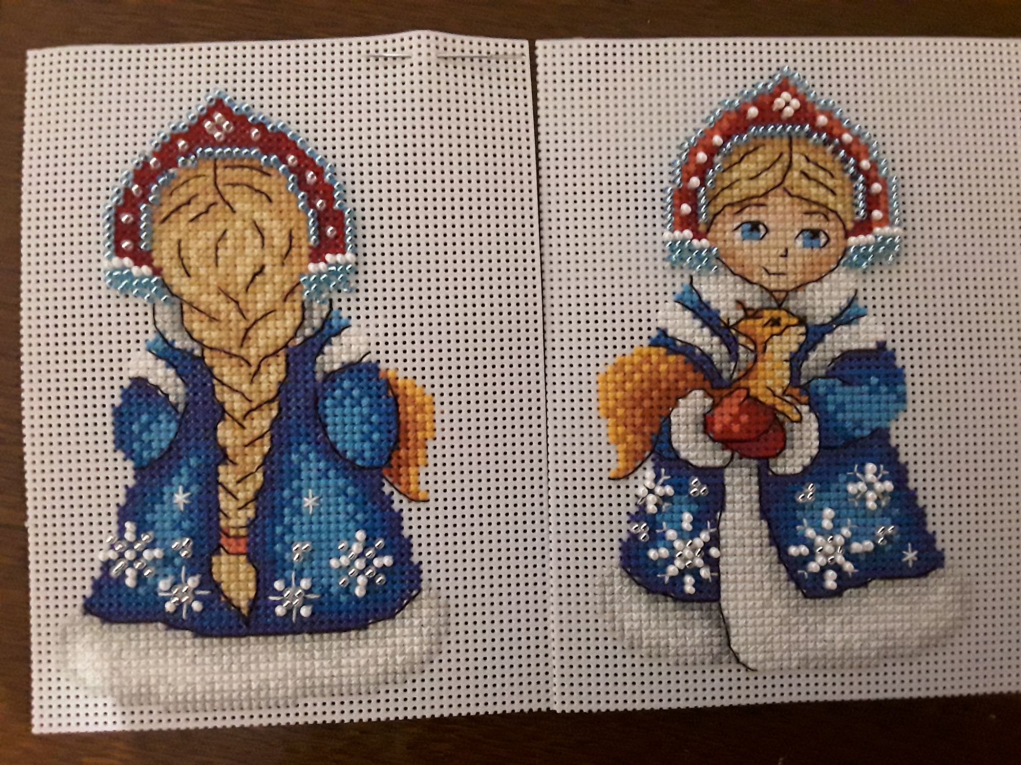26 декабря 2022 Всем добрый день. Накопила немного для отчета. За три месяца после последнего показа моей Девочки вышила не так и много и личико крупным планом (в гаечку).Это потому, что много отвлекалась на маленькие работы. К Новому году вышила и собрала Снегурочку от МП Студии. А то Деду Морозу,которого вышила в прошлом году,одиноко как то одному на елочке. (в гаечку)... и еще Морозную рябину от МП Студии Стоял выбор между этим шариком и еще одним от МП Студии,,Узоры зимы,, Конечно, хотелось бы оба вышить,но не успевала по времени. А рябина зимой-это так красиво. Здесь при сшивании проложила небольшой слой синтепона и шарик получился чуть-чуть объемный. Понравился счетный бэк,сразу обводила им ягодки,а когда веточки вышила,вообще картинка заиграла. Полюбила я эти игрушки на ёлку ,чего никак от себя не ожидала. И на пластике вышивать нравится. Так называемая смена деятельности....Ёлку еще не поставили,позже сделаю фото моих творений в деле(на елке).... Хозяйка смешных зверей, lenning, Аринесса и 16 других сказали спасибо Поделиться сообщением Ссылка на сообщение