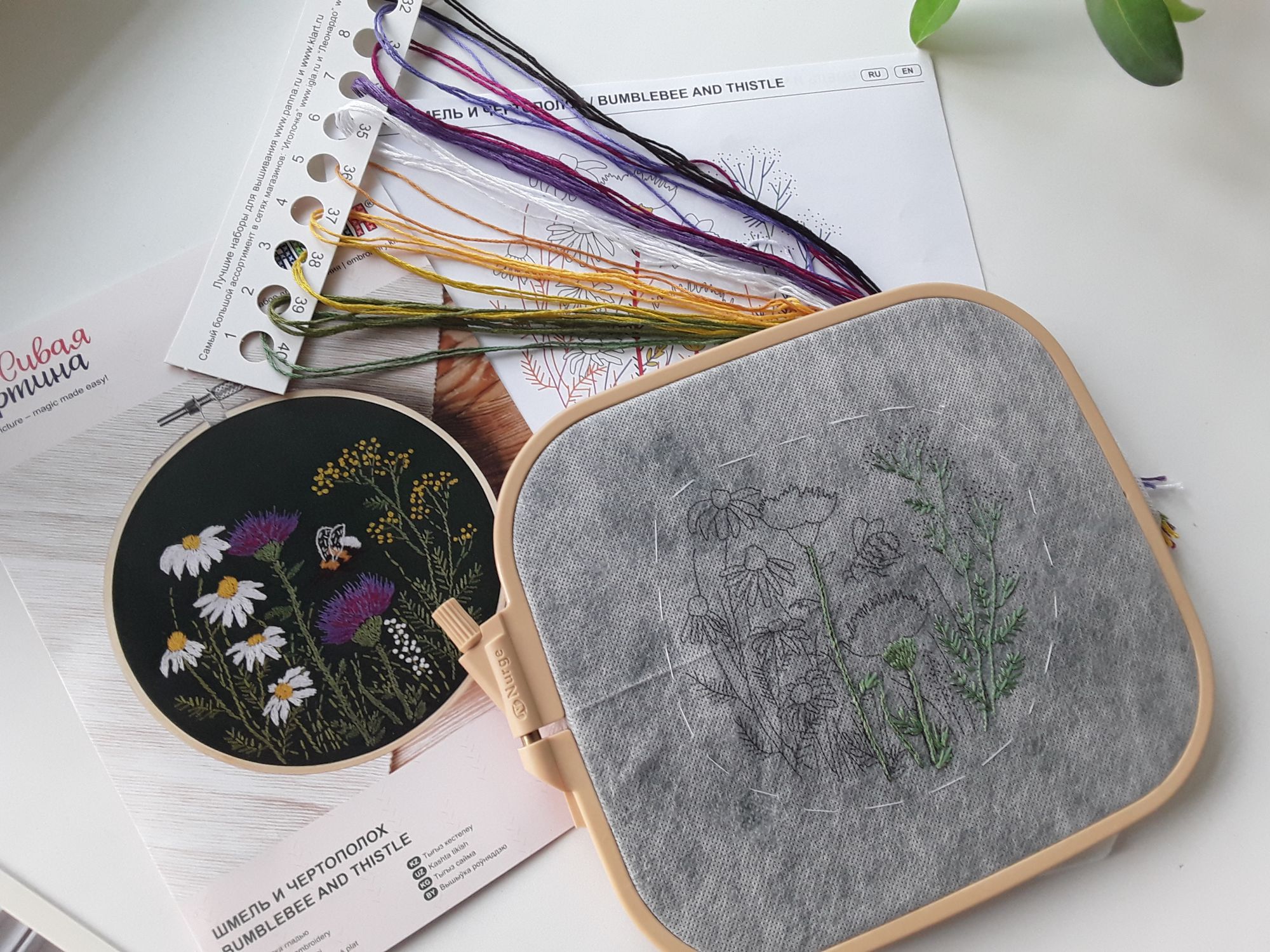 7 октября Всем добрый вечер....чтоб не копить фото для процессов,да и не забыть какие то, решила написать небольшой отчет. Во первых, все таки попробовала гладь. После мешанины в сирени и ужасной схемы переключилась на другое.В закромах три набора гладью ,выбор пал на небольшой и симпатичный наборчик ,,Шмель и чертополох,, от PANNA. В нем ткань красивого темно зеленого насыщенного цвета (написано,что хлопок,но далеко не так) и водорастворимый флизелин. Перед вышивкой прочитала и посмотрела про технику ,,гладь,, Стежки не совсем ровные, так что не судите строго....открываем и сразу зеленим гаечку ... Продолжение ,,Аромата сирени,, сейчас уже приспособилась и к равномерке, и к цветной мелкой схеме... Еще решила начать свою давнишнюю хотелку...НОВАЯ ГАЕЧКА ,,Моя прекрасная ёлка,, от Парижских вышивальщиц. Сложно было найти схему,спасибо за помощь Марины mag ...равномерка Линда,нитки ДМС, процесс просто песня,тоже шьется как отдыхалочка от сирени. И немного уже осенних цветочков с дачи мое рабочее место с розочками. А пока мы были летом на даче,коллизия разрослась до таких размеров и цикламен, подаренный на 8 марта , который жил с нами на даче, начинает выпускать цветочки ... на этом всё....вышиваем дальше и ждем конкурс... mag, Забава_, Tatiana Ch. и 11 других сказали спасибо Поделиться сообщением Ссылка на сообщение