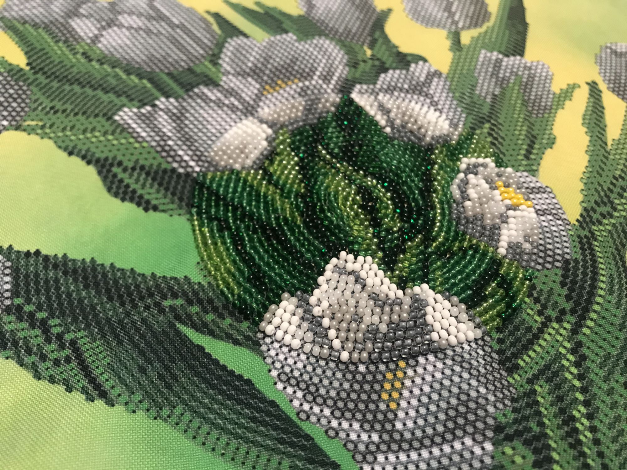 4 июня 2021 1 час назад, Узорчик сказал(а): Всех поздравляю с летом! Всем прогулок, желаемых поездок, отдыха на природе! Моё продвижение по тюльпанам бисером. Круги закончила крутить, теперь пойдут дуги. Очень нравится круговая техника, сразу такой объём появляется, хоть рисунок виден сразу на ткани. Хотя где-то, видимо, перетянула, волны есть. И по самой вышивке некоторые трудности есть, трудноразличимые цвета на принте бисеринок. Сначала это было сложно между двумя средними оттенками зелёного, но при определённом наклоне ткани приловчилась распознавать. А потом начались сами тюльпаны, и там вот между вторым белым и светло-серым только иногда при определённом свете угадываются оттенки. Сначала рассматривала на картинке с интернета, но она слишком маленькая для увеличения, потом решила наперёд записывать каждый ряд, когда хороший определённый свет (при чём, при дневном ярком тоже не распознаются ), но это вышло слишком долго, писала и рассматривала я дольше, чем вышивала. И решила проще к этому отнестись и на свой вкус вышивать теми цветами, которые повторяют предыдущий ряд, продолжают рисунок, или же как мне хочется, у нас же творчество, всё ж. Сфотографировала немного сбоку. Когда фотографируешь прямо сверху, на фото не сразу и понятно, что же там вышито. Получается просто ОЧЕНЬ красиво! А волны уйдут при натяжке! lovingberry, korund, katushka90 и 3 других сказали спасибо Поделиться сообщением Ссылка на сообщение