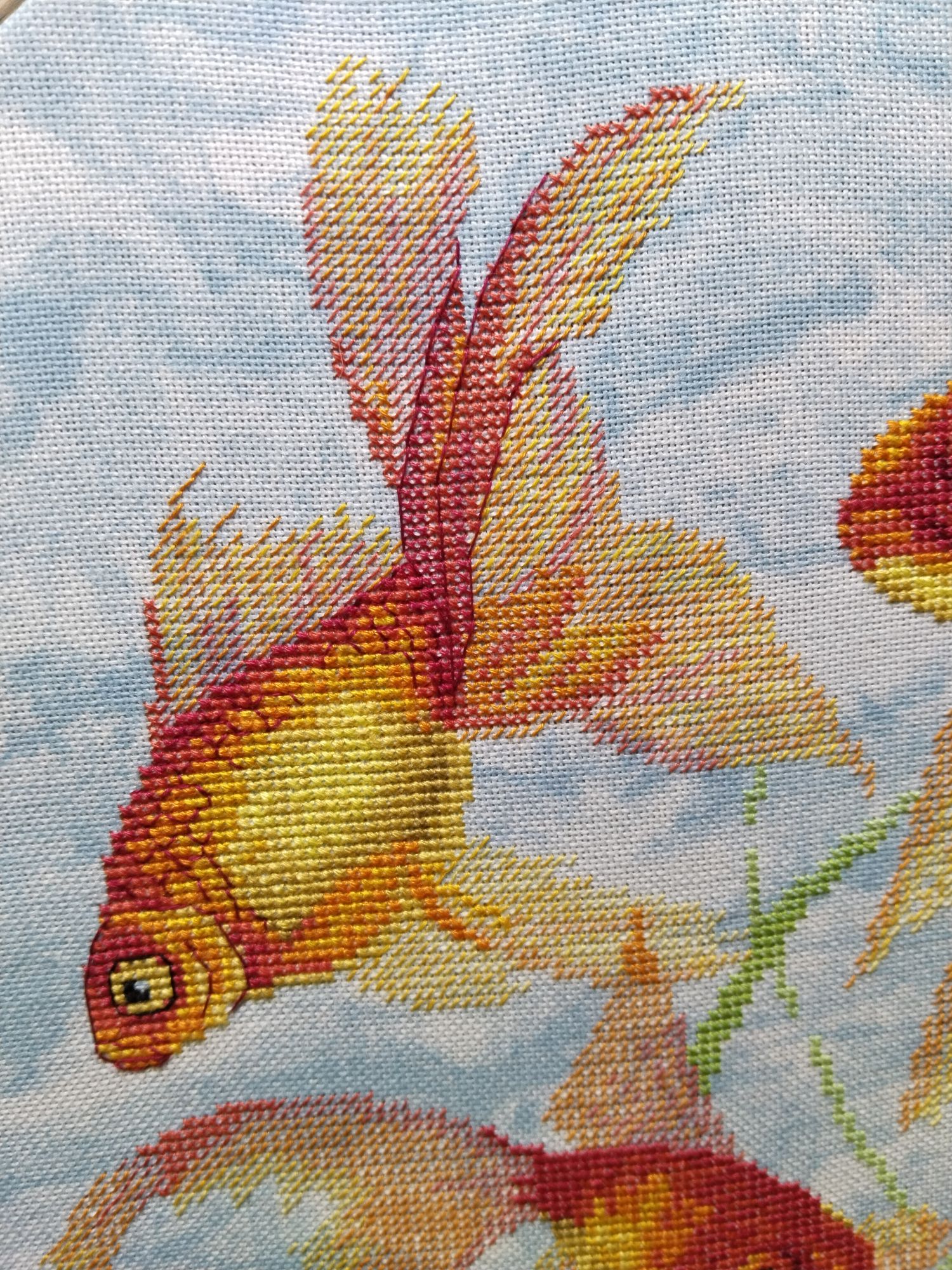 15 июля 2024 Том второй, свежий - старт и финиш. Тоже Панна, Золотые рыбки. 150х140 крестиков, 15 цветов, крест, полукрест, бэкстич. Вместо белой Аиды 18 взяла Мурано 5439. Уж мне эти хвосты! И чешуя! Но результат радует Путешественница, Marusya1978, АлёNка и 8 других сказали спасибо Поделиться сообщением Ссылка на сообщение