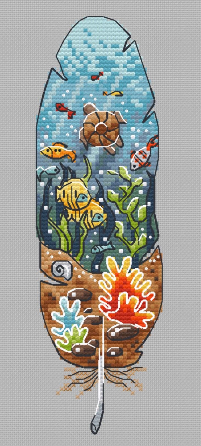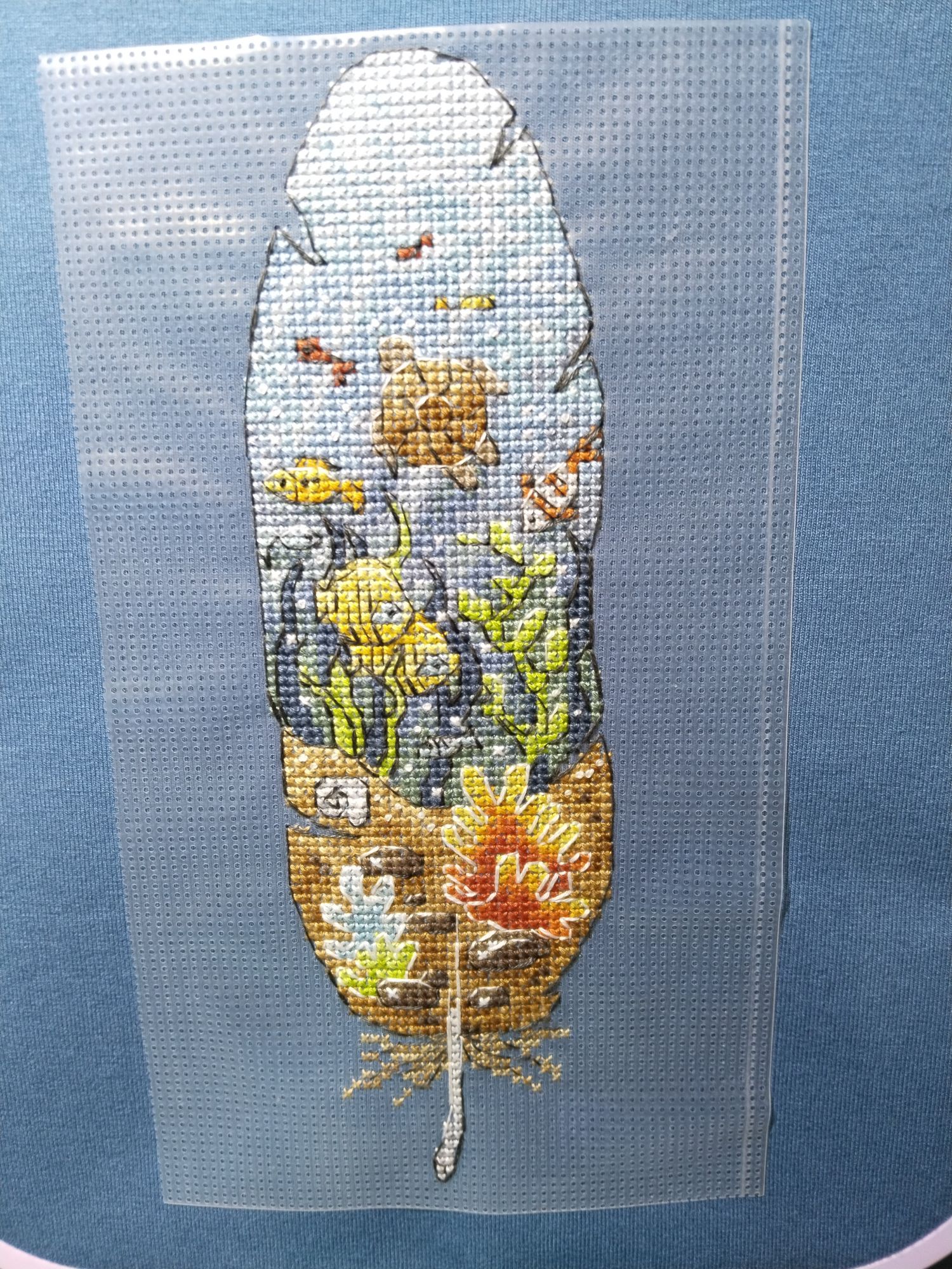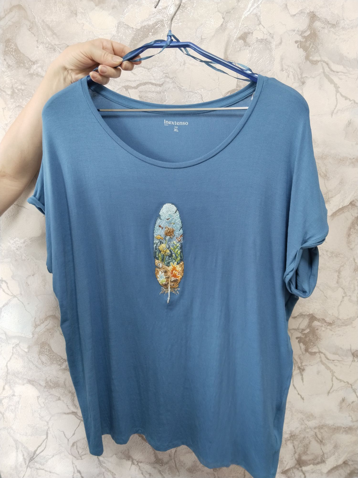 15 июля 2024 Том третий, подводный - старт и финиш. Схема Елены Митякиной "В воде". 32х106 крестиков, 29 цветов DMC + 2 бленда, крест, бэкстич, французские узелки. Вдохновившись примером Тани @vasilisa-1977, решила вышить это "перо" на футболке. Не скажу, что было легко - слишком тонкий трикотаж. Зато цвет подходящий ЕленаМ, OlkaY, Забава_ и 8 других сказали спасибо Поделиться сообщением Ссылка на сообщение