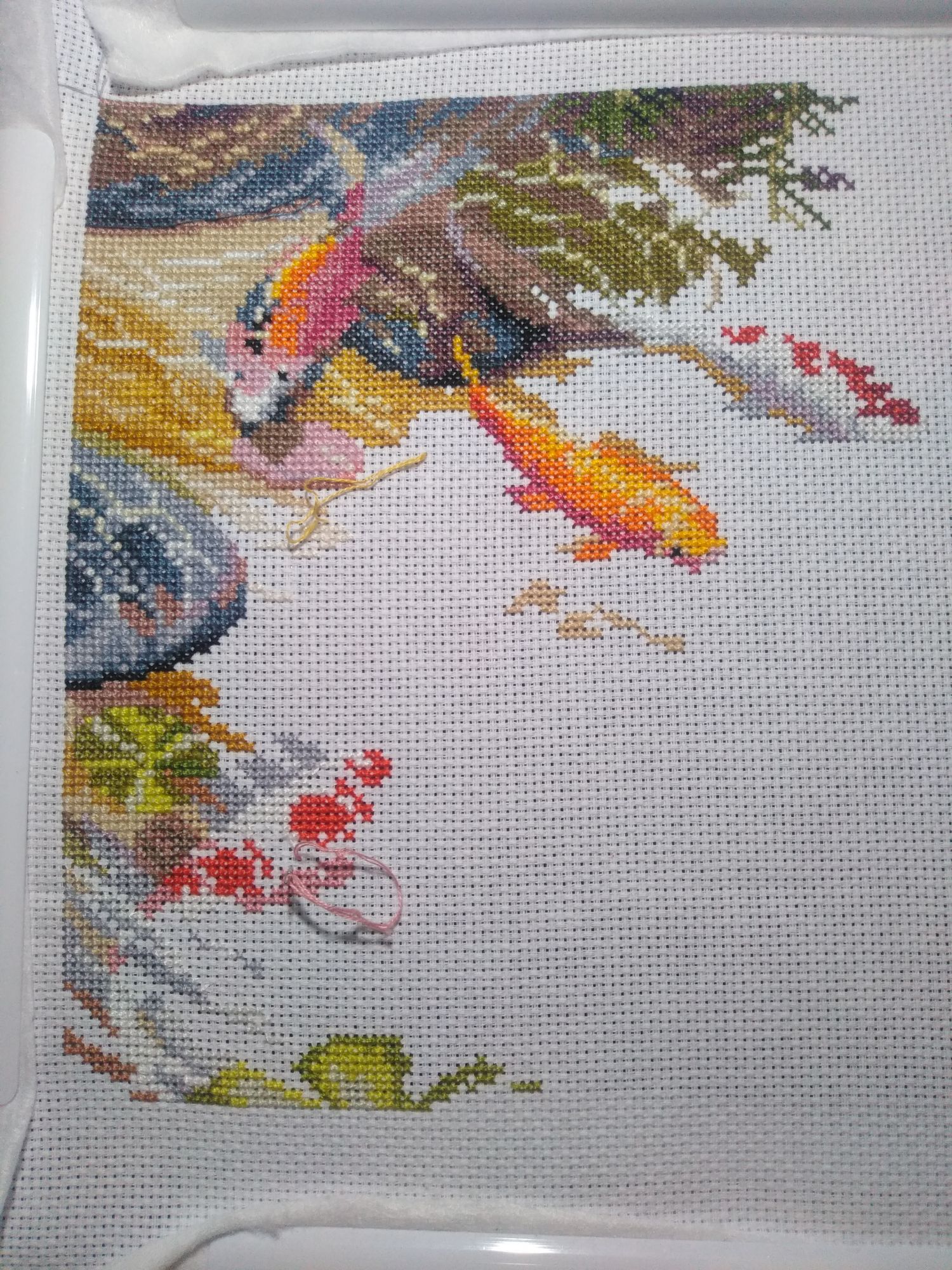 21 августа 2021 20.08.2021 в 09:04, Lucia-del-Umago сказал(а): Девочки, спасибо, очень приятно! Да, бисер меня заманил, взял хитростью - нить одна, а цвета разные И поэтому кажется, что всё легко и просто, и можно создать что-то своё... Ну а то что приходится пыхтеть изо всех сил - в этом есть своя прелесть По правде говоря, в свою следующую работу я тоже хотела добавить бисер, но передумала. Новый процесс, строго в соответствии с набором - Овен, Девять карпов Кои. На сегодняшний день вышито около трети аквариума Всем хороших выходных! Приятная картина, Валюш, и очень активное начало. Радостно, когда работа быстро прирастает и все интереснее разглядывать детали уже не на схеме и превью, а у себя Marusya1978, IrnKA, vasilisa-1977 и 2 других сказали спасибо Поделиться сообщением Ссылка на сообщение
