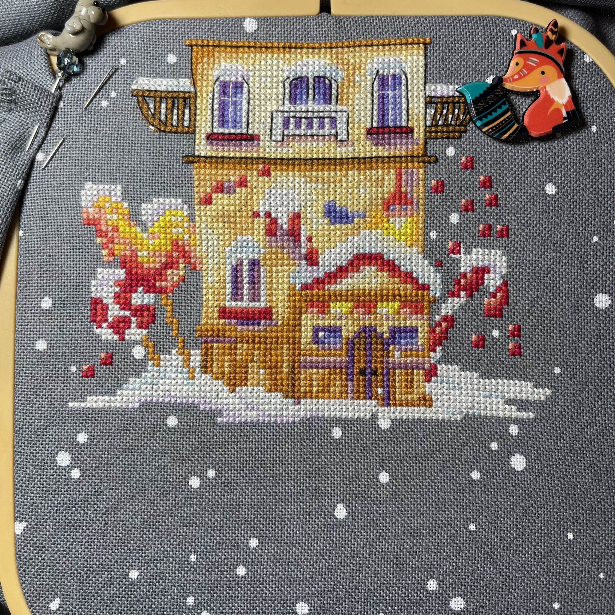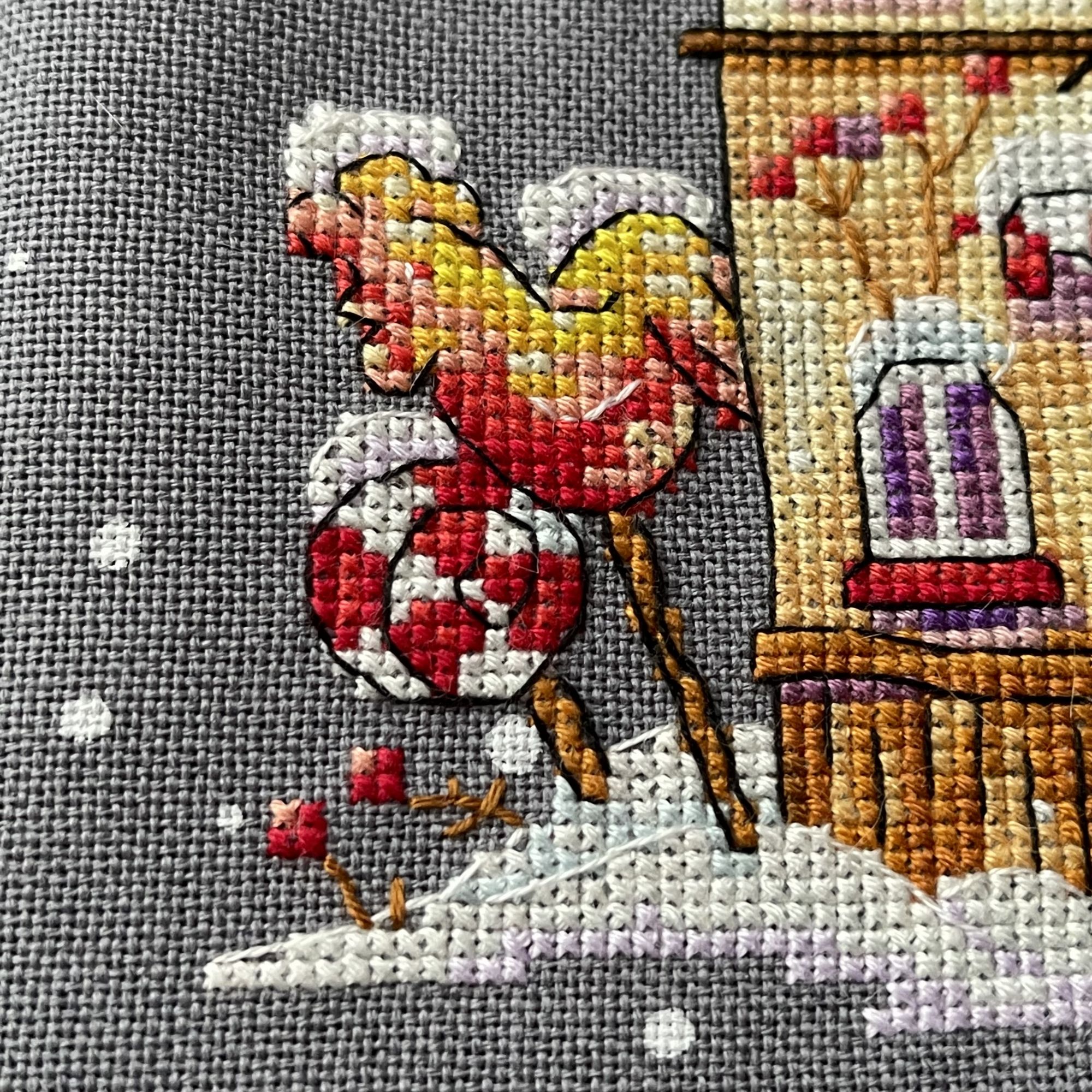 15 января 2022 Мои продвижения по процессам. Во-первых, я смогла-таки начать третий процесс, подаренный мне на Новый год- это Зимний домой от Мережки За 2 недели домик подрос на 2 этажа схема мне у мережки понравилась, читабельная. Я решила не перенабрать, т.к. значки хорошо читались. планшетки - фу… у Риолис вроде тоже планшетки, но удобные… с этими я порола раза 3-4. Потом перевесила нитки на дубко Во-вторых, я постирала свою рождественскую деревушку, потому что об дубовую канву резала пальцы. Особо она у меня не продвинулась, поковыряла ее немного и решила оставить до того момента, как не буду уставать как ломовая лошадь Ааа, происки, их я перед Новым годом тоже поковыряла. переделала надпись, в оригинальном наборе она в 2 нитки идёт и добавила кардинала и ещё птичку (т.к. я не сильна в этом - что за птичка не знаю ) а ещё надо обновить свои запасы… перед Новым годом рука дрогнула и я купила штук 10 авторских схем потом мне подарили несколько наборов на Новый год (не считая Мережки), года бы и запасы обновить. Блин, я становлюсь хомяком, хотя меня мои запасы тяготят.. Тепер надо отшивать быстрее Kattrielle, Грёза и IrnKA сказали спасибо Поделиться сообщением Ссылка на сообщение