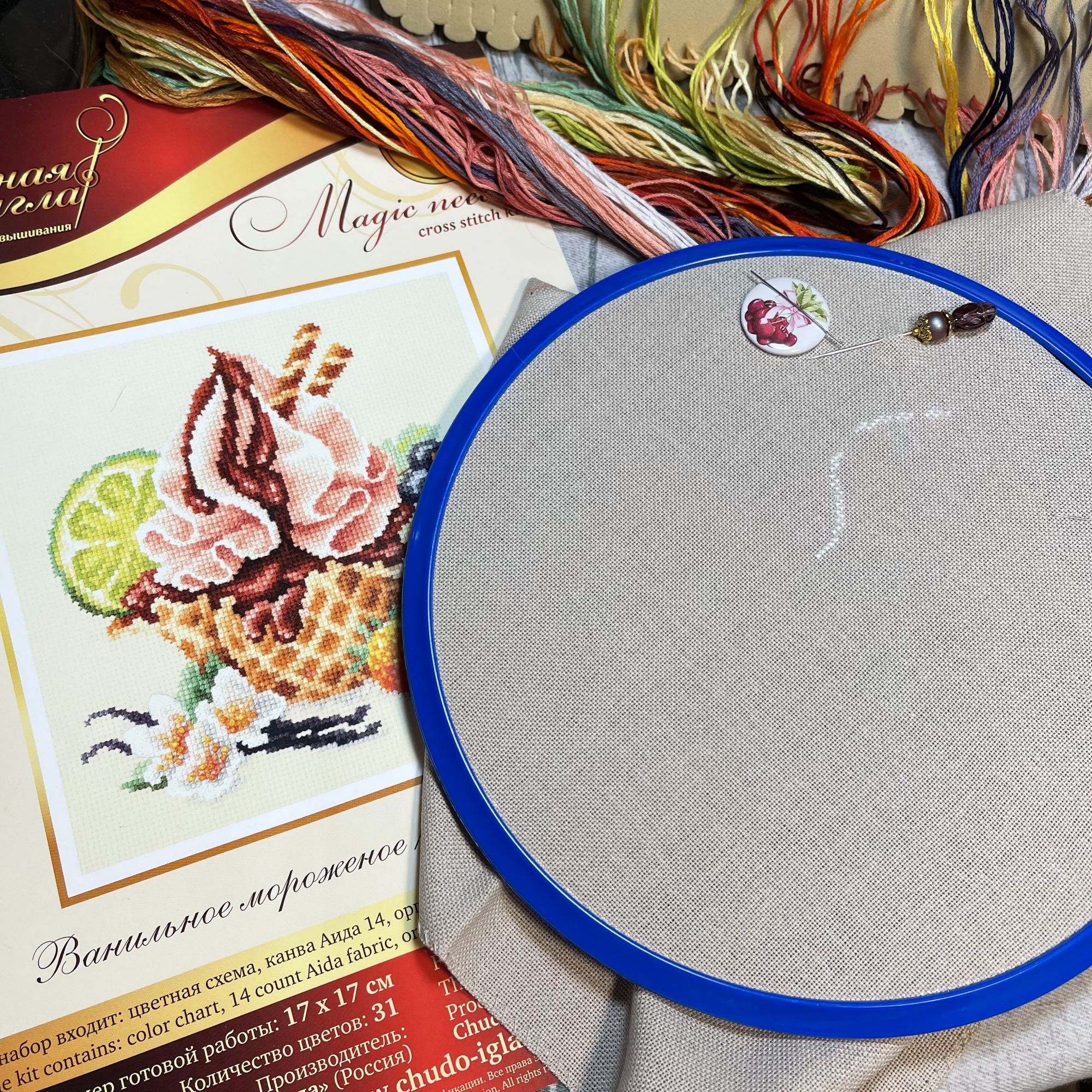 20 февраля 2022 На этой неделе закончила вышивать венок с птичками рождественскую деревушку перевернула верх ногами но на раме все равно не удобно ее вышивать я стараюсь. Больше половины готово ну и Новый старт - Чудесная игла «Ванильное мороженое». Перевешивала нитки на органайзер сегодня и там 31 цвет в работе 31… в итоге буду вышивать по перенабору. Схема не плохая, но 31 цвет и закрепки хоть перенабор облегчит мне отшив. И там больше 5 тысяч крестиков. это 3-я работа из цикла «когда-то в будущем это будет панно…». А пока это мой процесс выходного дня IrnKA, Хозяйка смешных зверей, Isinka и 3 других сказали спасибо Поделиться сообщением Ссылка на сообщение