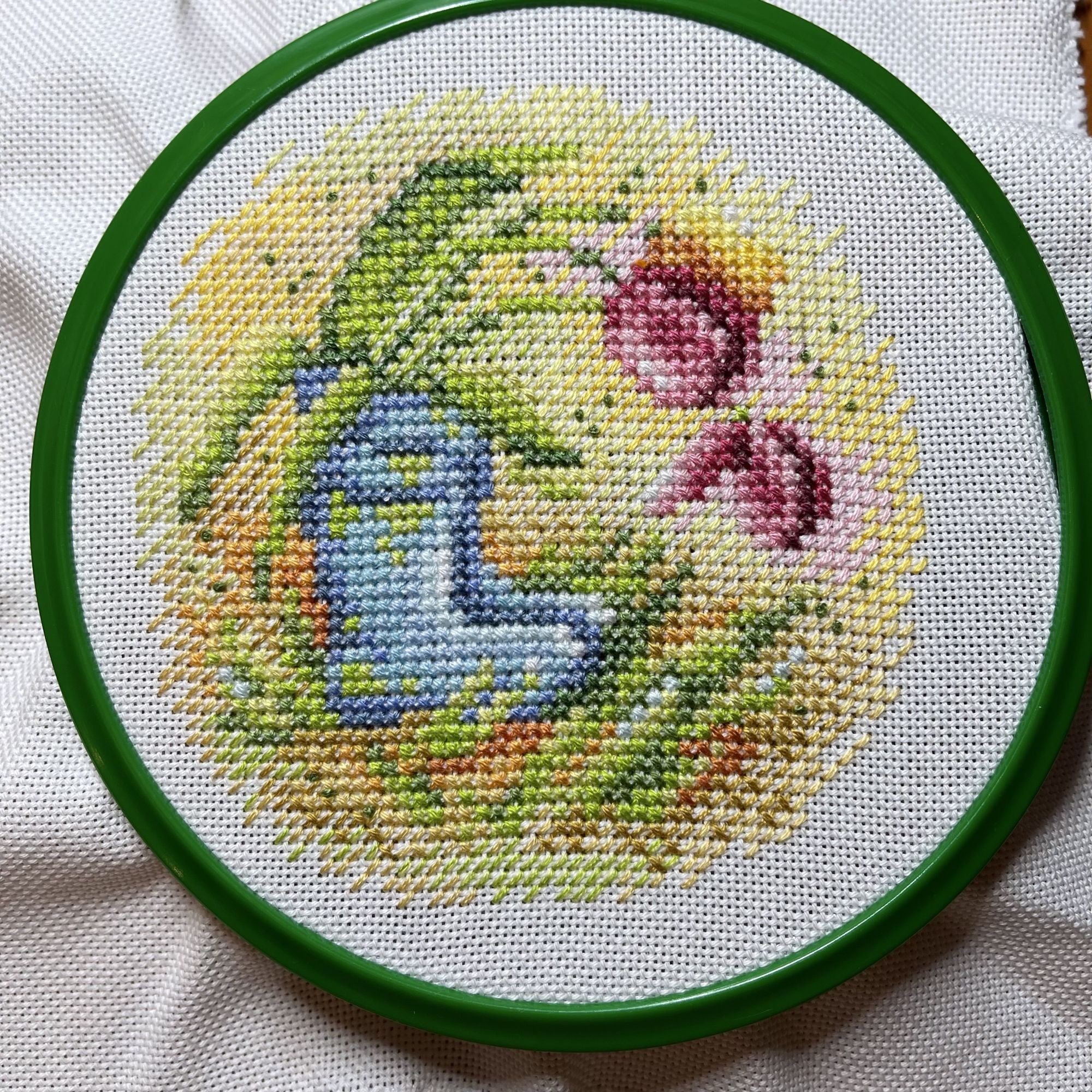 24 июня 2021 9 часов назад, Аксюта сказал(а): Когда вышиваешь не за один раз, а ковыряешь вышивку постепенно и фотографий больше получается. я там выше говорила, что к сирени зелёный цвет очень распределён по вышивке. Вот в обще я не люблю вышивать по цветам, но тут нитки как раз хватает почти на заполнение пространства. в итоге закончила полностью с зеленью и хочу сказать, что сирень идёт бодрен, чем сапожок. Я уже почти 50% сделала и приступила к сиреневым оттенкам Какой же хорошенький заборчик! И такие цвета классные, очень нежные и в то же время по-летнему яркие. 9 часов назад, Аксюта сказал(а): А вот венок от Dimensions 35028 Berry Wreath Welcome. Увидела его в прошлом году и не смогла пройти мимо. Вышиваю подбором на белфасте Сначала смущал приглушённый зелёный оттенок в ленте, распорола, нашла цвет из запасов дименшнс, который идёт по ключу. Получилось тоже самое. У ДМС этот цвет чуть зеленее, но на итоговый результат особо не влияет Очень красиво! Птичка загляденье, такая милашка. И очень интересный у тебя маячок для ножниц, ловец снов такой классный Аксюта сказал(а) спасибо Поделиться сообщением Ссылка на сообщение