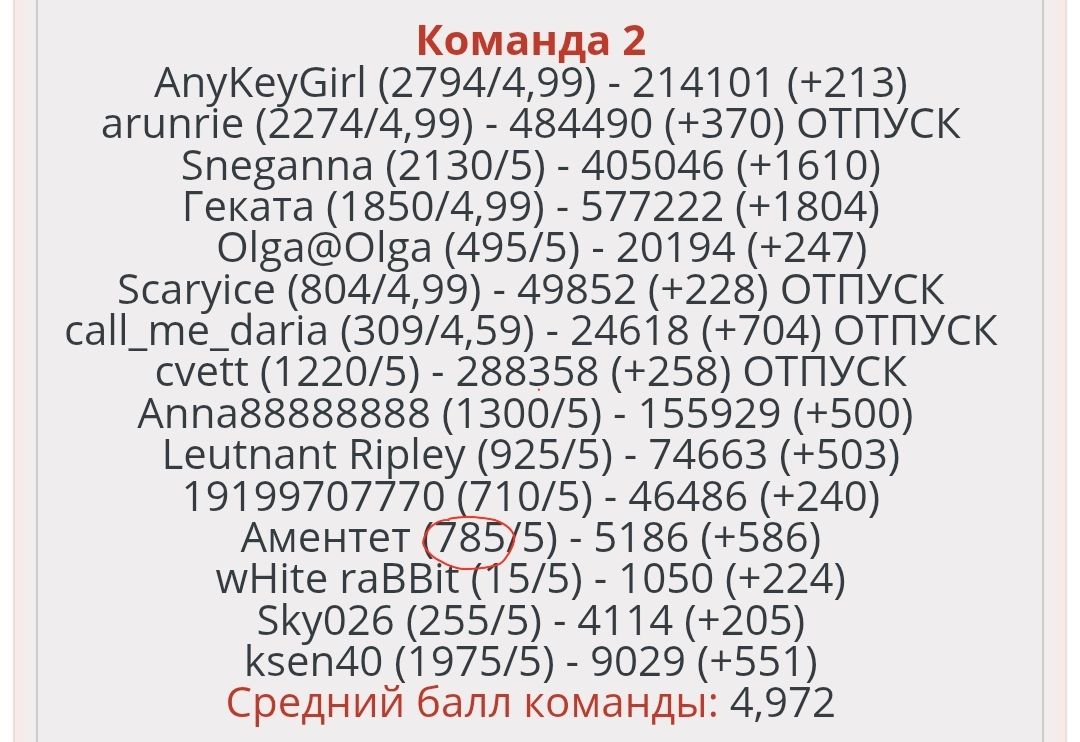 9 июня 12 часов назад, Natalie сказал(а): Девочки, еду в поезде - подсчитываю урывками, когда есть связь... Главное - успела списать ваши результаты - на следующей большой станции обновлю таблицу на сайте Фуух, со второй попытки удалось обновить результаты... tamara.34, Leutnant Ripley, Капитанская_внучка и 3 других сказали спасибо Поделиться сообщением Ссылка на сообщение
