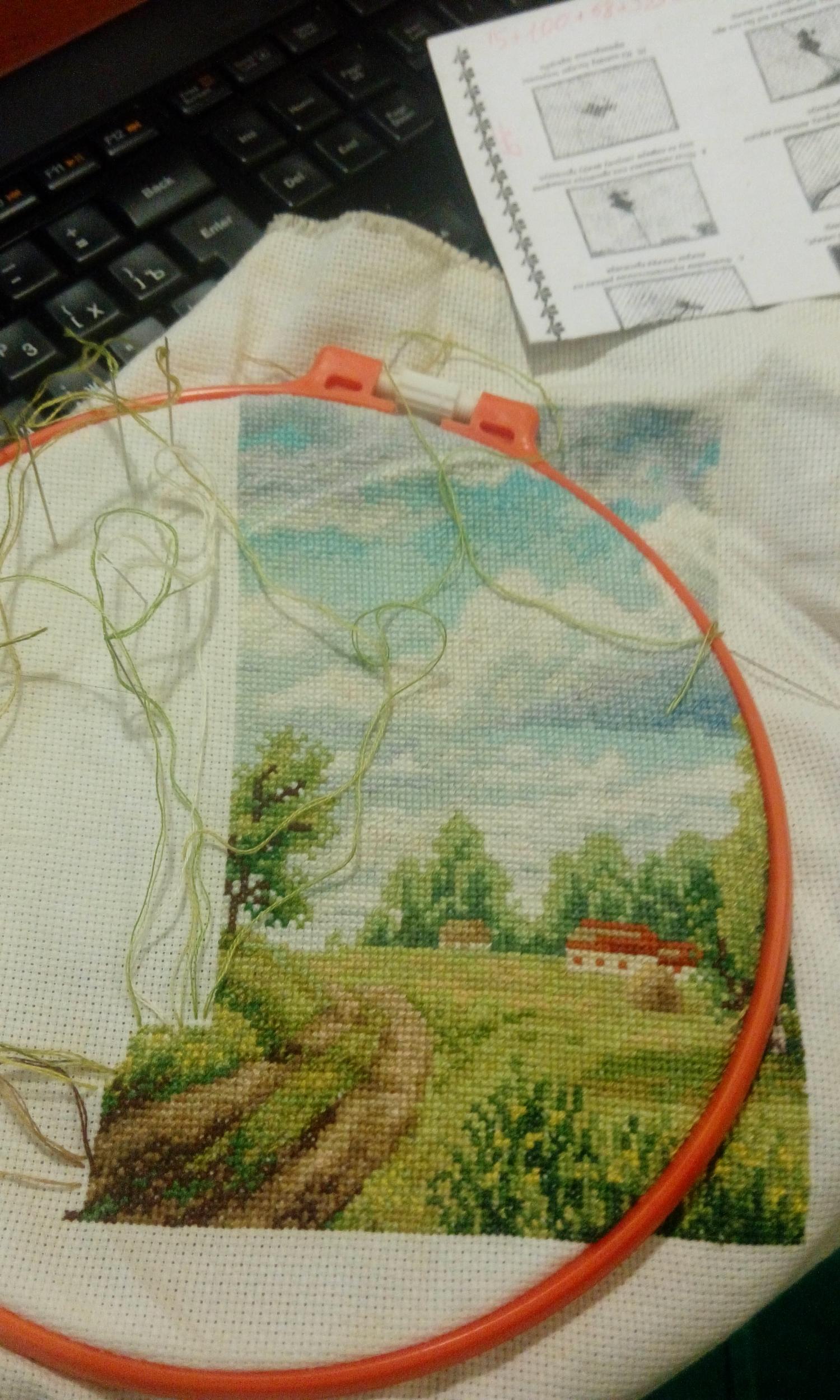 Сейчас от недостатка времени делаю так: намечаю кусочек для отшива, вышиваю, а потом считаю по схеме количество крестиков и записываю. А потом просто в конце все цифры складываю.
