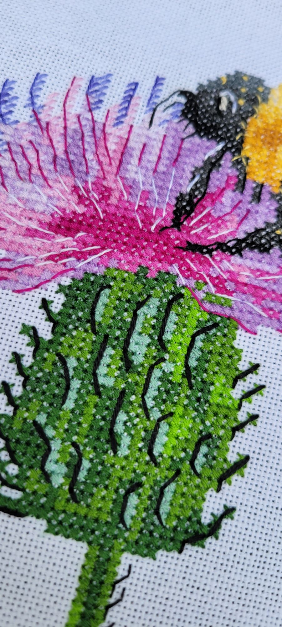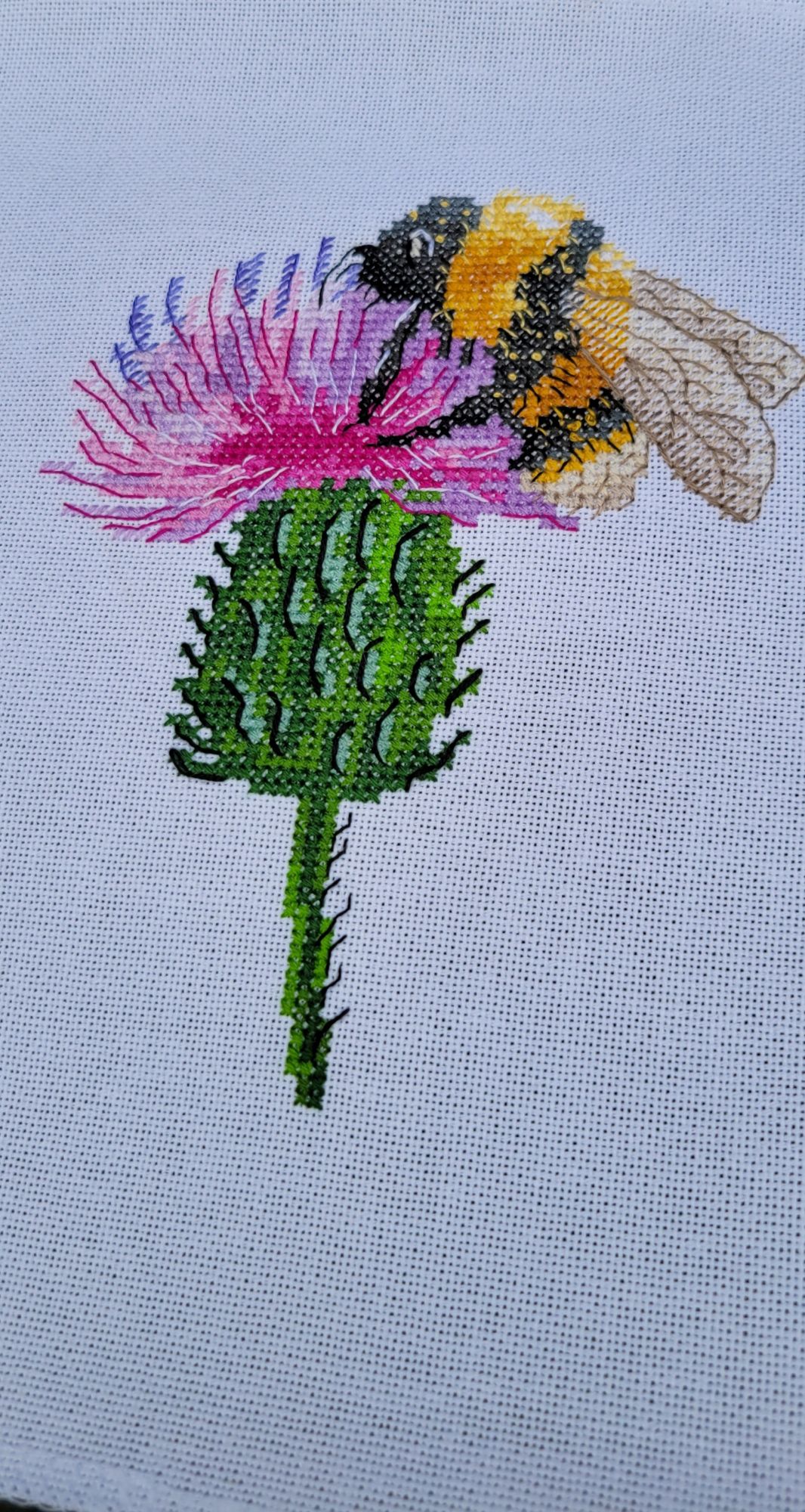 26 октября 2023 Добрый день! Вышила своего Шмеля в чертополохе. Получилась небольшая, но очень яркая вышивка. Вышивала на равномерке linda 27. Размер в крестиках 64х80, размер в сантиметрах 12х15, мулине dmc 28 цветов + 2 бленда. Крест, полукрест, счетный бэк, фрузелки. Приобрести схему можно в моей группе https://vk.com/ushkar_stitch Путешественница, kng230858, Чивава и 3 других сказали спасибо Поделиться сообщением Ссылка на сообщение