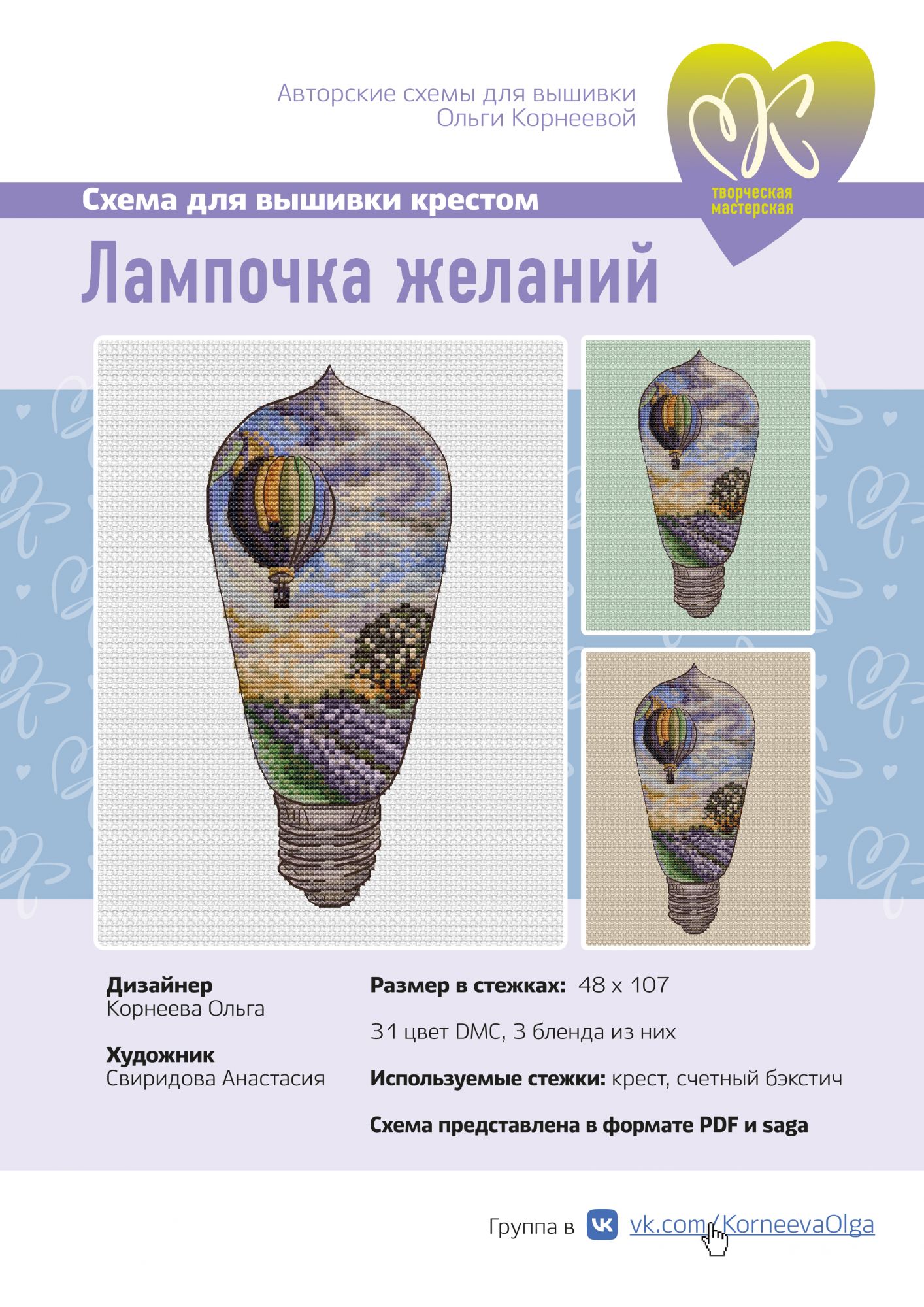 23 июля 2024 НОВИНКА Лампочка желаний https://vk.com/wall-209098873_2209 Загадала я одно желание, Его, отправив в солнечную высь, А вы родные, мне пообещайте: Друг другу помогать, беречь, любить!!! Схема "Лампочка желаний" по иллюстрации художницы Анастасии Свиридовой готова! Лампочка желаний Размер в стежках: 48х107, 31 цвет DMC, из них 3 бленда. Используемые стежки: крест, полукрест, счетный бэкстич. Схема представлена в формате PDF и saga monstrochka, kng230858, AlexandraOrlova и 2 других сказали спасибо Поделиться сообщением Ссылка на сообщение