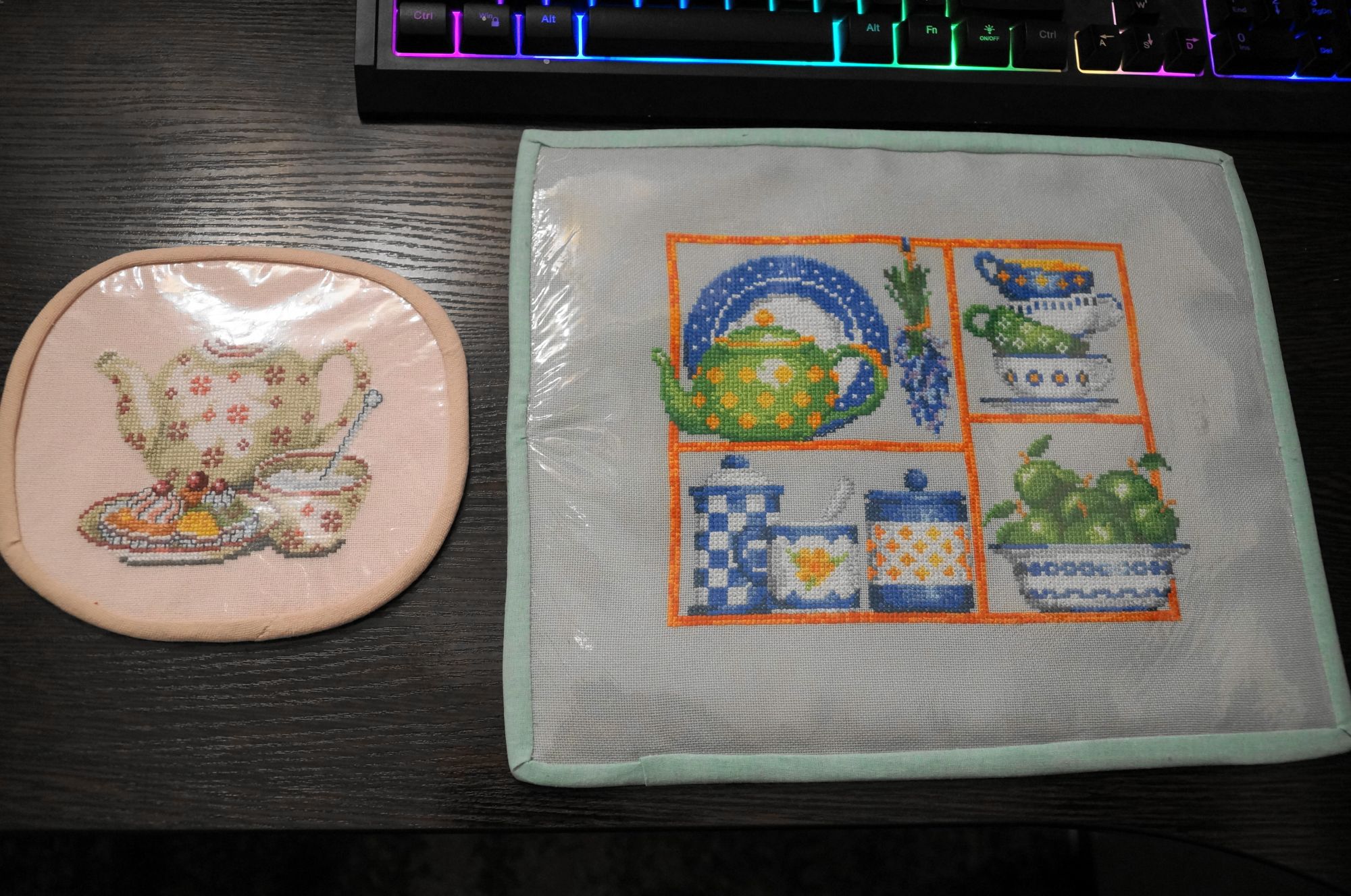 10 ноября 2024 Ланчмат я себе сварганила, а кружечка с кофе на нее не помещается... Подкладываю бумажную салфетку. И что-то ее вид меня начал раздражать. Пришлось сделать подставку под кружку. Для отшива взяла схему Lanarte 34476. Зря что ли у меня целая папка этих малявок скачана? 71*63 крестика,22 цвета, для основы взяла кусочек персикового Мурано. Ковырялась долго - отвыкла от Мурано, целых 8 дней. Сшила по принципу ланчмата, конечно, с косяками, да, ладно, не на продажу ведь. И вот что получилось. Правда цветопередача хромает. Первые фото засвечены. Только на последней цвета более менее похожи. Забава_, Краснодарка, belyasik и 14 других сказали спасибо Поделиться сообщением Ссылка на сообщение