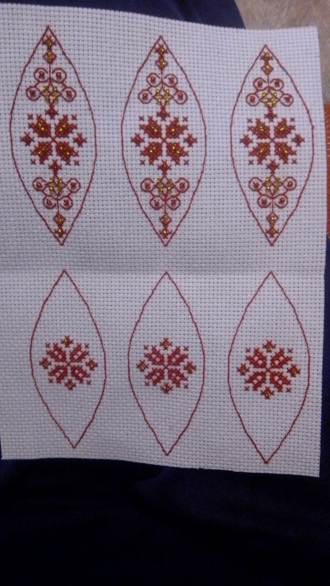 3 июня 2022 Следующей работой, которую я закончила вышивать, стал фонарик от Зенганы. Точнее, лепестки для него. Потом я подумала, посмотрела на остатки канвы, посчитала крестики... И вышила второй комплект лепестков, только рисунок сделала наоборот. На белых лепестках элемент с кучей бэка, а на красных - только центральный фрагмент. Собственно, в таком виде я их и оставила маме, поскольку подобного рода висюльку она давно хотела. Как вырезать, сшить и дооформить показала и объяснила. Дальше уже ее работа. Ксен40, 19199707770, Хозяйка смешных зверей и 1 другой сказали спасибо Поделиться сообщением Ссылка на сообщение