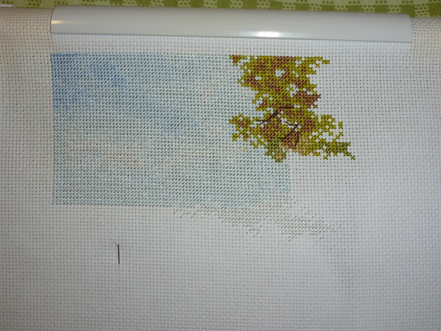 Наташа, пейзаж вышила довольно быстро. Молодец! По-летнему тепло стало.