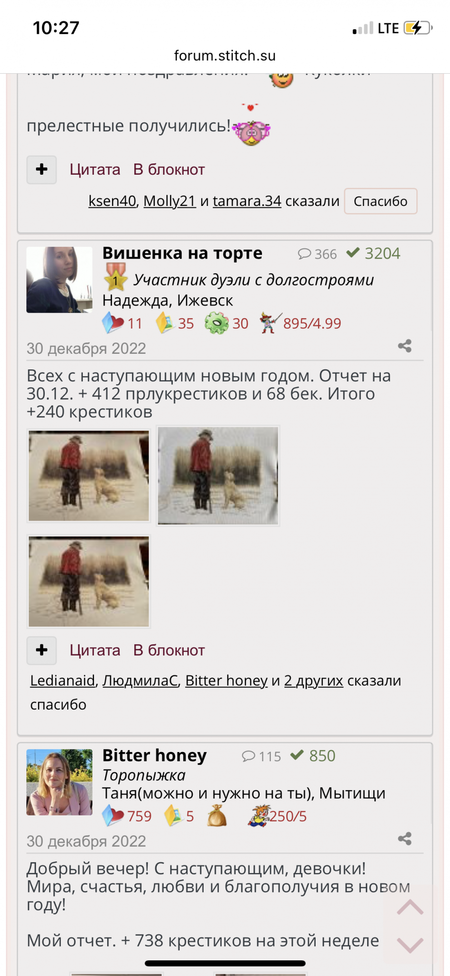 30 декабря 2022 Добрый вечер! С наступающим, девочки! Мира, счастья, любви и благополучия в новом году! Мой отчет. + 738 крестиков на этой неделе было стало Ксен40, Ledianaid, sheyla55 и 6 других сказали спасибо Поделиться сообщением Ссылка на сообщение