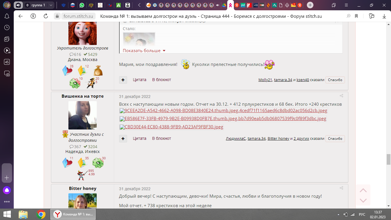 30 декабря 2022 Всех с наступающим новым годом. Отчет на 30.12. + 412 прлукрестиков и 68 бек. Итого +240 крестиков Ledianaid, Bitter honey, tamara.34 и 2 других сказали спасибо Поделиться сообщением Ссылка на сообщение