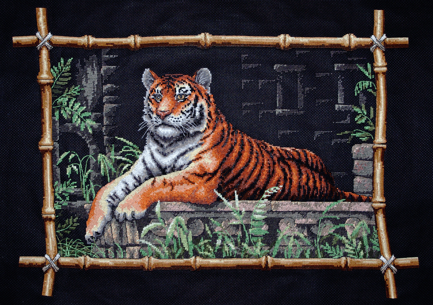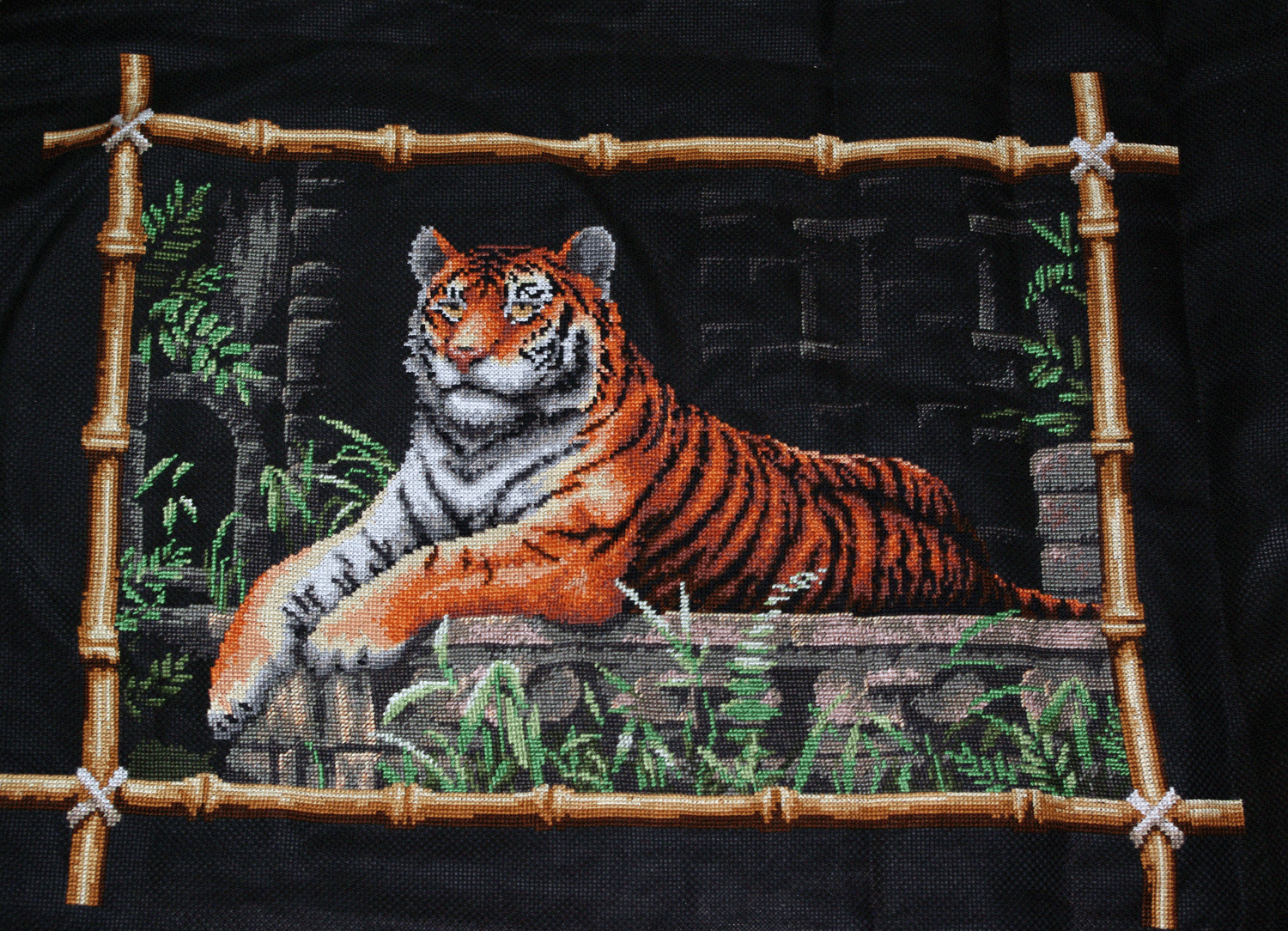 22 апреля 2011 Девочки, всем привет!!! я тоже отчитаюсь! было на сегодня мой ТИГР готов!!! Меня расстроило, что после стирки правый бамбук покосился, но я надеюсь, что в багетке натянут и будет все ровно Поделиться сообщением Ссылка на сообщение