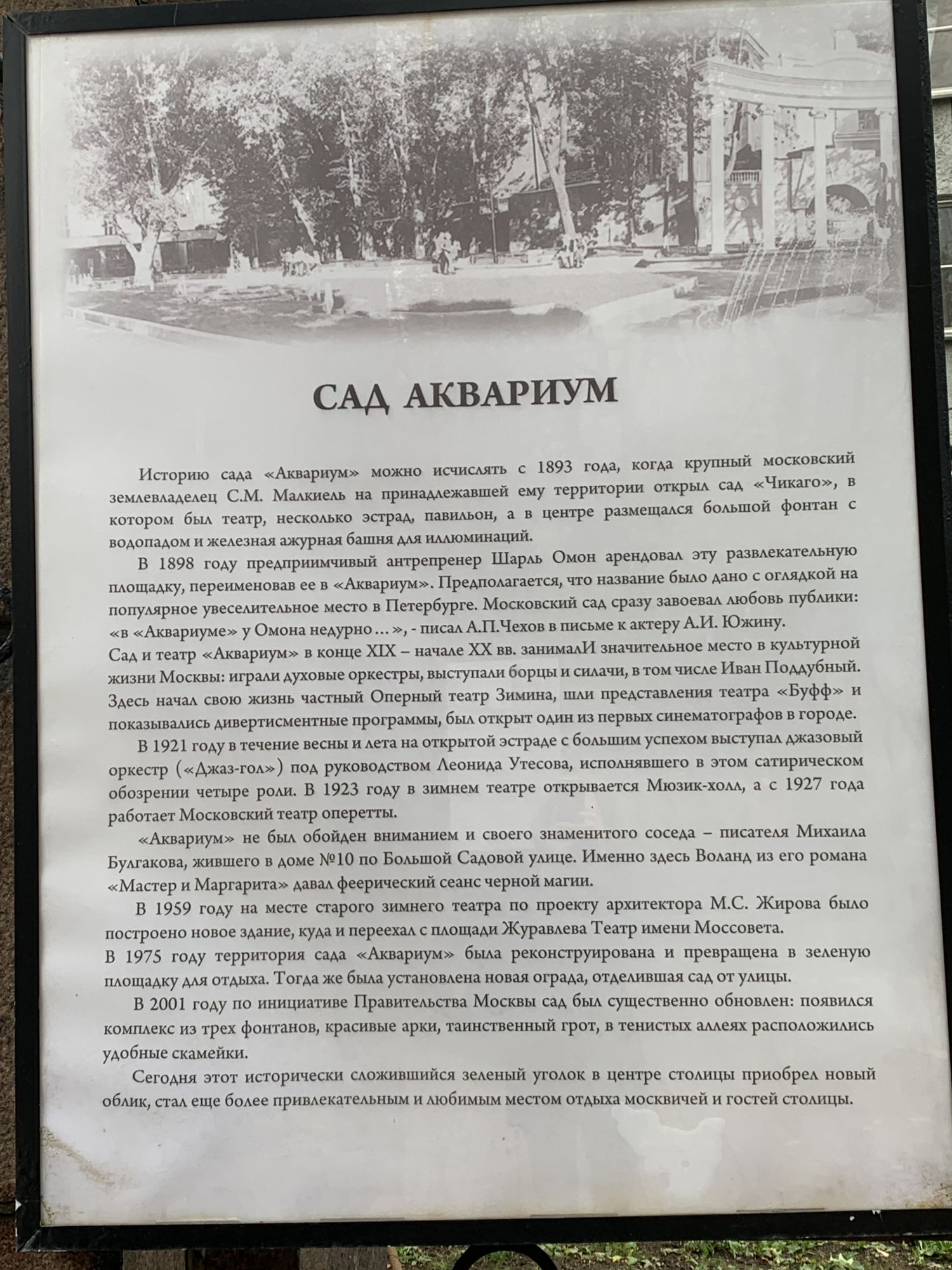 17 октября 2021 Здравствуйте, девочки! Была сегодня по весьма прозаическим хлопотам на Маяковке и, закончив дела, на обратном пути завернула в скверик у театра Моссовета, вернее, в сад «Аквариум», прогуляться. Садом называть его трудно, потому что садовых деревьев как таковых там нету (ну или я их не замечаю), да и площадь его такая небольшая, что как по мне, больше ему подходит название «скверик». Но люблю его преданно и сам по себе, и потому, что он связан с именем обожаемого мною М.А. Булгакова: Вот так сегодня выглядят в саду фонтаны и природа, которую я ощутила хоть и напряжённо-грустной, но от этого не менее прекрасной. Betta, mag, lenning и 10 других сказали спасибо Поделиться сообщением Ссылка на сообщение