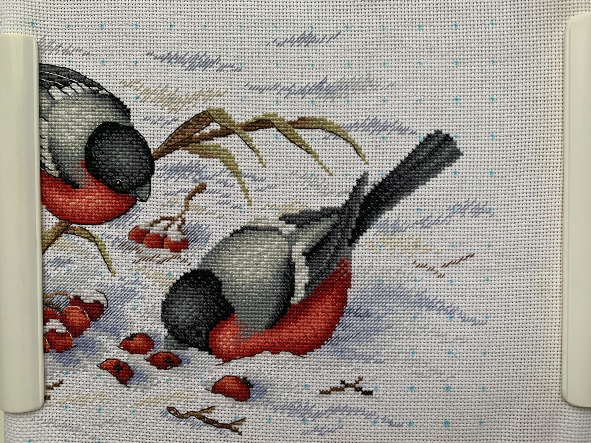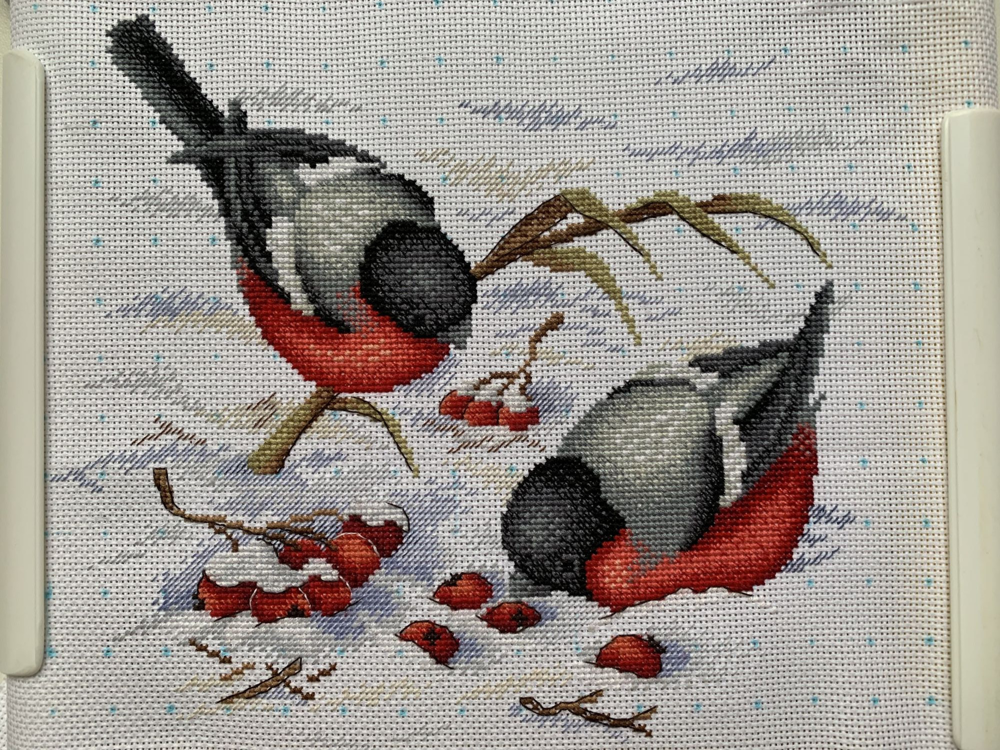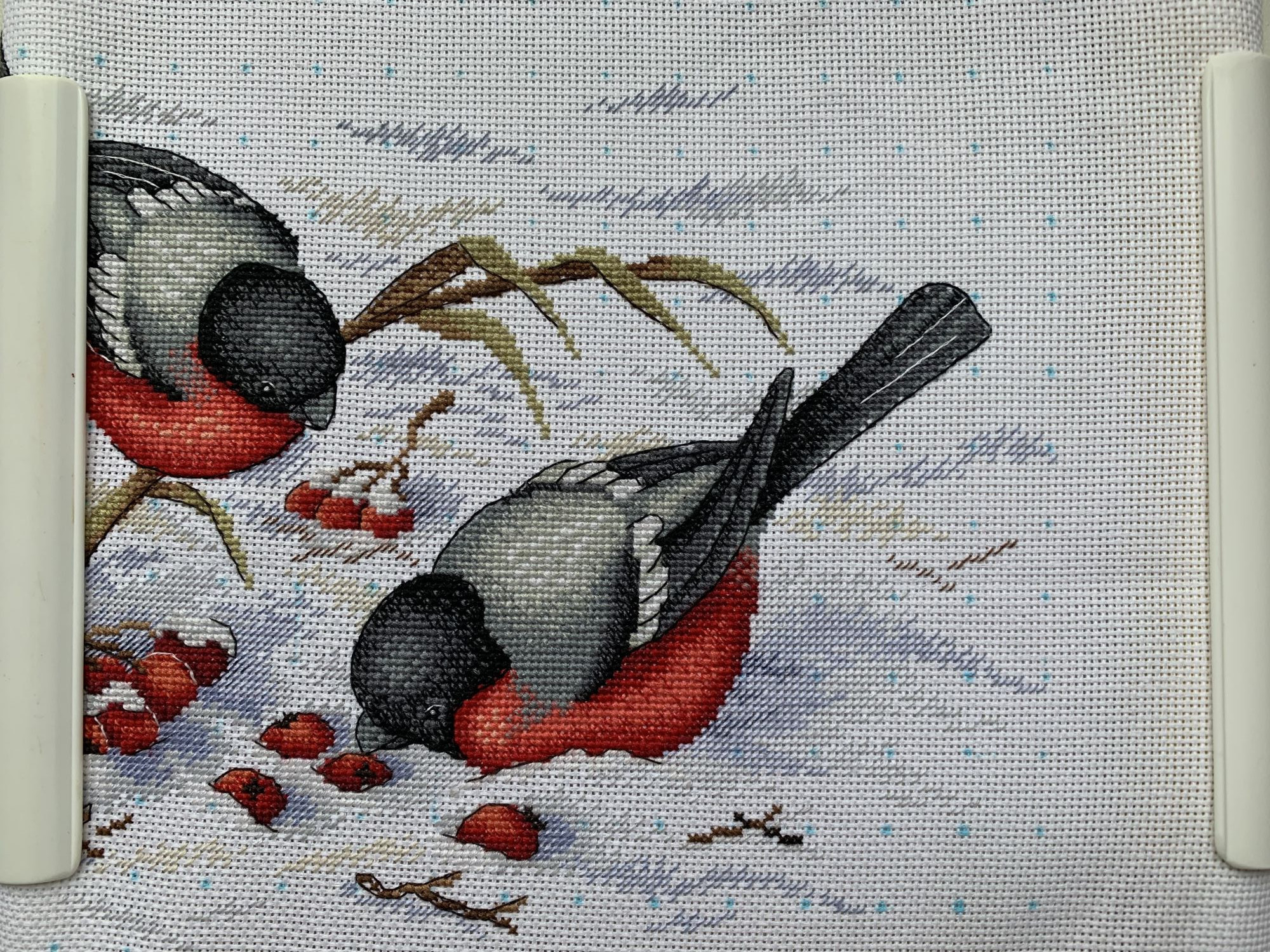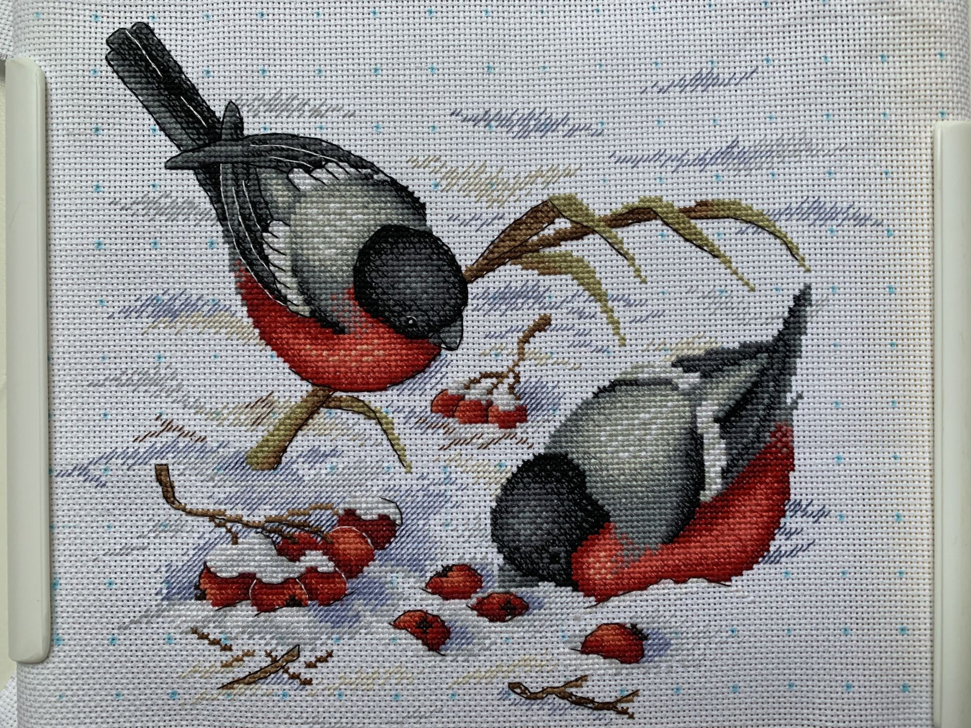 13 декабря 2021 Девочки, доброго вам понедельничного вечера! На нервной почве, а также под обаянием повсюду засверкавших символов приближающегося Нового Года, я словила нестерпимый зуд немедленного начатия чего-то новогоднего или просто зимнего. Ну, вы наверняка знаете, как это бывает: живешь себе как человек, фантазируешь свои вышивальные планы, выстраиваешь в очередь наборы, а потом - хлоп!!! - импульс. И фсё. Судорожно занырнув в кошелку запасов в поисках того самого фсё, я напала на подарок Мариночки-магистра, набор МП Студия со снегирями, занесенный мною некогда в список желаний. Он, может, и не про Новый Год, но сразу же отозвался в душе идеальным совпадением с импульсом: дорогие сердцу снегиречки - символы зимы, небольшой по размеру и трудозатратам, то есть обещающий скорый результат, одним словом, звезды сошлись. Скажу сразу, что в список желанных наборов этот попал совсем не потому, что я собиралась его вышивать. Просто отправив как-то в подарок Лене lenning ткань с новогодним принтом и столкнувшись с ее озадаченностью вопросом - а что на ней можно вышить, я сама стала об этом думать и накидывать на страничку списка желаний сюжеты, которые по моим представлениям подойдут для этой ткани по размеру, тематике, цвету и т.д. Так эти снегири и попали ко мне в хочушки. Типичная, между прочим, ситуация предложения судьбой своего решения насчет тех картинок, которые мы рисуем воображением про нашу жизнь. Ну а раз судьба, подумала я, то надо брать (с судьбой-то не спорят!). Вышивала я их торопливо, как изголодавшийся путник проглатывает наконец-то ставший доступным обед, и фото делала кое-как, не затрачиваясь даже на то, чтоб поместить в кадр любимые мною аксессуары. Но все же сделала, вот они. Итак, набор Ягоды и травинки без бэка , ягоды и травинки с бэком Левая птичка без бэка , левая птичка с бэком Правая птичка без бэка , правая птичка с бэком Завершенная работа после стирки И несколько парадных фото Tatiana2406, Betta, Хозяйка смешных зверей и 16 других сказали спасибо Поделиться сообщением Ссылка на сообщение