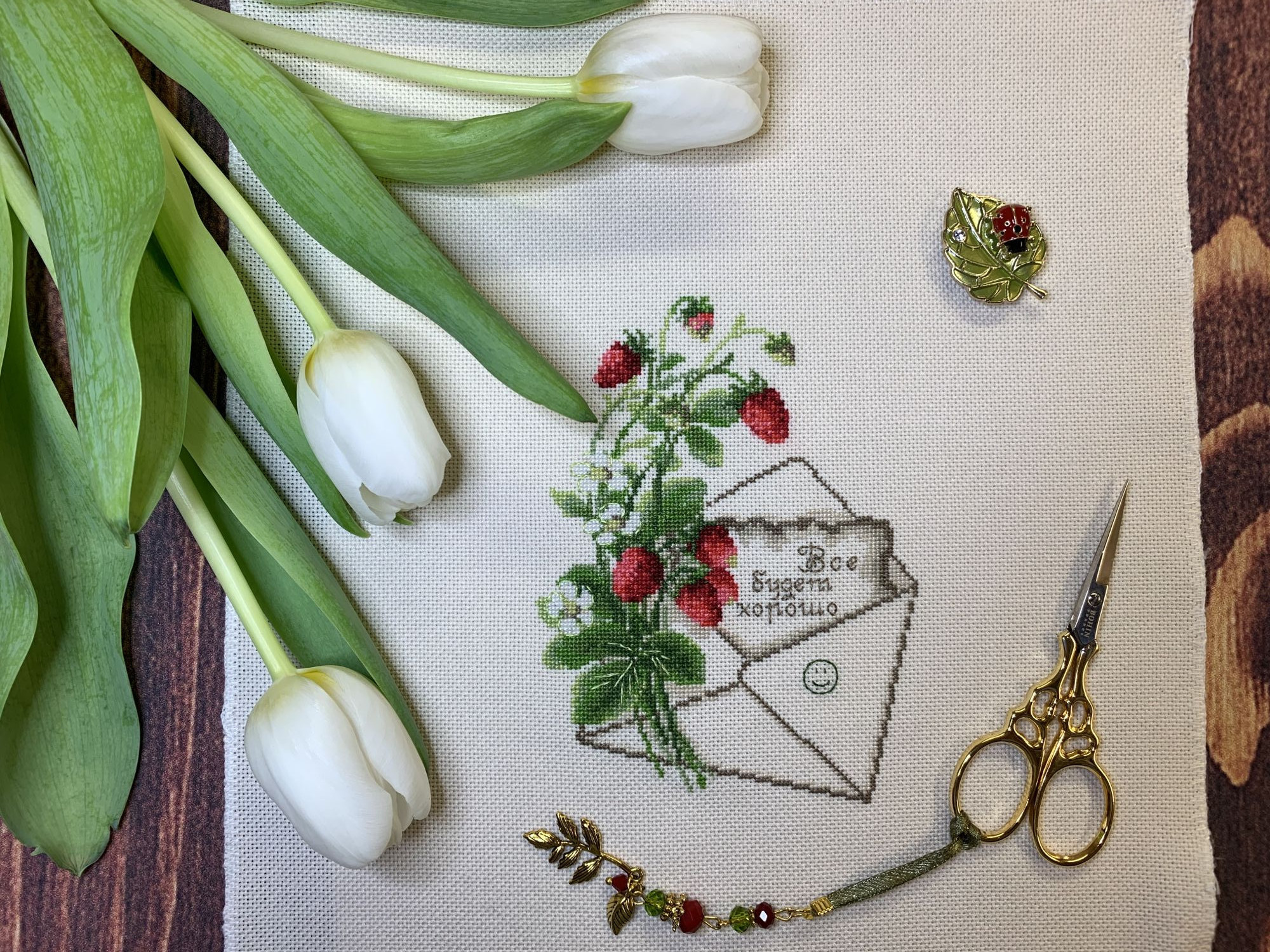 1 апреля 2022 07.03.2022 в 21:45, Fascinata сказал(а): Добрый вечер, девочки! Мне захотелось вышить вот эту малютку от Риолиса. Вместо слова "скучаю" я вышила то другое, что просила душа. Соответственно, цвет букв заменила на более нейтральный, чем предусмотренный схемой зеленый. Для зеленого слишком много текста, подумалось мне: может смотреться похожим на кляксу. Ну и смайлик я заменила тоже, на улыбающийся, и оставила его зелененьким, как в ключе. Сделала фото с нежными белыми тюльпанами, подаренными мне подругой. Теперь всегда буду помнить, что вышивка закончена за день до праздника 8 марта. (Прошу завести гаечку и позеленить ее) Девочки, всем мира и добра! Олечка, ну какой же прелестный, добрый сюжет ты себе и нам подарила, а какие элегантные фото, как всё продумано, до изящных мелочей, ну просто глаз не отвести! Спасибо за добрые слова! Tatiana2406, svetlana62, Lorans и 3 других сказали спасибо Поделиться сообщением Ссылка на сообщение