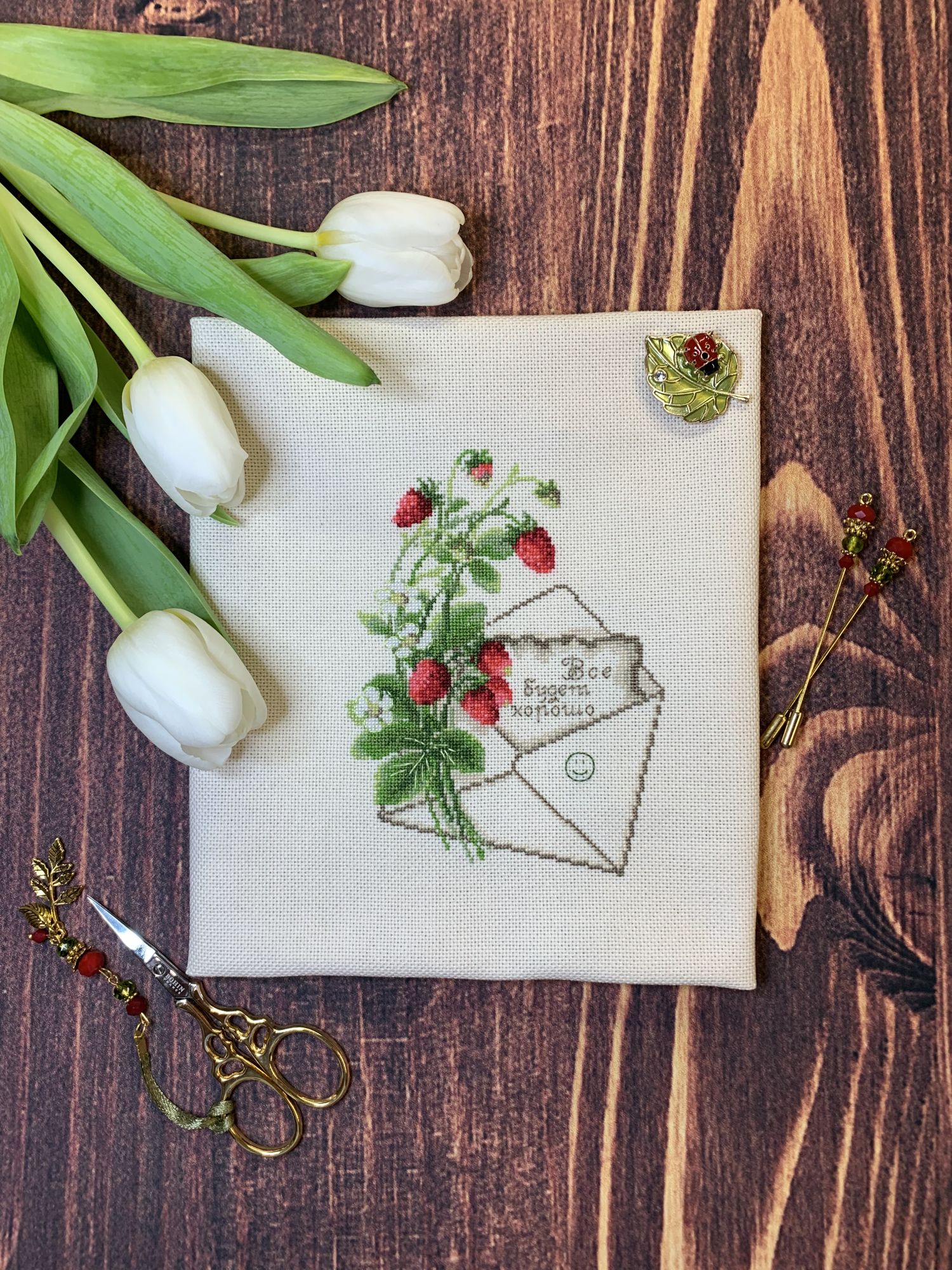 8 марта 2022 6 часов назад, Fascinata сказал(а): Добрый вечер, девочки! Мне захотелось вышить вот эту малютку от Риолиса. Вместо слова "скучаю" я вышила то другое, что просила душа. Соответственно, цвет букв заменила на более нейтральный, чем предусмотренный схемой зеленый. Для зеленого слишком много текста, подумалось мне: может смотреться похожим на кляксу. Ну и смайлик я заменила тоже, на улыбающийся, и оставила его зелененьким, как в ключе. Сделала фото с нежными белыми тюльпанами, подаренными мне подругой. Теперь всегда буду помнить, что вышивка закончена за день до праздника 8 марта. (Прошу завести гаечку и позеленить ее) Девочки, всем мира и добра! Оля,малютка симпатичная получилась и слова с хорошим посылом....интересно посмотреть в оформлении... махно, mag, Lorans и 1 другой сказали спасибо Поделиться сообщением Ссылка на сообщение