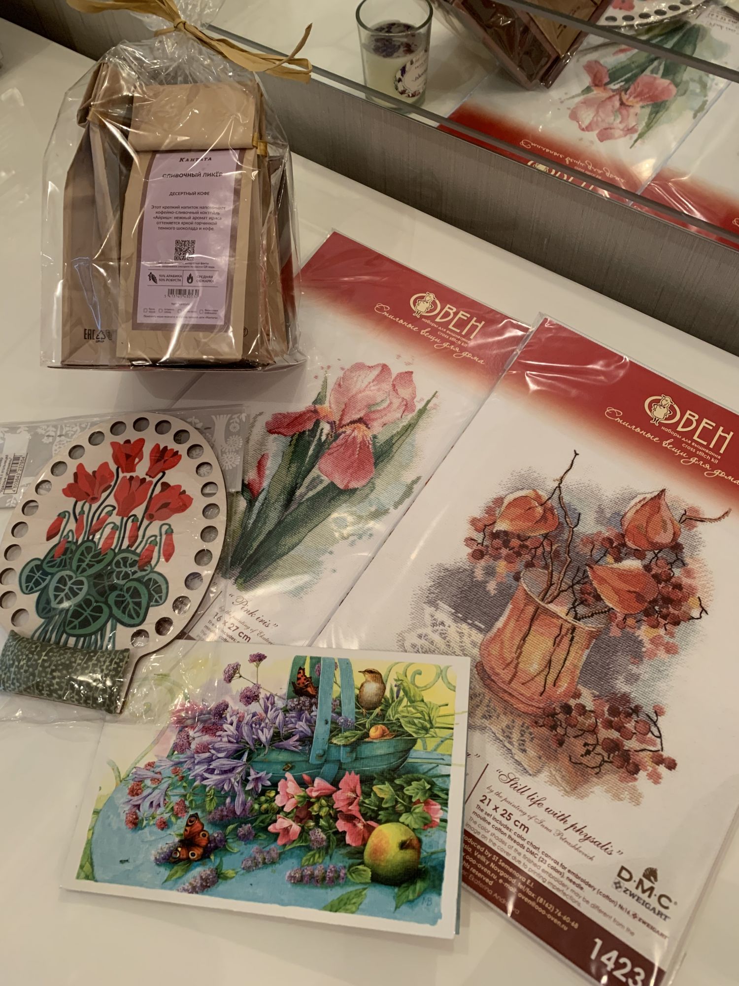18 сентября 2022 Девочки, всем доброго воскресного дня! Каким-то нескладным я ощутила в этом году начало своего новолетия. В первые выходные после его наступления была в дороге и распаковывалась по приезду, следующие выходные отмечала два дня подряд день рождения двумя разными составами, в эти выходные учусь в институте. Суетливо это, без осмысления и того вкуса, которым так хочется насладиться: помните, как у Бредбери, - «цедить медленно, как грушевый ликёр»… Но к счастью, есть и в моем суетном мире то постоянное, с чем при встрече останавливаешься, прислушиваешься ко вдруг возникшей в душе тишине и замечаешь, что мир вокруг тебя - прекрасен. Вот и вчера я встретилась с одним из таких постоянств: подарками от вас, девчонки, ко дню рождения. Танечка смотрите что подарила: . Здесь овновский осенний натюрморт, который прям в сердце толкнул, такой уютный . Я решила, что начну его прям в сезон, следующей осенью, этой-то осенью я себя, однопроцессницу, уже загрузила. А вот насчёт ириса, тоже бесспорно чУдного, вот что хочу вас спросить, девочки. Ещё два года назад Галечка наша подарила мне тоже ирисы, от Оланты. И вот как тогда мне пришла мысль, так до сих пор и осталась: хочу вышить эти ирисы на полотенце вертикально, по длинной левой или правой стороне. Танин ирис увидела - и опять: хочу и этот ирис на полотенце. Ну полотенце такое, которое для украшения кухни, не для пользования, конечно. Только я за это время ни разу не увидела полотенец, чтоб на них свою идею воплотить. Может быть, вы где-то видели что-то на эту тему? Сигнализируйте мне, пожалуйста, если встретитесь с чем-то подходящим для этой моей идеи. А возвращаясь к подарку, предвкушаю ароматы кофе, чая, сладостей ручной работы , мурлычу от радости обладания красивостью, которых много не бывает , и перечитываю открытку, в которой Таня написала так много бесценных добрых слов. Танечка, благодарю тебя, моя дорогая. А ещё прямо в день рождения Мариночка mag меня поздравила… сертификатом на покупку того, что сама пожелаю, в магазине у нашей Александры! И я все дни мучаюсь муками выбора: что же мне такое самое-самое-пресамое выбрать? Но, видимо, муки мне пришлись по вкусу, потому что я до сего дня продолжаю их длить. Мариночка, благодарю тебя от всей души! Знаю, что меня ожидает еще подарочек, но встреча наша из-за суетности моей жизни пока отложена… Девочки, я вас благодарю, тысячу раз обнимаю и очень люблю. mag, Lorans, Tata44 и 11 других сказали спасибо Поделиться сообщением Ссылка на сообщение