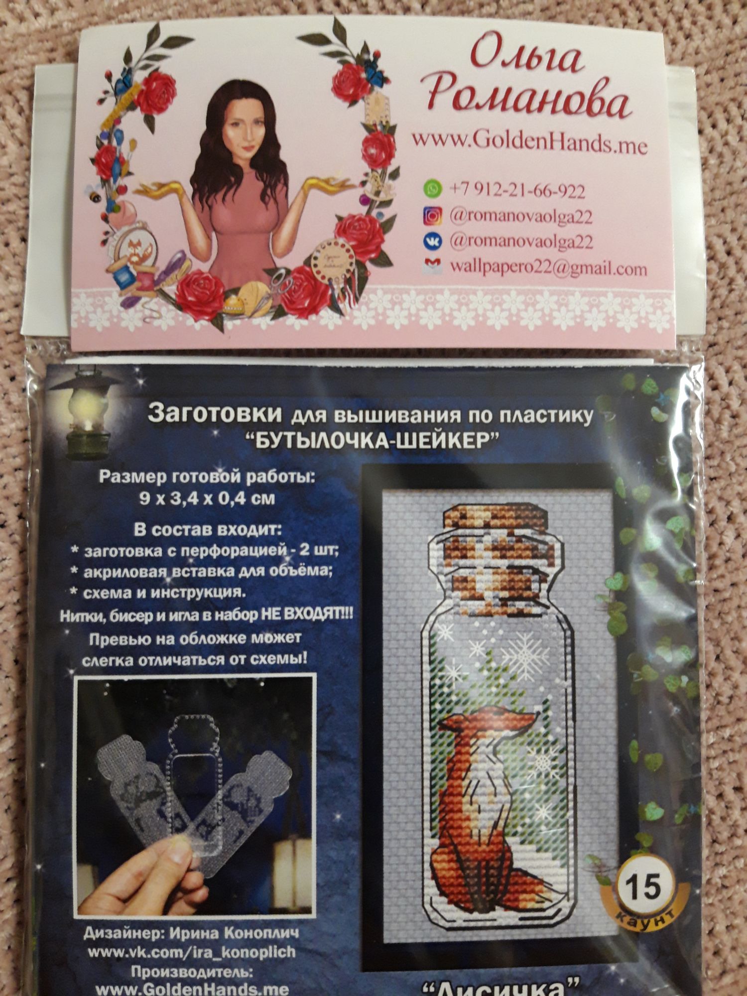 24 сентября 2021 1 час назад, Gala83 сказал(а): А это что за фирма? Что- то не узнаю Александра, на первом фото название - GoldenHands. Дизайнер Ирина Коноплич. Хотя на визитке написано Ольга Романова... Путешественница, Юла, lamina-65 и 13 других сказали спасибо Поделиться сообщением Ссылка на сообщение