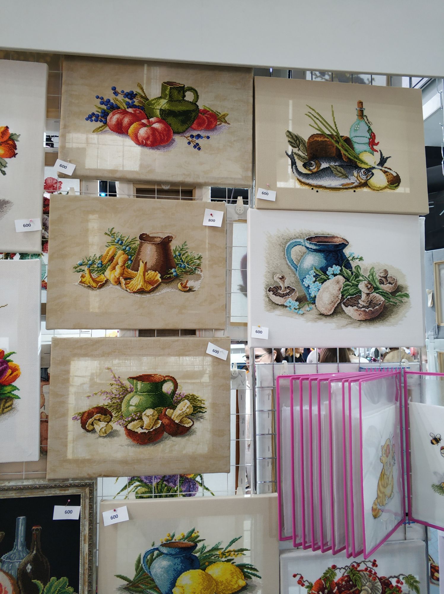 25 сентября 2021 У меня совсем немного фото, только то, что действительно понравилось. Сначала информация по поводу QR кода. Я пришла на выставку около 17-00. Код НЕ ПРОВЕРЯЛИ!!! Я даже спросила, почему у меня его не спрашивают, но девушки проверяющие билеты просто пожали плечами, мол, а зачем? Типа, если хотите, можете вот там предъявить, и махнули рукой куда-то неопределенно. РТО Кто будет заказывать в инет-магазине наборы из серии "Бабушкин дом", имейте в виду, что размер всех дизайнов разный. Вот, на фото видно. С собой рулетку не ношу, померила картинки рукой, разница по высоте где-то 2 см. У меня нет фото, где вместе 9 дизайнов. Из того, что девочки показывали, верхний ряд - дизайны поменьше, средний ряд - покрупнее, нижние не помню уже. Марья Искусница: Очень понравился такой дизайн Анны Петуновой: Багетная мастерская из Липецка БагетCLUB продает готовые шкатулки с возможностью вставить вышивку. Шкатулки разного размера. Размер окна от 10*10 и больше. Самая маленькая стоит, кажется, 2500. И еще какая-то мастерская под названием Саша Милота предлагает разного вида коробки, в которые тоже можно вставить вышивку, если постараться. Ничего не смогла узнать поточнее, т.к. на стенде никого не было. Трофеи: РТО щедро раздает подарки. Слева приобретенные наборы, справа подарки: буклет и какая-то фитюлька. При покупке можно использовать 10% скидку, которую можно скопировать в инстаграме РТО. В целом, у меня впечатление вполне приличное. "Не Сокольники", конечно. Но по нашим поганым временам очень даже неплохо. Yulik, Tatiana Ch., Elena-Lena и 59 других сказали спасибо Поделиться сообщением Ссылка на сообщение