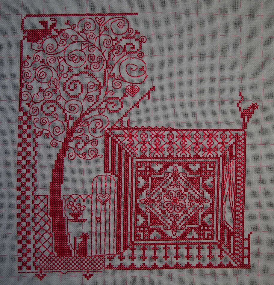 Достаточно известный оберег домашнего очага, но в моей интерпретации 0 ткань равномерного переплетения Мурано молочного цвета (производство Zweigart), нитки - DMC сатин S321 (и какой черт меня дернул вышивать ТАКОЙ объем сатином??? Ложится тяжело, весь скользит и перекручивается, аккуратно уложить бэкстич очень, нет, ОЧЕНЬ сложно). В общем, дурная голова не только ногам, но и всему организму покоя не дает ;)