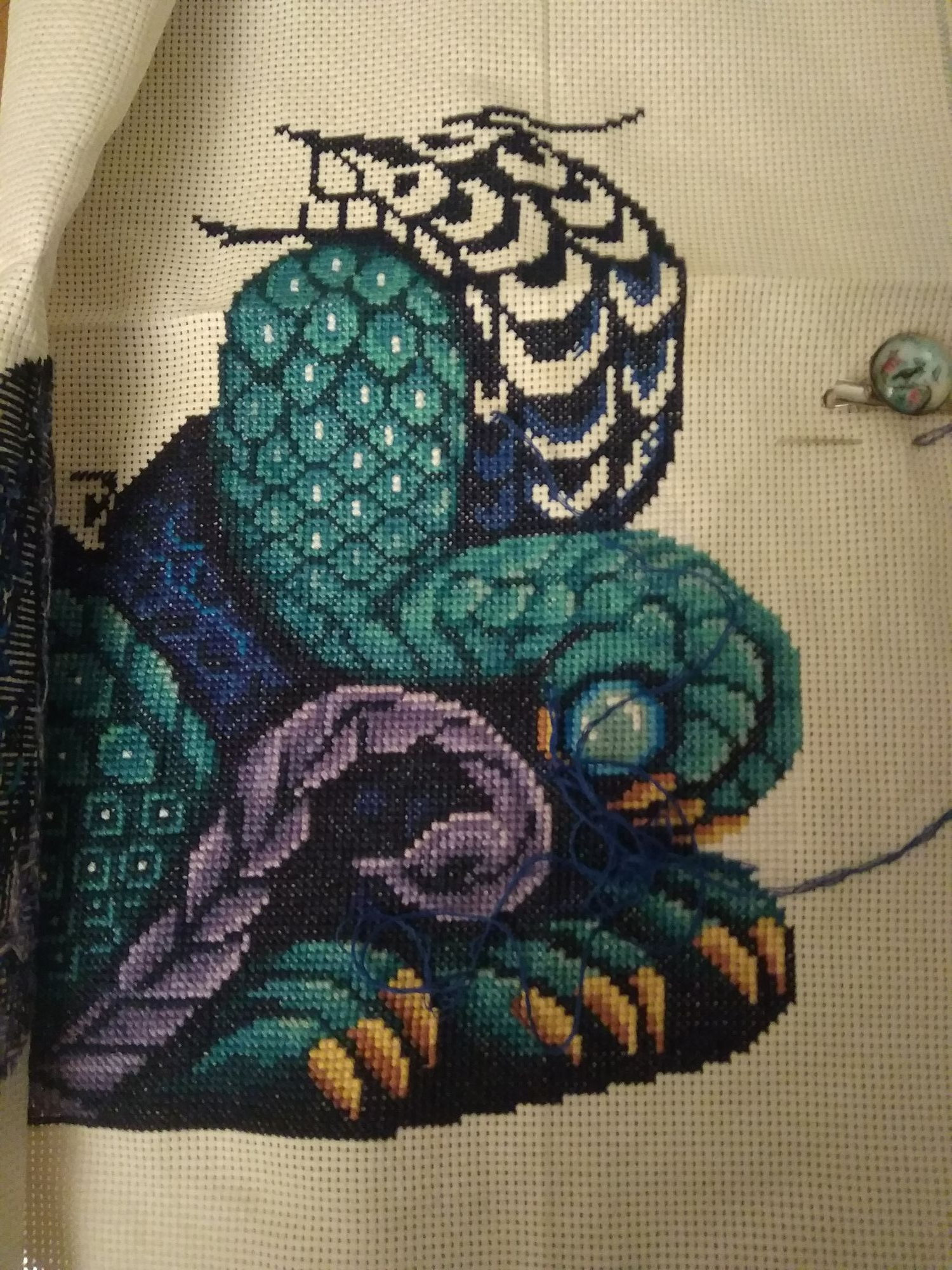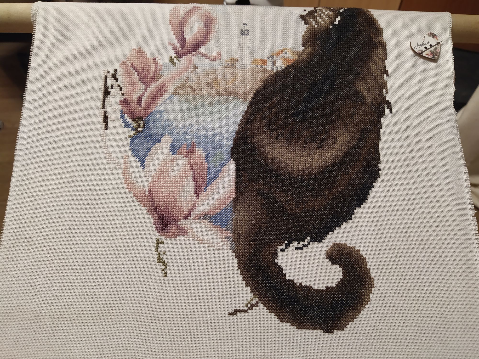 21 марта 2023 Здравствуйте, милые девочки! По привычке отчитаюсь раньше, на пятницу, 24 марта. То, что вышилось в выходные. Немного, но я активничаю в других областях и вышивку с собой не беру. А ещё хочется параллельно подтянуть что-то в других процессах. Что я и делаю по чуть-чуть. Итак, вышит 471 стежок бэкститча, это 235 крестиков. Было: 14.03.2023 в 10:52, Leutnant Ripley сказал(а): Стало: Да, сейчас занимаюсь исключительно бэком. План таков: вышиваю всё-всё в этой плоскости, чтобы потом провернуть раму и открыть поле для деятельности, вышить всё остальное в верхней части, уже до победного)) Natalie, call_me_daria, Лана05 и 17 других сказали спасибо Поделиться сообщением Ссылка на сообщение